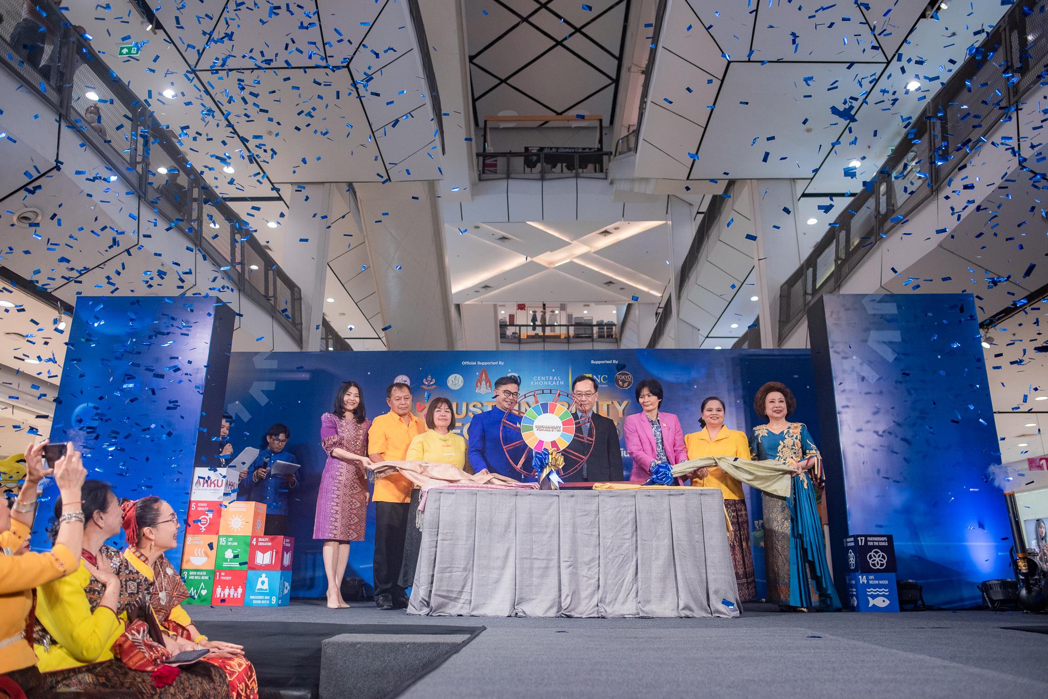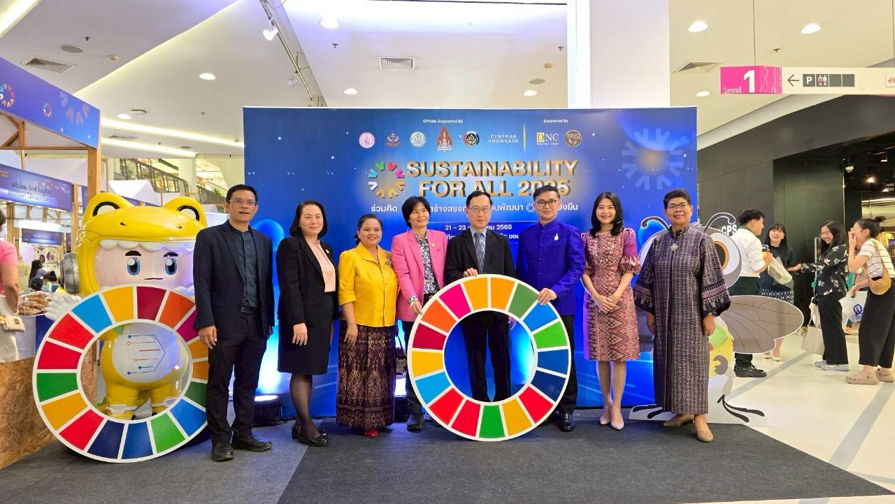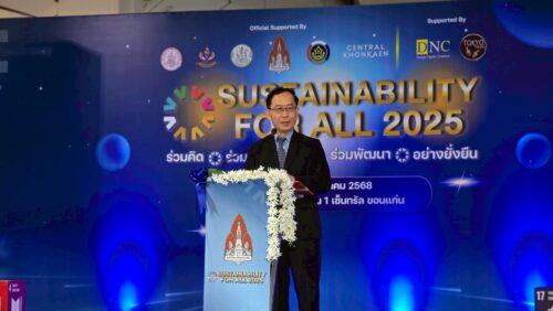On Tuesday, 22 July 2025, Khon Kaen University, in collaboration with the Khon Kaen Province Agriculture Extension Office, the Provincial Community Development Office of Khon Kaen, the Khon Kaen Provincial Office of Social Development and Human Security, the Khon Kaen Thai Fabric Promotion Association, and other government and private sector partners, hosted the opening ceremony of “Sustainability for All 2025: Co-create, Co-develop for a Sustainable Future” at the Activity Court, 1st Floor, Central Khon Kaen. The event was presided over by Assoc. Prof. Charnchai Panthongviriyakul, M.D., President of Khon Kaen University, who was joined by university executives, faculty members, network partners, and members of the public.