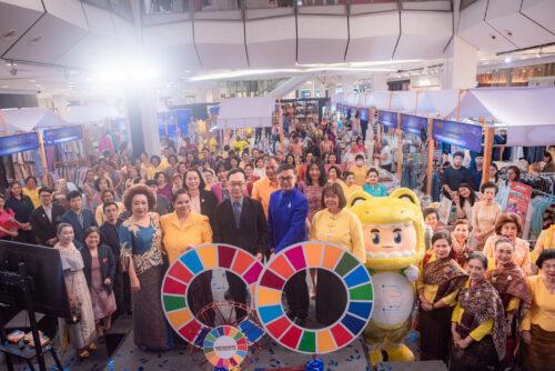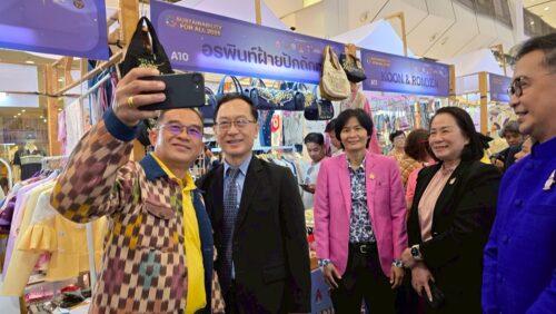 The opening ceremony featured a symbolic activity in which the President, together with Prof. Thidarut Boonmars, D.V.M., Ph.D., Vice President for Enterprise and Societal Sustainability, Asst. Prof. Suksanti Waengwan, Ph.D., Assistant to the President for Arts, Culture, and Creative Economy, and partner organizations turned a traditional spinning wheel. This act reflected the local weaving culture and symbolized collective efforts to achieve the Sustainable Development Goals (SDGs) that formed the guiding principles for the event. These include No Poverty (SDG 1), Decent Work and Economic Growth (SDG 8), Reduced Inequalities (SDG 10), Responsible Consumption and Production (SDG 12), and Partnerships for the Goals (SDG 17).