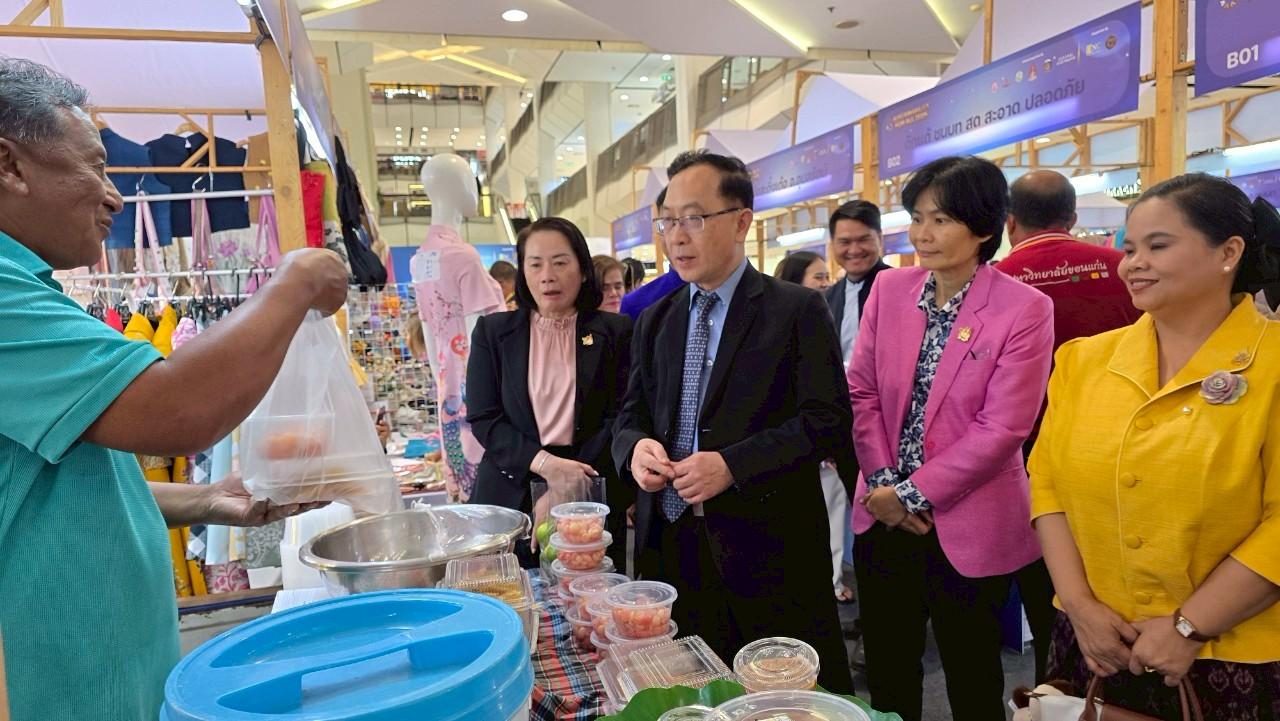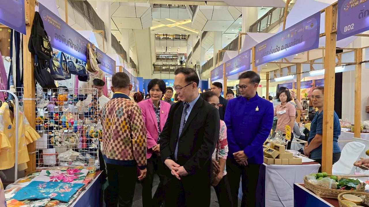 The atmosphere of the event was lively and engaging, drawing many visitors who came to support products from community enterprises, small-scale entrepreneurs, and special groups including persons with disabilities and the elderly. More than 40 vendors offered goods such as silk and textiles, five-star OTOP products, and handmade souvenirs. The event also featured the “Edible Insects: Food of the Future” exhibition, hands-on workshops, academic talks, cultural performances, mini-concerts, Thai fabric fashion shows, culinary competitions using insect-based ingredients, and creative contests such as the Cricket Queen Pageant and youth band competitions. Interactive zones allowed visitors to taste and try products, participate in prize-winning games, and take advantage of special discounts, creating an atmosphere that combined learning with entertainment.