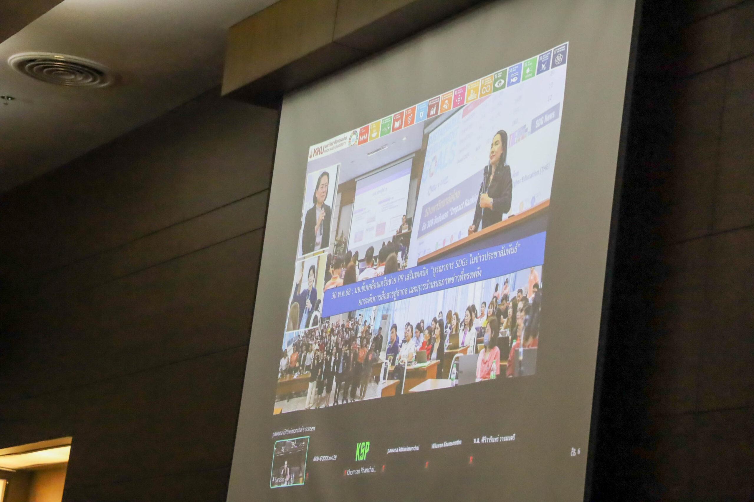 Dr. Pawana Kittiwimonchai, Acting Director of the Division of Educational Quality Development at KKU, delivered an in-depth lecture on strategies to integrate SDGs into university operations, covering every level from institutional management to individual staff contributions. The session included a detailed walkthrough of the 17 SDGs, key issues to prioritize, project selection processes, conducting OKRs (Objectives and Key Results) meetings, and formulating strategic plans to achieve targeted SDG goals. She also highlighted systematic data collection, as well as backend tracking and analysis for effective monitoring and reporting.