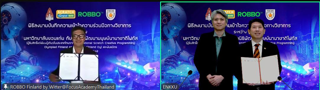 “Thailand has a highly capable workforce. By integrating globally recognized curricula from Finland and Estonia—programs exclusively licensed in Thailand by the Foundation, including those from the International Scratch Creative Programming Olympiad Finland and ROBBO Finland Oy—we aim to enhance the skills of Thai youth, enabling them to obtain internationally accredited certifications, improve career prospects, and gain access to the global job market. Combining the academic strengths of Khon Kaen University with the Foundation’s extensive experience in youth development, we believe this MOU marks a significant step toward empowering Thai youth in robotics and AI, ensuring a strong and sustainable future in the AI-driven era.”