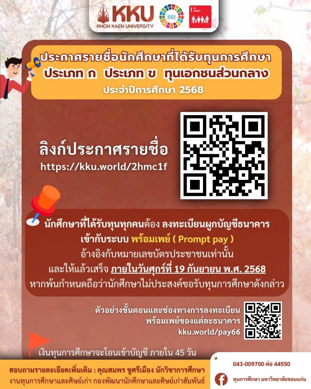 Khon Kaen University has officially released the list of students awarded scholarships for the first semester of the 2025 academic year. Recipients are required to complete necessary financial arrangements by a strict deadline to secure their funding.