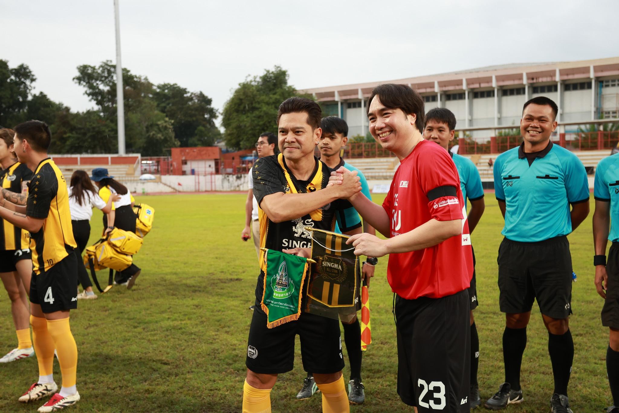 The charity football event began at 15:00 hrs, starting with the Singha Youth Football Clinic, followed by the opening ceremony which included a tribute to Her Majesty Queen Sirikit The Queen Mother. The programme featured a three-quarter charity football match, a mini-concert by SINGHA ALL STAR celebrities, an auction of signed memorabilia, and concluded with a musical performance titled “With Love and Remembrance, Paying Tribute to Her Majesty The Queen Mother” by students and the band No One Else.