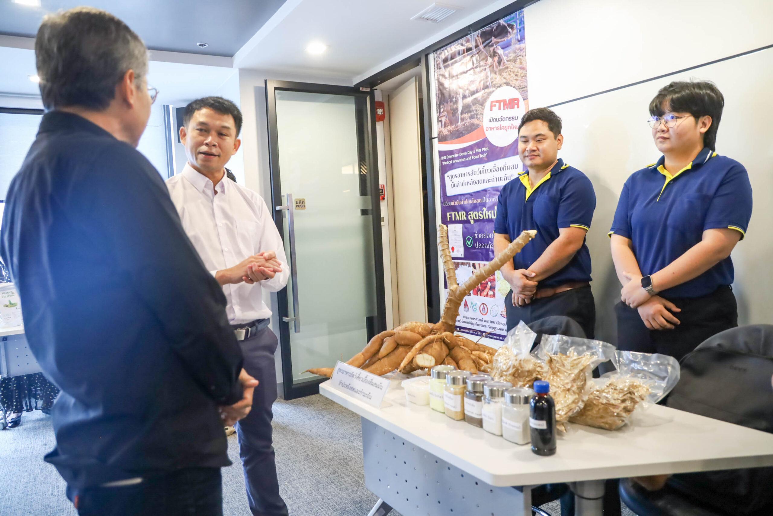Khon Kaen University (KKU), represented by the KKU Enterprise Centre, Office of the President, partnered with Mitr Phol Research and Development Co., Ltd., to host the “KKU Enterprise Demo Day x Mitr Phol: Medical Innovation and Food Tech” on Monday, 17 November 2068. The event was held at the Mitr Phol Innovation and Research Centre (Khon Kaen Centre) on the 9th floor of the Khon Kaen Innovation Centre (KIC). This platform showcased KKU’s high-potential research and innovations to entrepreneurs and investors, aiming to concretely translate laboratory knowledge into commercial utilisation.