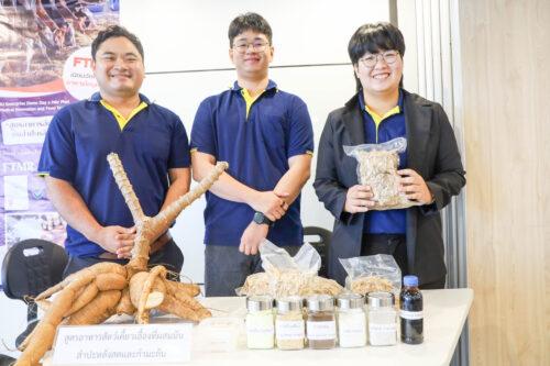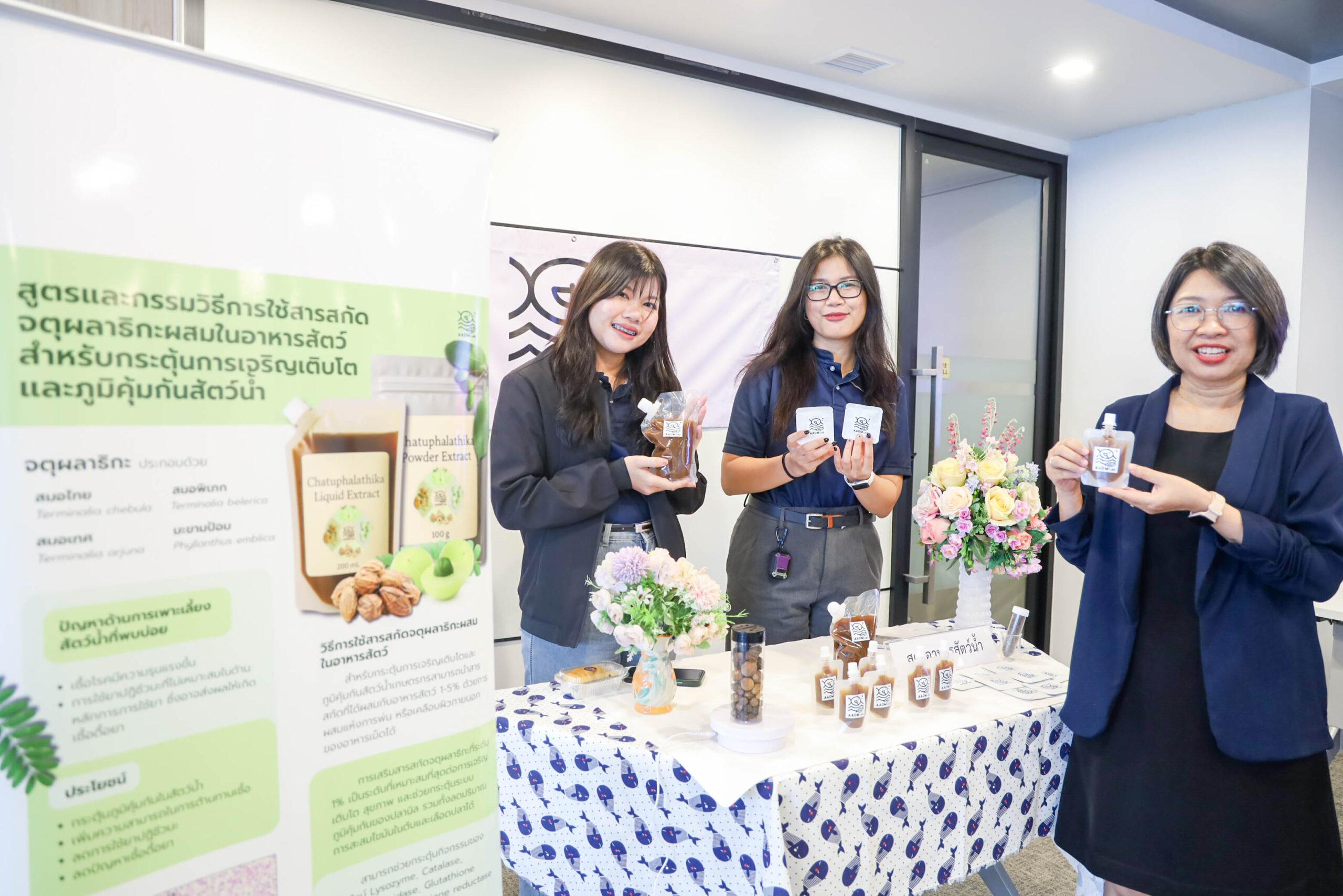 Furthermore, several ready-to-eat products and healthy foods were presented: ready-to-eat rice fortified with hydrogenated protein from rice bran; forbidden rice milk pudding/roselle jelly formula; ready-to-eat thick purée soup for the elderly and people with difficulty swallowing; milk tablets incorporating A2 Beta-Casein milk; ruminant feed formula mixed with fresh cassava and sulphur; and aquafeed formula. These innovations address needs across the medical, nutritional, and modern agricultural sectors, accompanied by close-knit demonstrations and exchange of opinions between researchers and investors.