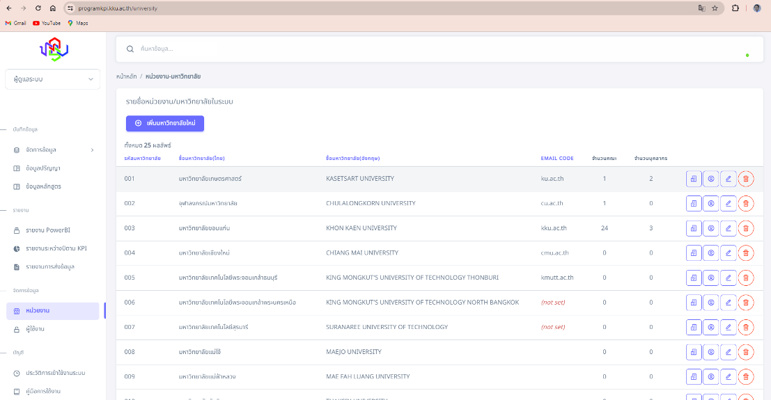 The system has been designed to promote excellence at the graduate program level by supporting the assessment of Program Marketing and Admission Performance, as well as performance evaluation based on AUN-QA criteria across 25 public and autonomous universities. The handover of this tool highlights Khon Kaen University’s capability in developing advanced educational technology systems and its active contribution to strengthening the quality of higher education in Thailand.