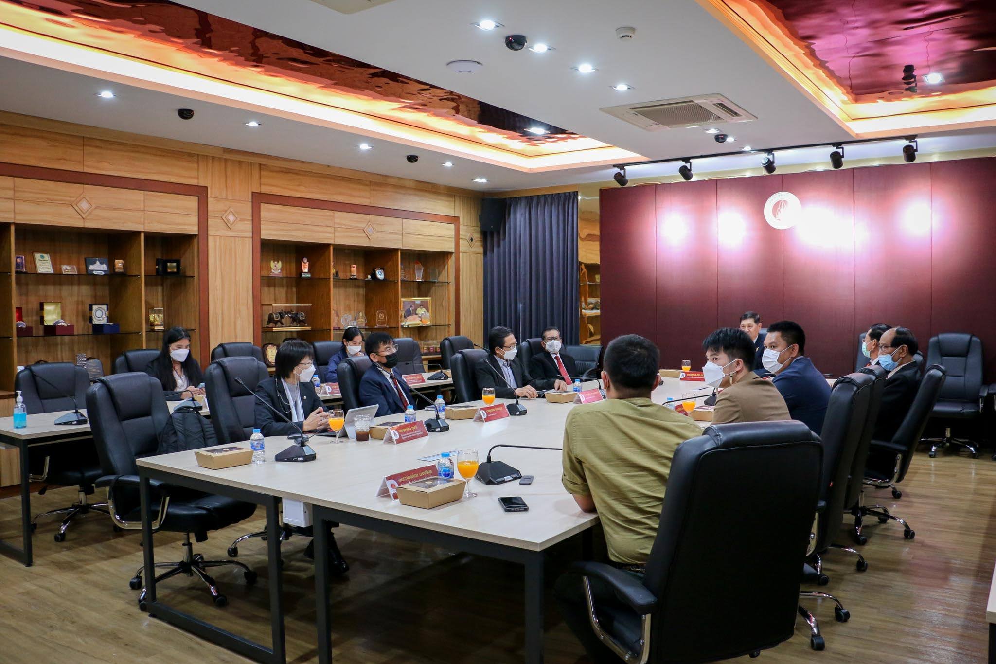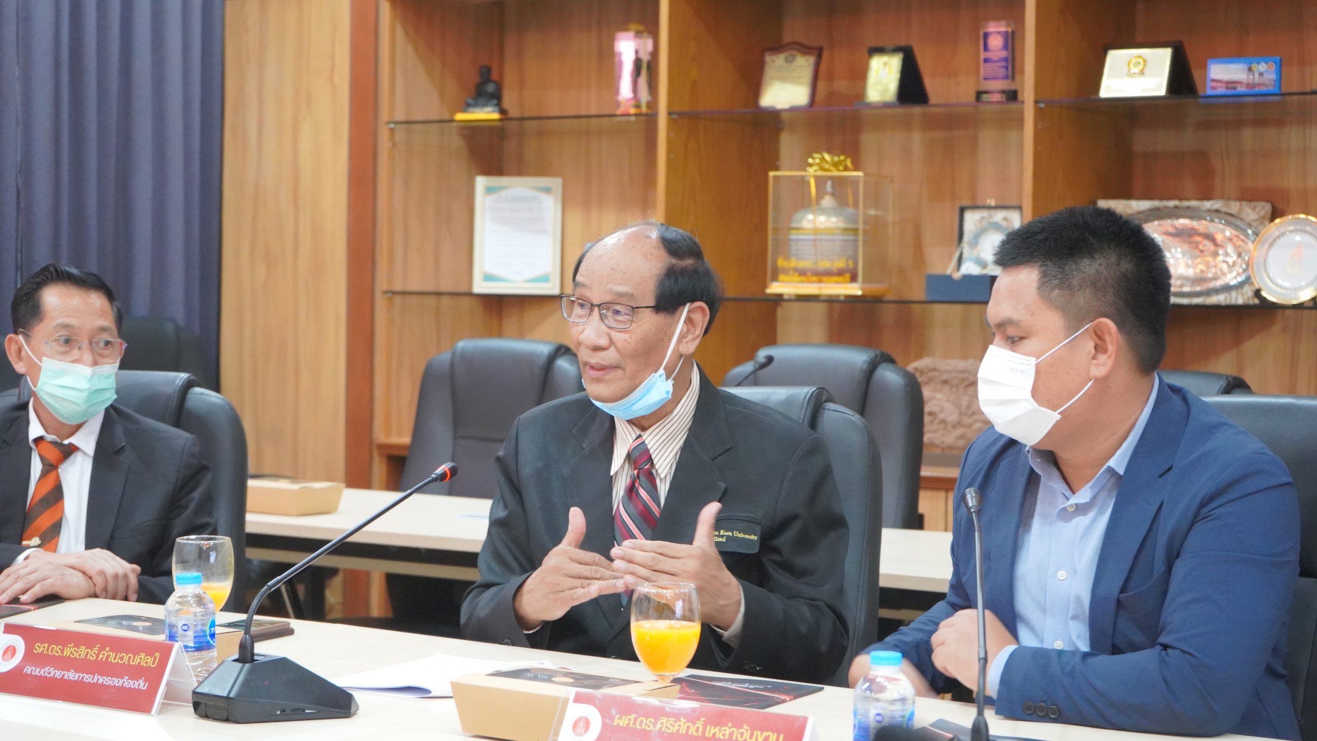 จากนั้นเวลา 15.00 น. ณ ห้องประชุมสุณีรัตน์ เอี่ยมละมัย ชั้น 2 อาคารเชิดชัย รัตนเศรษฐากุล คณะสัตวแพทยศาสตร์ คณะกรรมการส่งเสริมกิจการมหาวิทยาลัยขอนแก่น พบปะเยี่ยมชม คณะสัตวแพทยศาสตร์ โดยมี รศ.น.สพ.ดร.บัณฑิตย์ เต็งเจริญสกุล คณบดีคณะสัตวแพทยศาสตร์ พร้อมด้วยผู้บริหารคณะ และบุคลากร ให้การต้อนรับ การหารือร่วมกันมีประเด็นที่น่าสนใจหลายเรื่อง อาทิ 5 โครงการหลักที่คณะฯ จะดำเนินการในวาระครบรอบ 60 ปี มหาวิทยาลัยขอนแก่น ได้แก่ 5 หลักสูตร Non-Degree เพื่อชุมชน 5 ผลิตภัณฑ์สมุนไพรสุขภาพสัตว์เพื่อชุมชน 5 แอพพลิเคชัน VM เพื่อชุมชนสังคม บริการสุขภาพสัตว์ 5 ชุมชน และ มข.ต้นแบบปลอดโรคพิษสุนัขบ้า จากนั้นได้เดินทางเยี่ยมชมโรงพยาบาลสัตว์