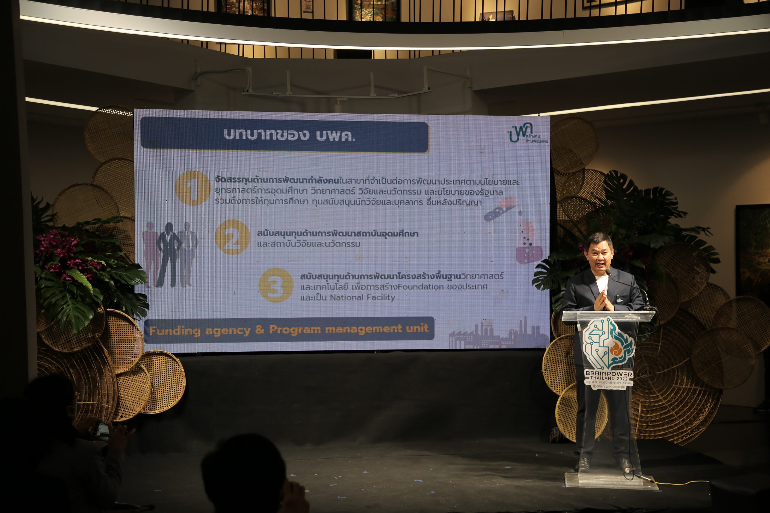 โครงการ “Brainpower Thailand 2022” โดยมีวัตถุประสงค์เพื่อนำเสนอผลงานที่โดดเด่นของ บพค. ในช่วงปี พ.ศ. 2563-2565 เชื่อมไปสู่แนวทางการบริหารจัดการทุนจากแผนด้านวิทยาศาสตร์ วิจัย และนวัตกรรม พ.ศ. 2566-2570 อีกทั้งยังเป็นการจัดกิจกรรมเพื่อสร้างและเชื่อมความสัมพันธ์ของเครือข่ายการพัฒนากำลังคนระบบนิเวศวิทยาศาสตร์ วิจัยและนวัตกรรมของประเทศไทย  การนำเสนอผลงานและการจัดกิจกรรมเป็นแบบผสมผสานกับอัตลักษณ์ความเป็นอีสาน ด้วยสื่อสร้างสรรค์ อาทิ เช่นในด้านภาพยนตร์ ดนตรี ศิลปะการแสดง เพื่อเพิ่มมูลค่าเศรษฐกิจสร้างสรรค์ หรือ Creative Economy ที่มาจากองค์ความรู้ต่างๆ ทรัพย์สินทางปัญญา และการวิจัย ซึ่งเชื่อมโยงกับวัฒนธรรม พื้นฐานทางประวัติศาสตร์การสั่งสมความรู้ของสังคม เทคโนโลยีและนวัตกรรม เพื่อใช้ในการพัฒนาธุรกิจ การผลิตสินค้าและบริการในรูปแบบใหม่ซึ่งสร้างมูลค่าเพิ่มทางเศรษฐกิจหรือคุณค่าทางสังคม