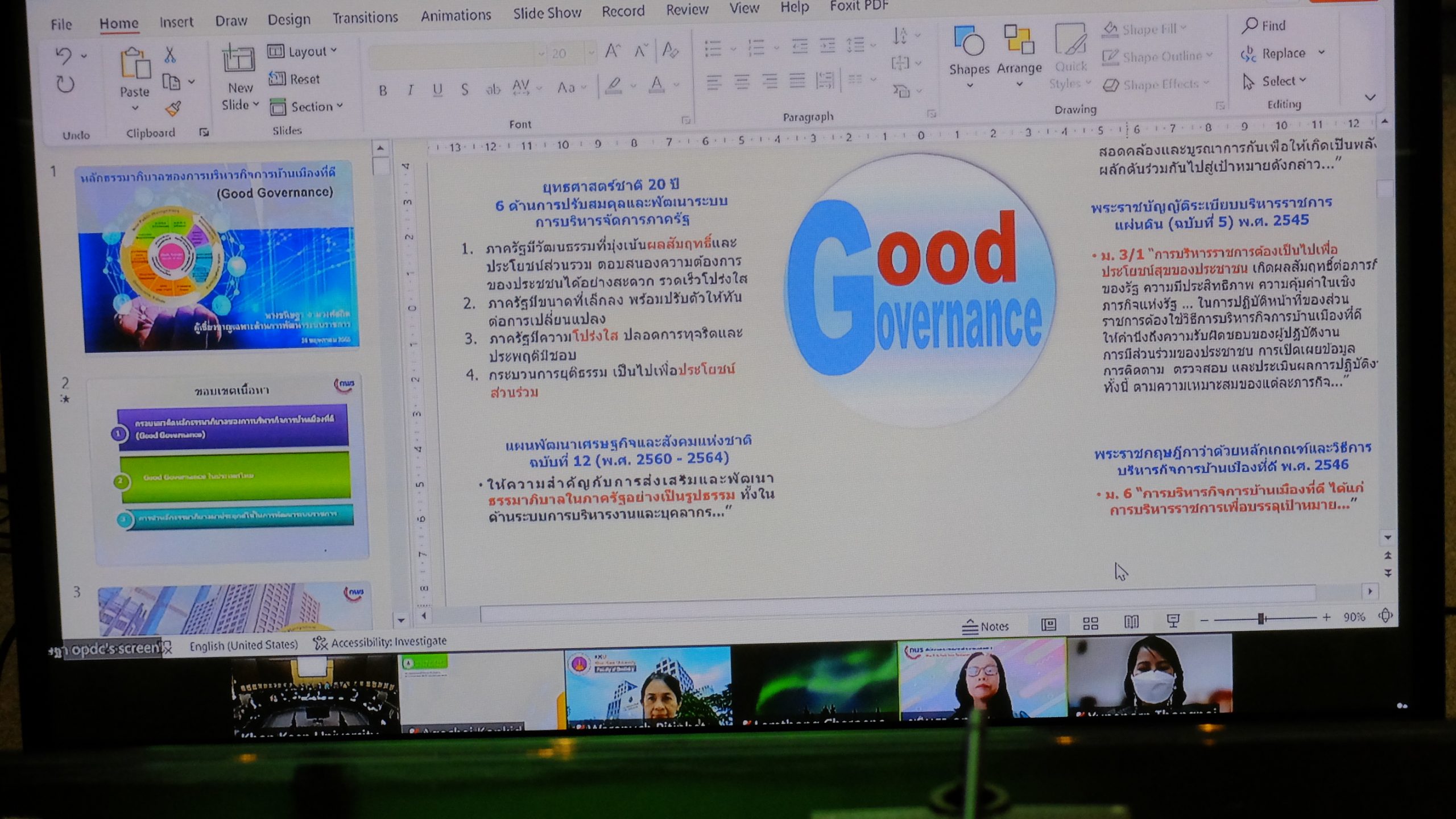 วันที่ 31 พฤษภาคม 2565 เวลา 08.30 น. – 12.30 น ที่ห้องประชุมสารสิน อาคารสิริคุณากร .ในการประชุมรับฟังการบรรยายพิเศษ เรื่อง หลักธรรมาภิบาลของการบริหารกิจการบ้านเมืองที่ดี โดยมี คุณ สุรพล เพชรวรา   อุปนายกสภามหาวิทยาลัยและกรรมการสภามหาวิทยาลัยผู้ทรงคุณวุฒิประธานกรรมการ คณะกรรมการด้านการบริหารจัดการที่ดี เป็นประธาน ได้มีการ มอบรางวัลโครงการแนวปฏิบัติที่ดี (Good Practice) และโครงการแนวปฏิบัติที่เป็นเลิศ (Best Practice)ประจำปีงบประมาณ พ.ศ. 2564 มหาวิทยาลัยขอนแก่น ให้กับหน่วยงานที่ผ่านการคัดเลือกจากคณะกรรมการกำกับดูแลองค์การที่ดี (Good Governace) โดยเป็นโครงการที่มีการดำเนินงานที่สอดคล้องกับหลักธรรมาภิบาลเพื่อเป็นการคัดเลือกและประกาศยกย่องผลงานที่มีการดำเนินการตามหลักธรรมาภิบาล สนับสนุนพันธกิจของส่วนงาน/หน่วยงาน และเปิดโอกาสให้ส่วนงาน/หน่วยงานและบุคลากรพัฒนางานตามอำนาจหน้าที่ให้มีประสิทธิภาพยิ่งขึ้นบรรลุตามเป้าหมายของมหาวิทยาลัยขอนแก่นที่กำหนดไว้