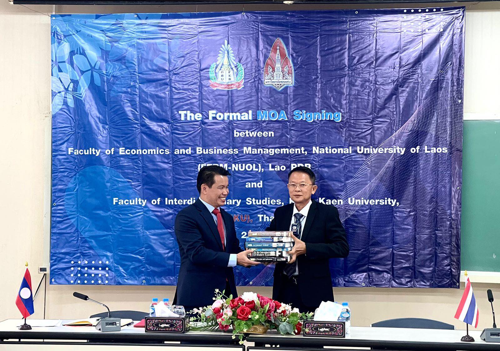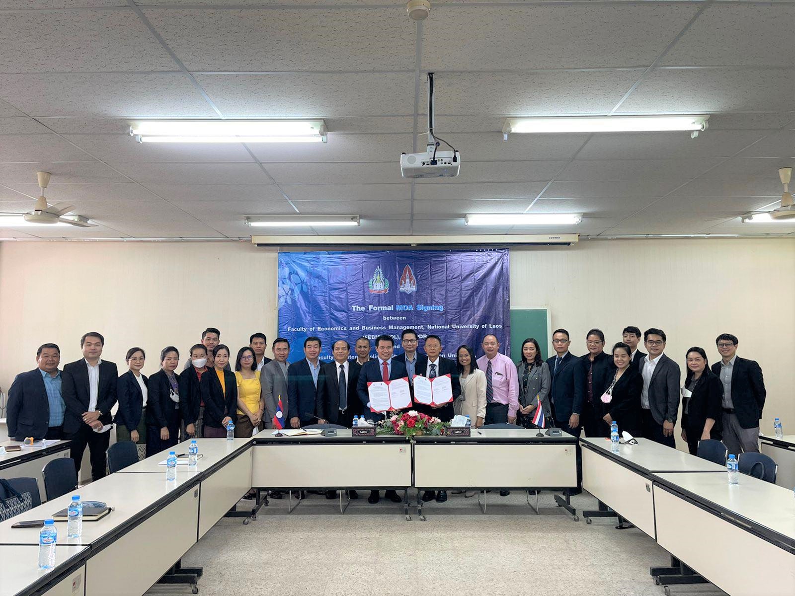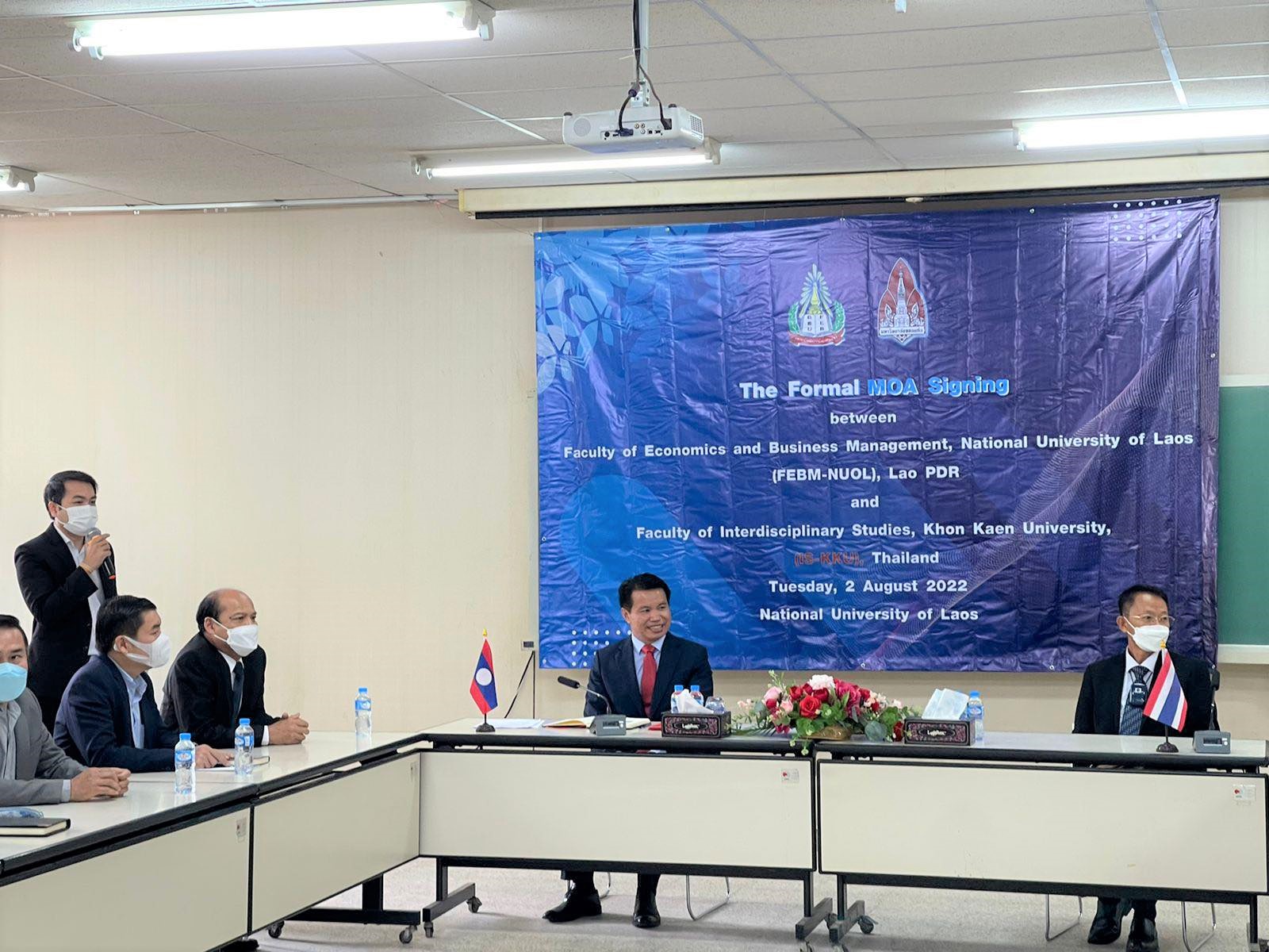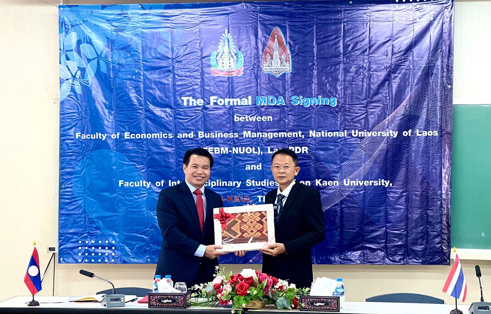 คณะเศรษฐศาสตร์และบริหารธุรกิจ มหาวิทยาลัยแห่งชาติลาว มีความโดดเด่นด้านการพัฒนาการเป็นผู้ประกอบการและนวัตกรรมในอนุภูมิภาคลุ่มแม่น้ำโขง (GMS) และการร่วมมือครั้งนี้เป็นอีกหนึ่งวิสัยทัศน์ที่สำคัญของมหาวิทยาลัยขอนแก่น ที่จะสร้างกรอบความร่วมมือกับประเทศในกลุ่ม GMS หรือ Greater Mekong Sub-region และเดิมคณะบริหารธุรกิจ มหาวิทยาลัยขอนแก่น วิทยาเขตหนองคาย และ Faculty of Economics and Business Management, National University of Laos มีความร่วมมือทางวิชาการกันหลายด้าน เช่น การประชุมวิชาการระดับนานาชาติ จำนวน 4 ครั้ง ด้านการบริการวิชาการ ด้านการเรียนการสอน ด้านการแลกเปลี่ยนอาจารย์ ด้านการแลกเปลี่ยนนักศึกษา ด้านการวิจัย อีกด้วย