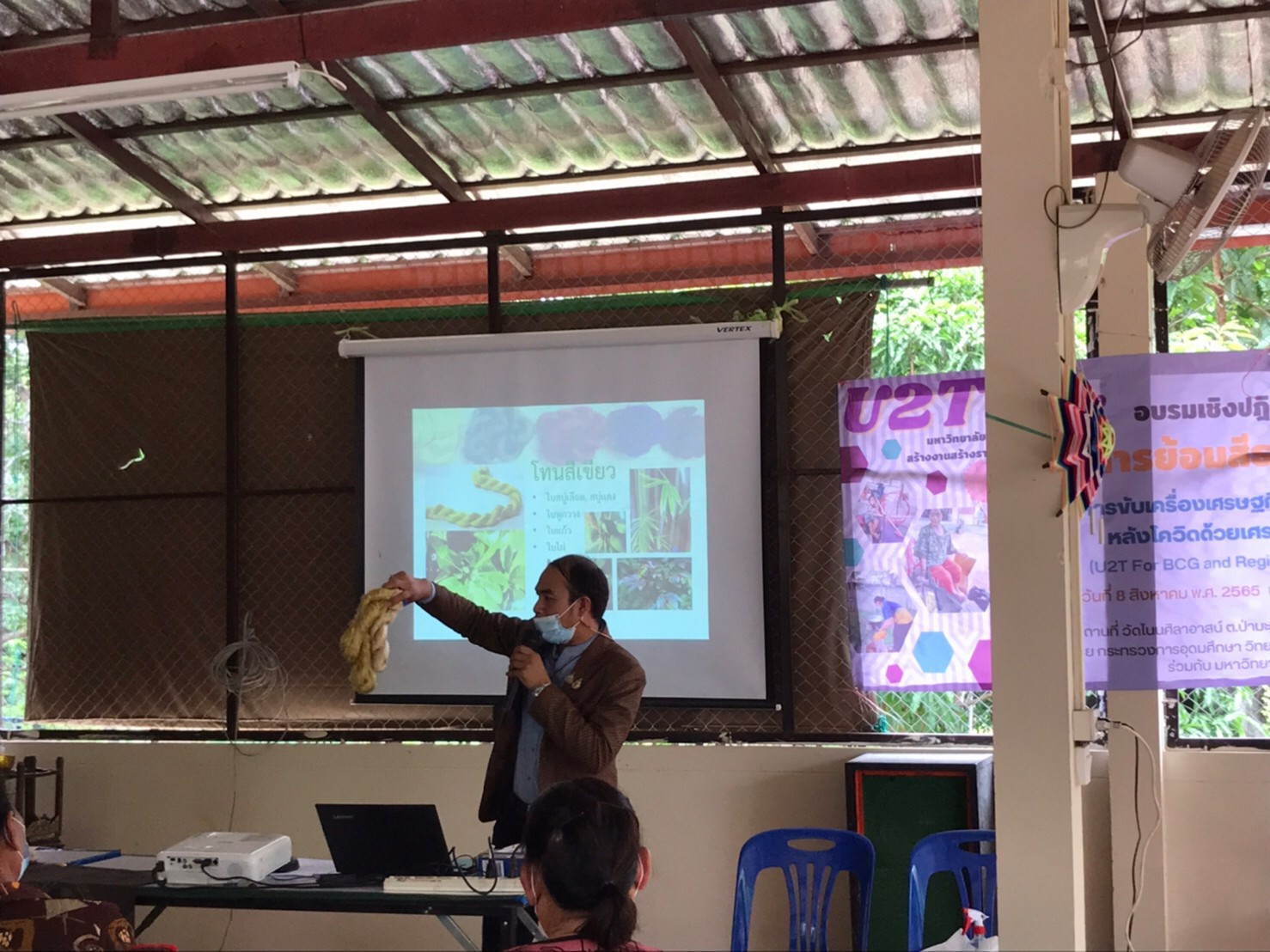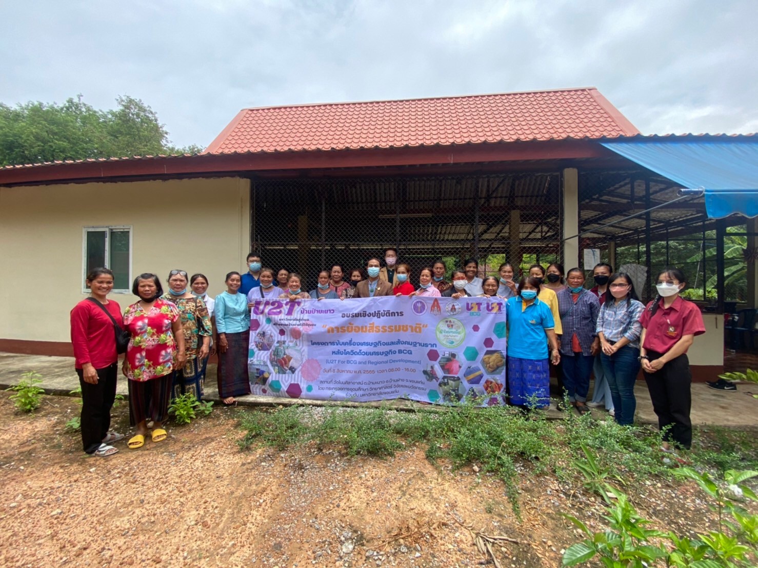 เมื่อวันที่ 8 สิงหาคม 2565 คณะเกษตรศาสตร์ มหาวิทยาลัยขอนแก่น จัดอบรม “การย้อมสีธรรมชาติ” ภายใต้การดำเนินโครงการขับเคลื่อนเศรษฐกิจและสังคมฐานรากหลังโควิดด้วยเศรษฐกิจหมุนเวียน BCG (U2T for BCG) ณ วัดโนนศิลาอาสน์ ตำบลป่ามะนาว อำเภอบ้านฝาง จังหวัดขอนแก่น ซึ่งทางโครงการมีวัตถุประสงค์เพื่อเพิ่มศักยภาพและขีดความสามารถในการแข่งขันของภาคการผลิตและบริการด้าน BCG ในการนำสินค้าและบริการในชุมชนมาพัฒนาและต่อยอดโดยการใช้องค์ความรู้ทางด้านเทคโนโลยีและนวัตกรรมมาเพื่มมูลค่าของสินค้าในชุมชนอย่างยั่งยืนและเป็นมิตรต่อสิ่งแวดล้อม