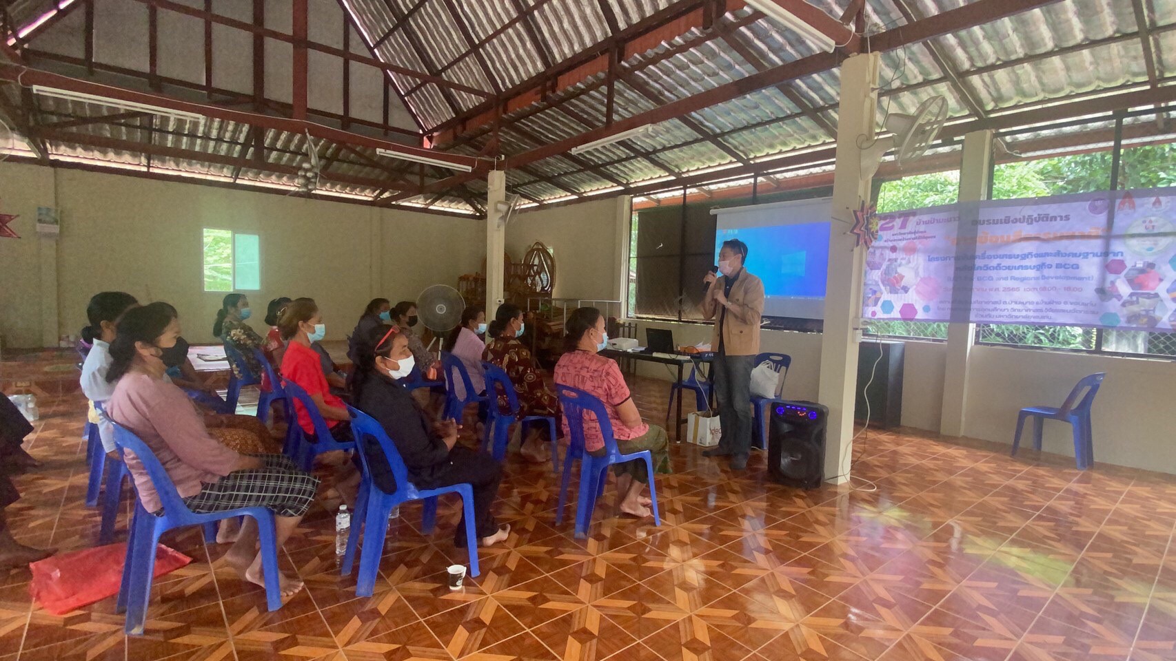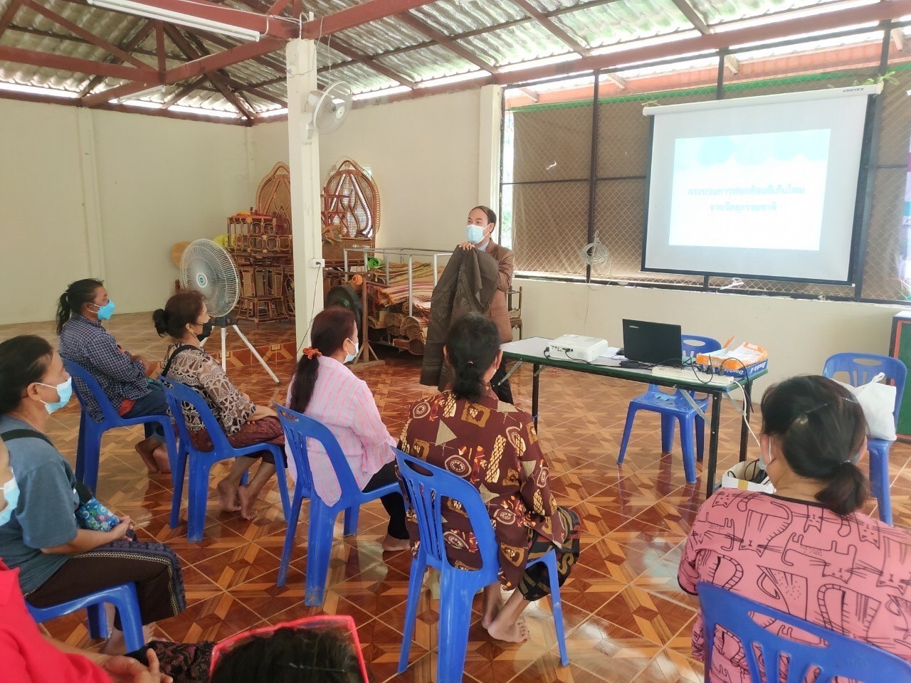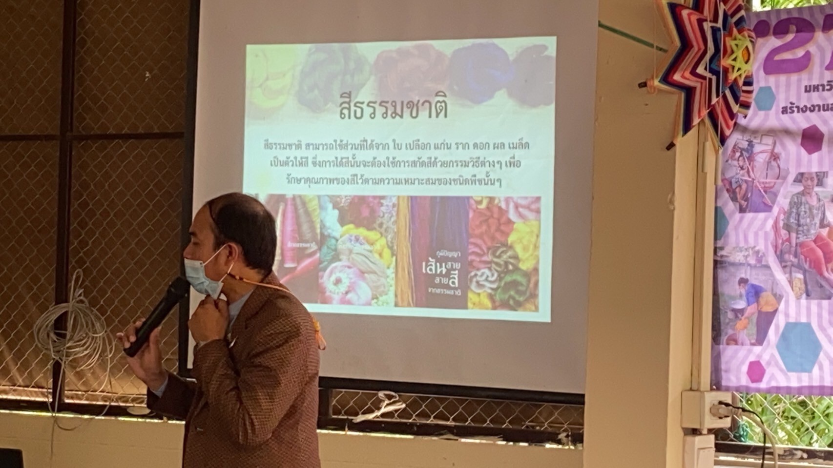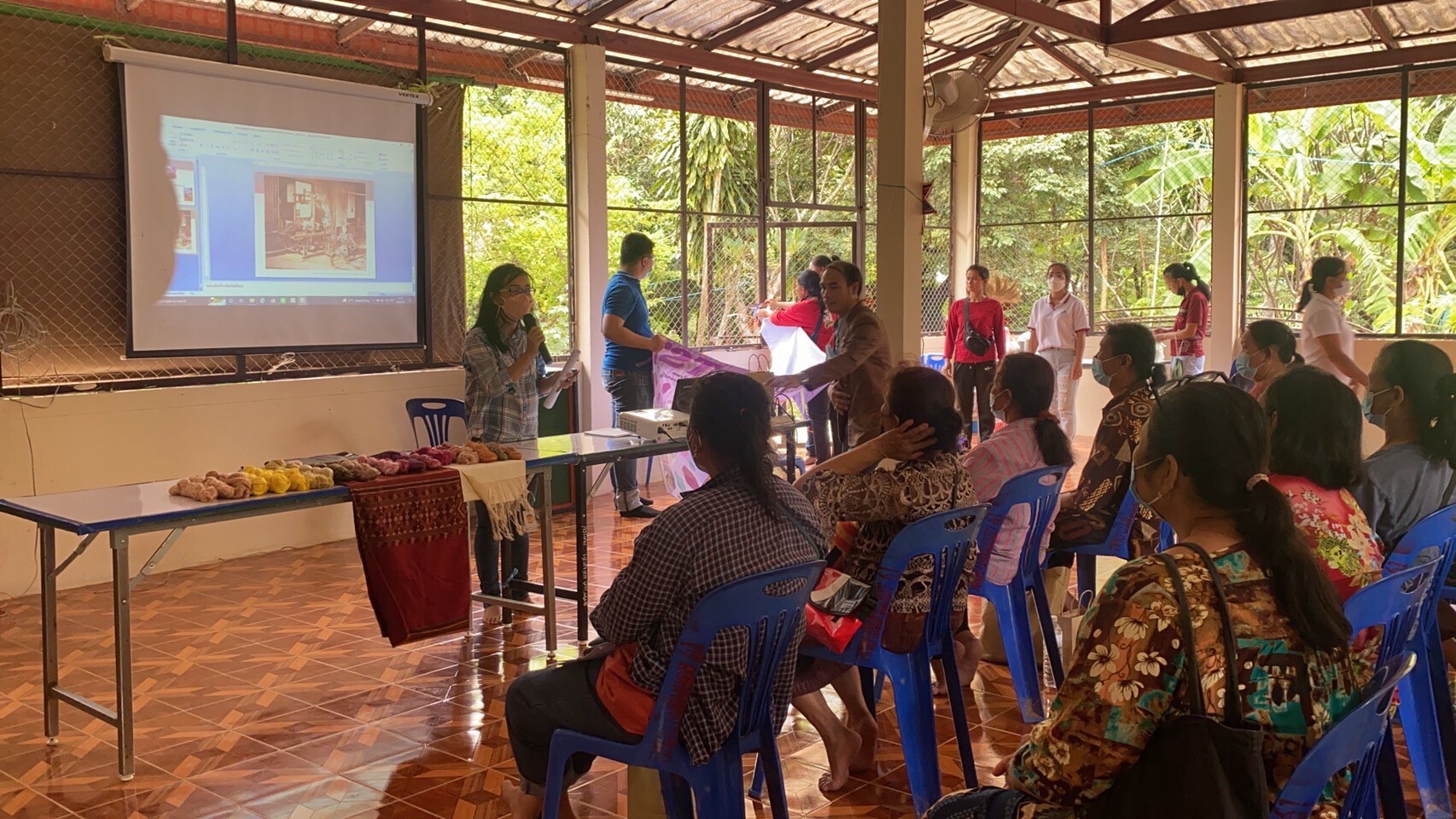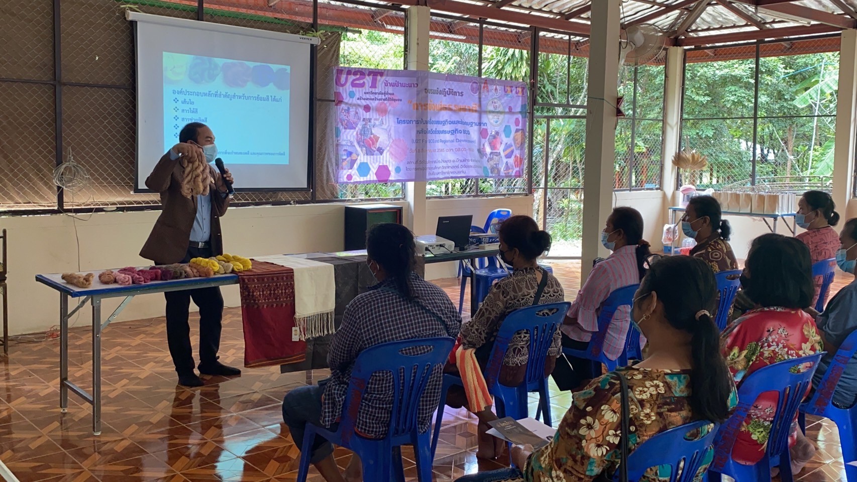การจัดงานอบรมในครั้งนี้ เพื่อถ่ายทอดภูมิปัญญาการทอผ้าไหมและส่งเสริมการเพิ่มมูลค่าผ้าไหมแท้ทอมือ มีผู้เข้าร่วมกิจกรรมเป็นผู้ที่เลี้ยงไหมและทอผ้าไหมภายในชุมชมป่ามะนาวที่สนใจการพัฒนาการย้อมสีและทอผ้าเพื่อต้องช่วยเพิ่มและยกระดับคุณภาพรวมถึงเพิ่มมูลค่าให้กับผ้าไหมพื้นบ้านที่ผลิตในชุมชนป่ามะนาวด้วยหลักการ BCG โดยการอบรมในครั้งนี้เป็นการบรรยายให้ความรู้ในห้วข้อเกี่ยวกับ (1) หลักการและกระบวนการย้อมผ้าไหมด้วยการใช้สีย้อมจากธรรมชาติ (2) การทำความรู้จักและเลือกใช้วัสดุจากธรรมชาติชนิดต่างๆ มาย้อมเส้นไหมให้ได้เฉดที่ต้องการ (3) ขั้นตอนการขอการรับรองมาตรฐานผลิตภัณฑ์ผ้าไหมไทย (ตรานกยูงพระราชทาน)