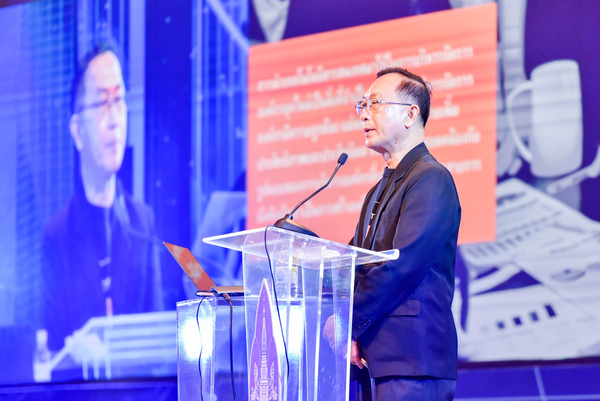 ในการนี้ ดร.ณรงค์ชัย อัครเศรณี นายกสภามหาวิทยาลัยขอนแก่น ได้บรรยายในหัวข้อ Global Challenges and Digital Transformation : The immediate challenges to tackle โดยได้กล่าวสรุปในช่วงท้ายการบรรยายว่า “ความสัมพันธ์ของประเทศมหาอำนาจในโลก เปลี่ยนรูปแบบของปัญหาพื้นฐาน และเปลี่ยนเร็วกว่าเดิมเป็นอย่างมาก ซึ่งถ้าดูแล้ว เราคงต้องใช้ดิจิตอลเทคโนโลยีมาช่วยเราบริหาร แปลว่าต้องทำให้เร็วขึ้น ดีขึ้น ผมเลยขอหยิบยกข้อความของ Mark Carney ในหนังสือ Value ที่เป็นหนังสือ Best Seller ที่ออกเมื่อปีที่แล้ว โดยเขากล่าวว่า Digitalization  by Design not by Default หรือ การนำเทคโนโลยีดิจิทัลมาใช้ต้องดำเนินไปอย่างมีทิศทาง มีการวางแผน และออกแบบ ไม่ใช่ให้เป็นไปอย่างไร้การควบคุม หรือปล่อยให้เป็นไปตามธรรมชาติ ซึ่งความหมายของเขา คือ เราต้องรู้ว่าเราจะทำเทคโนโลยีเพื่อใคร และเพื่ออะไร  ฉะนั้นสิ่งนี้จึงเป็นสิ่งที่ผมคิดว่าเราชาว มข. คงจะตั้งความหวังและให้กำลังใจผู้ที่ทำงานด้าน Digital transformation technology และ ร่วมมือกันมาจัดการจัดระบบ ที่จะมาช่วยบรรเทาปัญหาต่างๆในการทำงาน รวมไปถึงบรรเทาปัญหาต่างๆที่โลกกำลังเผชิญอยู่ให้เบาบางลง