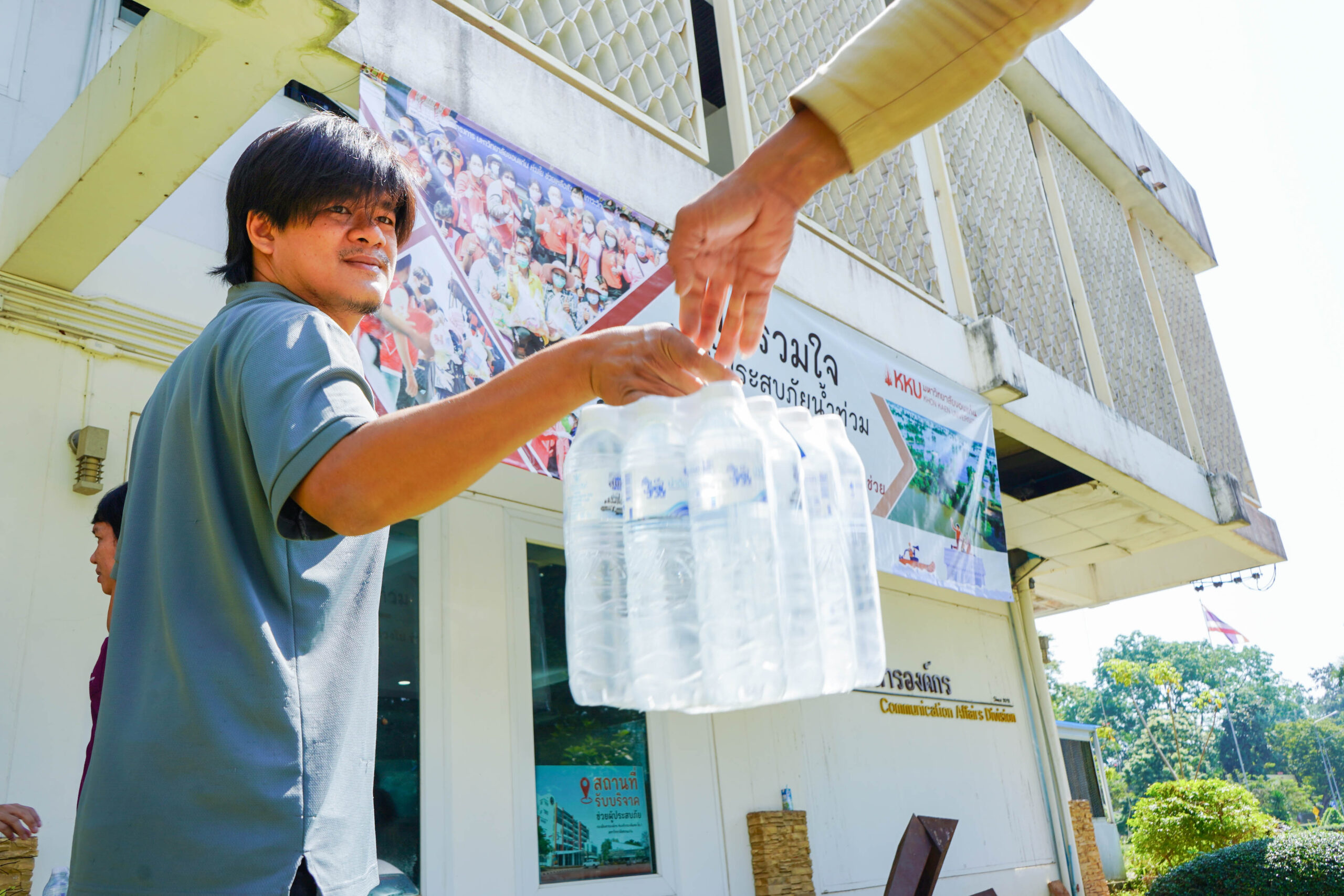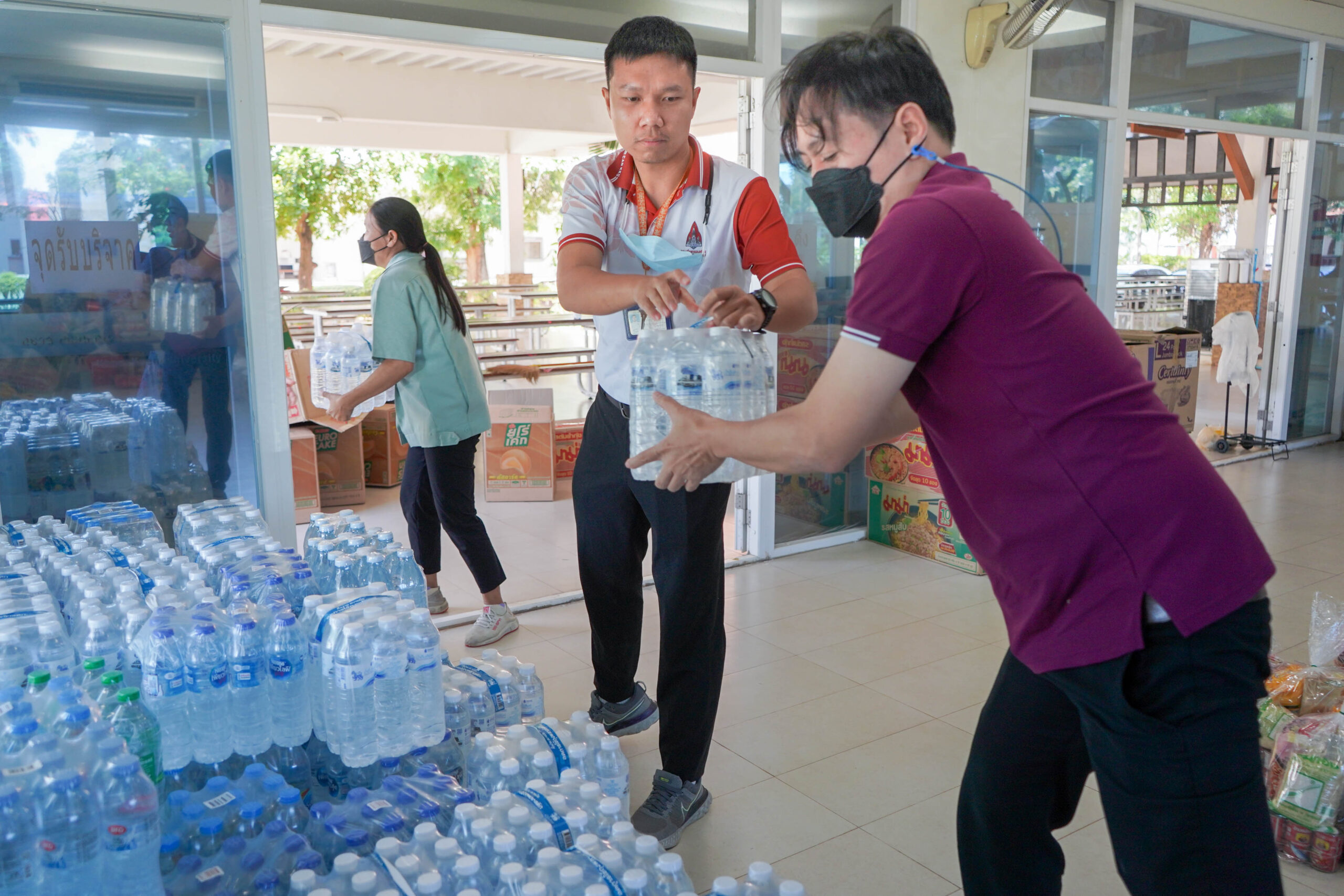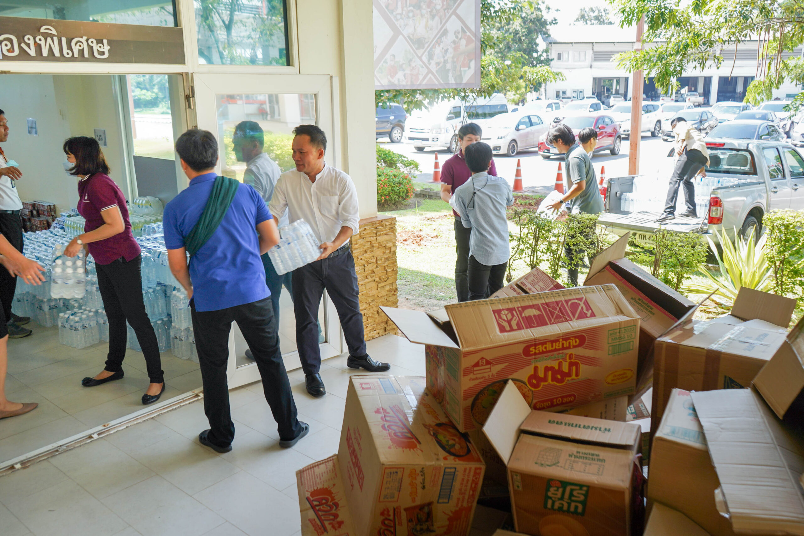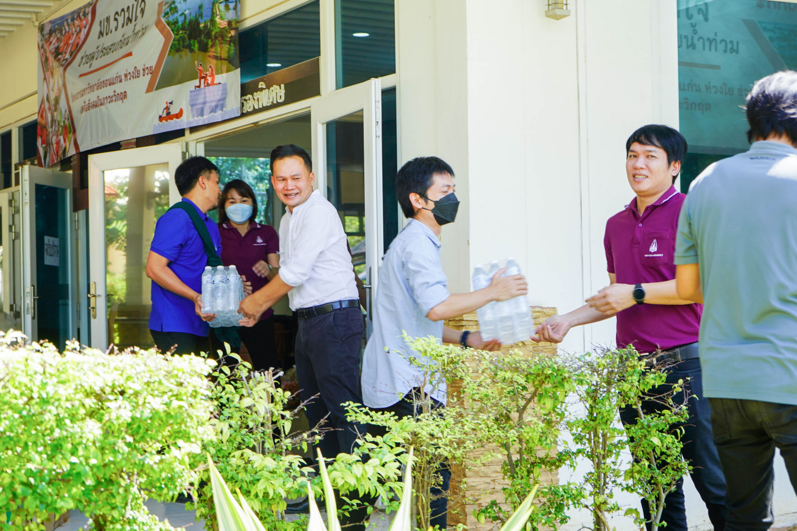 คณะเกษตรศาสตร์ มข.ร่วมกับสิงห์อาสา บริจาคน้ำดื่มสิงห์ 155 แพ็ค ในโครงการ มข.ร่วมใจ ช่วยเหลือผู้ประสบภัยน้ำท่วม