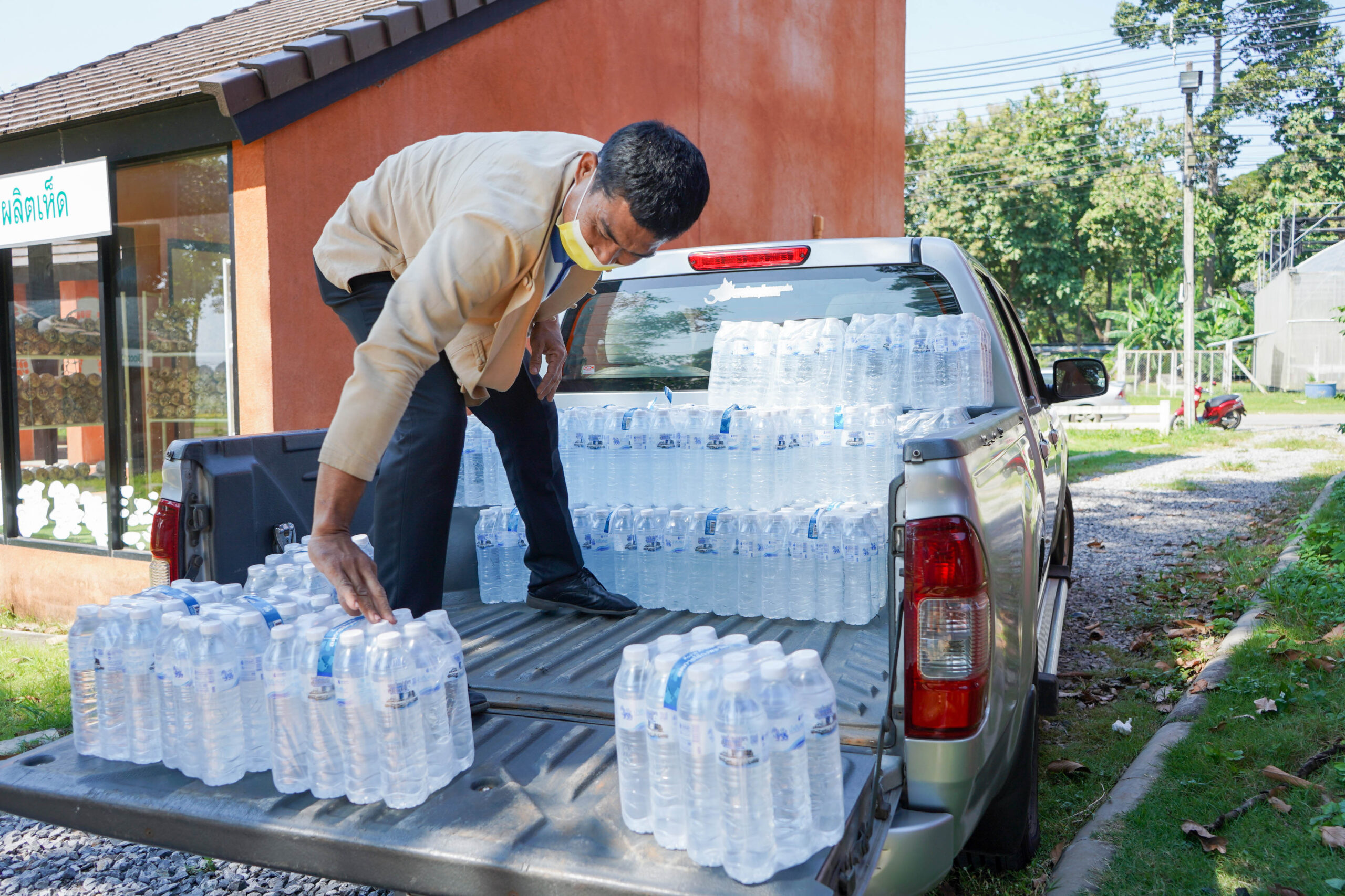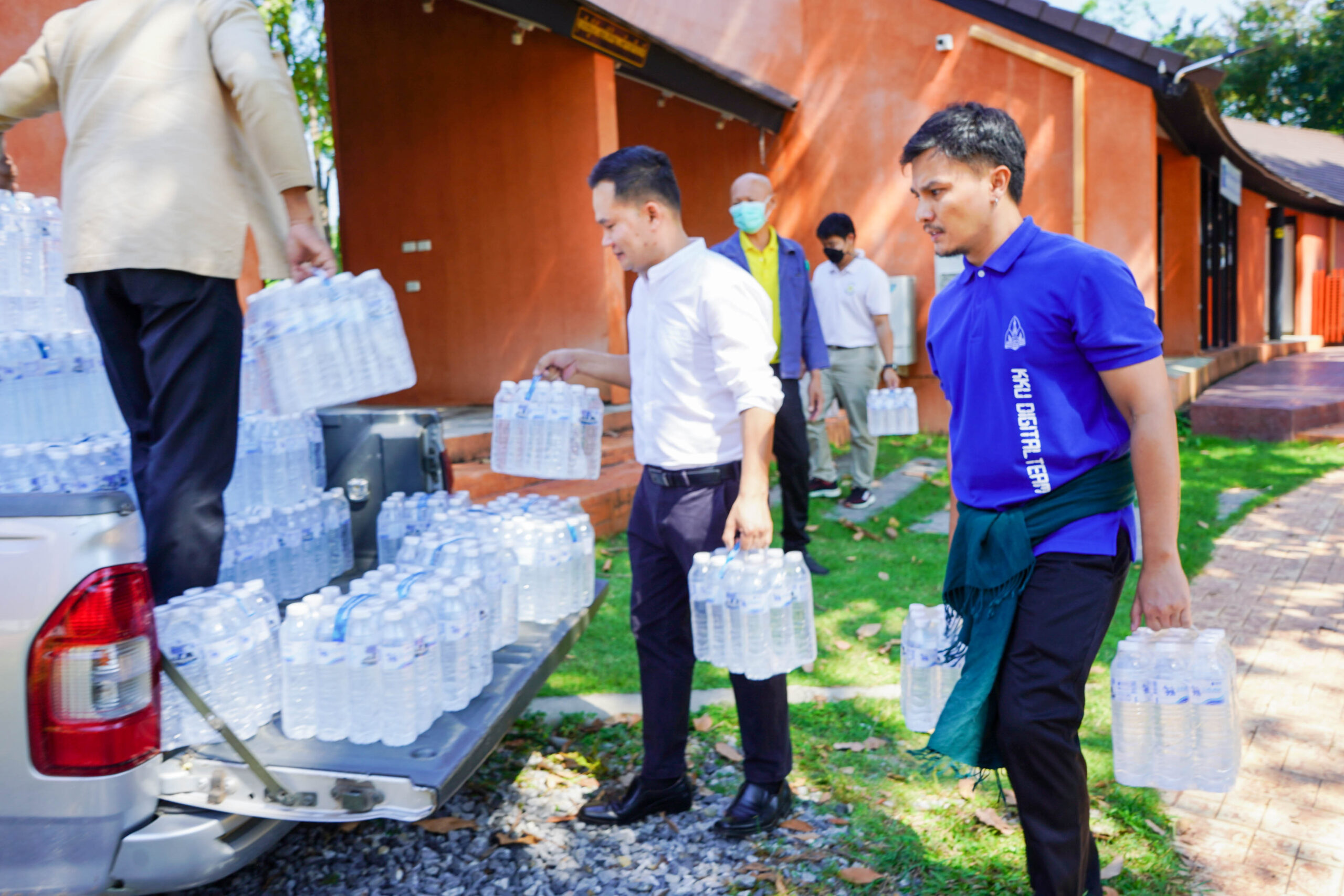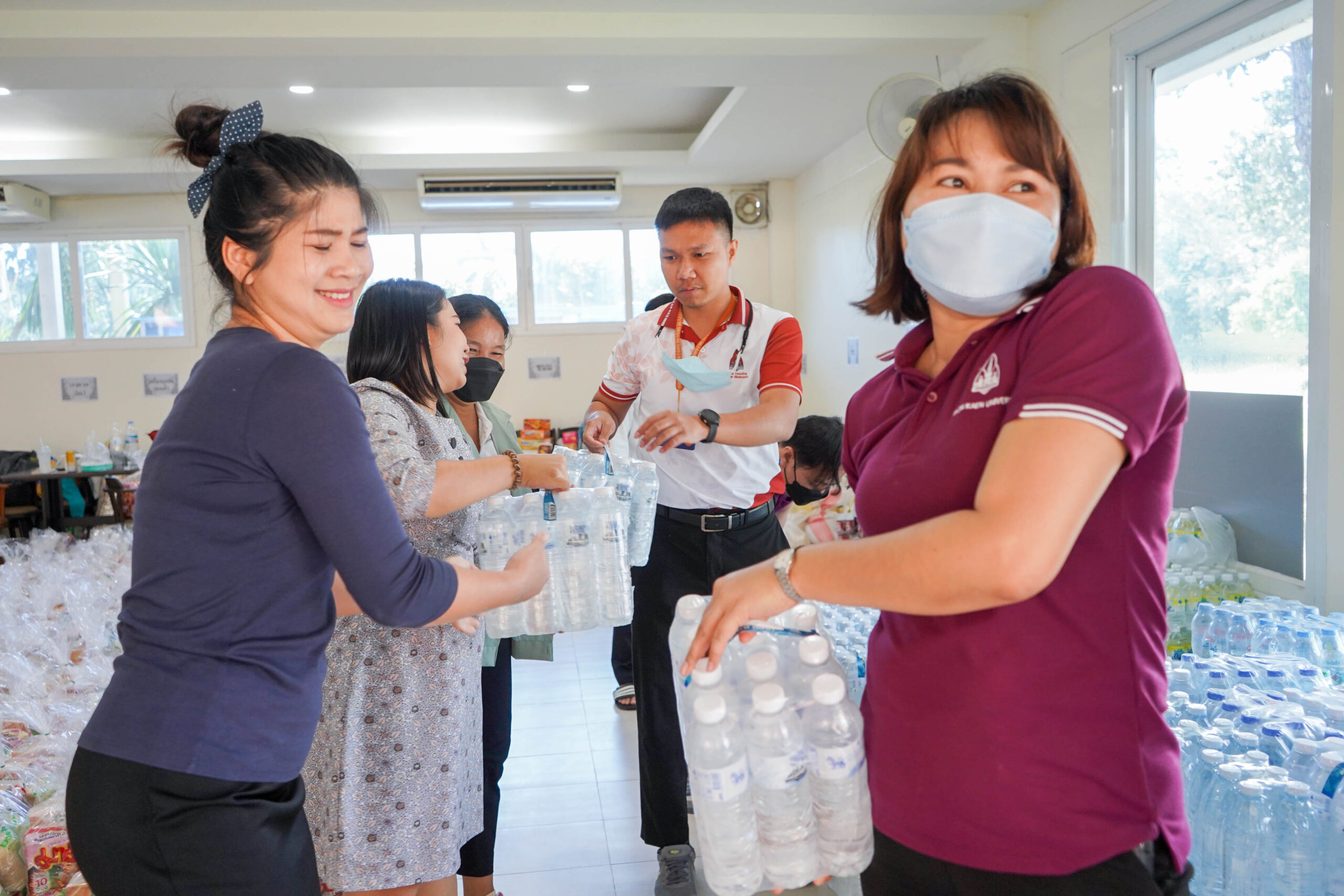 คณะเกษตรศาสตร์ มข.ร่วมกับสิงห์อาสา บริจาคน้ำดื่มสิงห์ 155 แพ็ค ในโครงการ มข.ร่วมใจ ช่วยเหลือผู้ประสบภัยน้ำท่วม