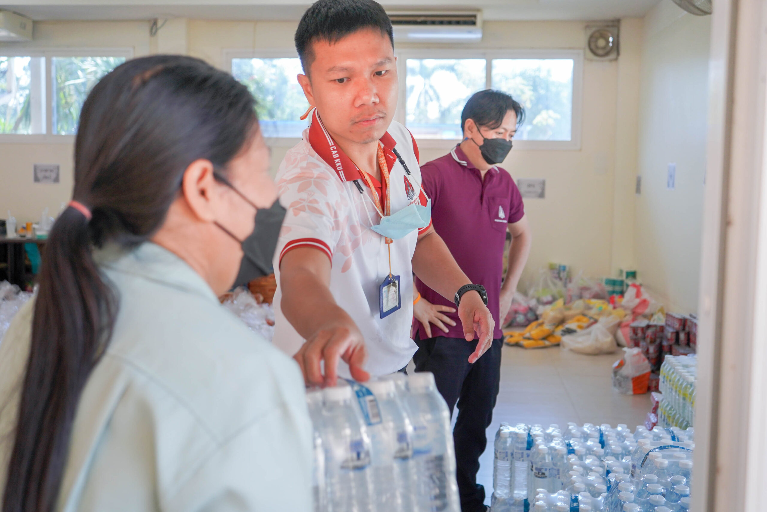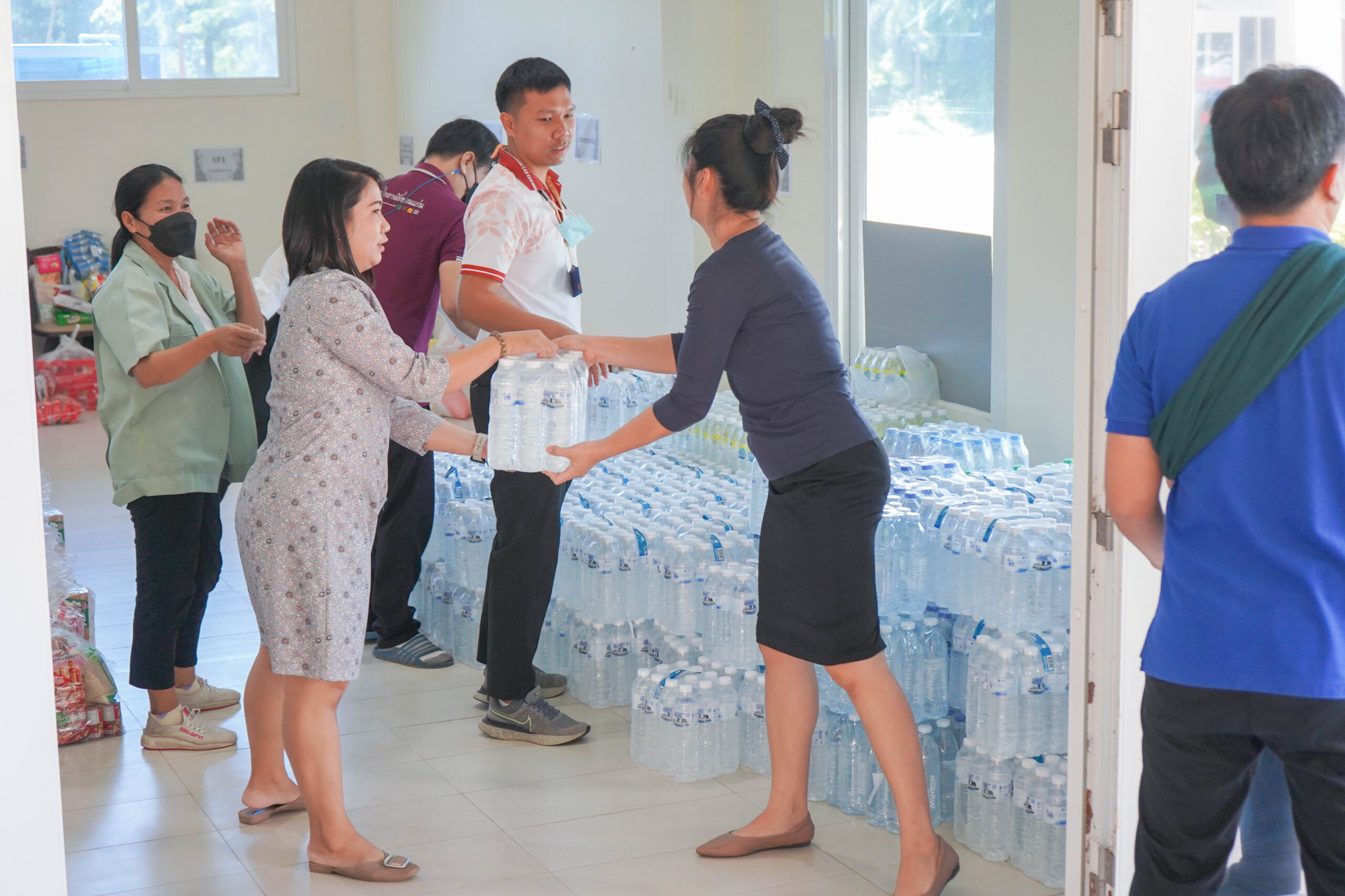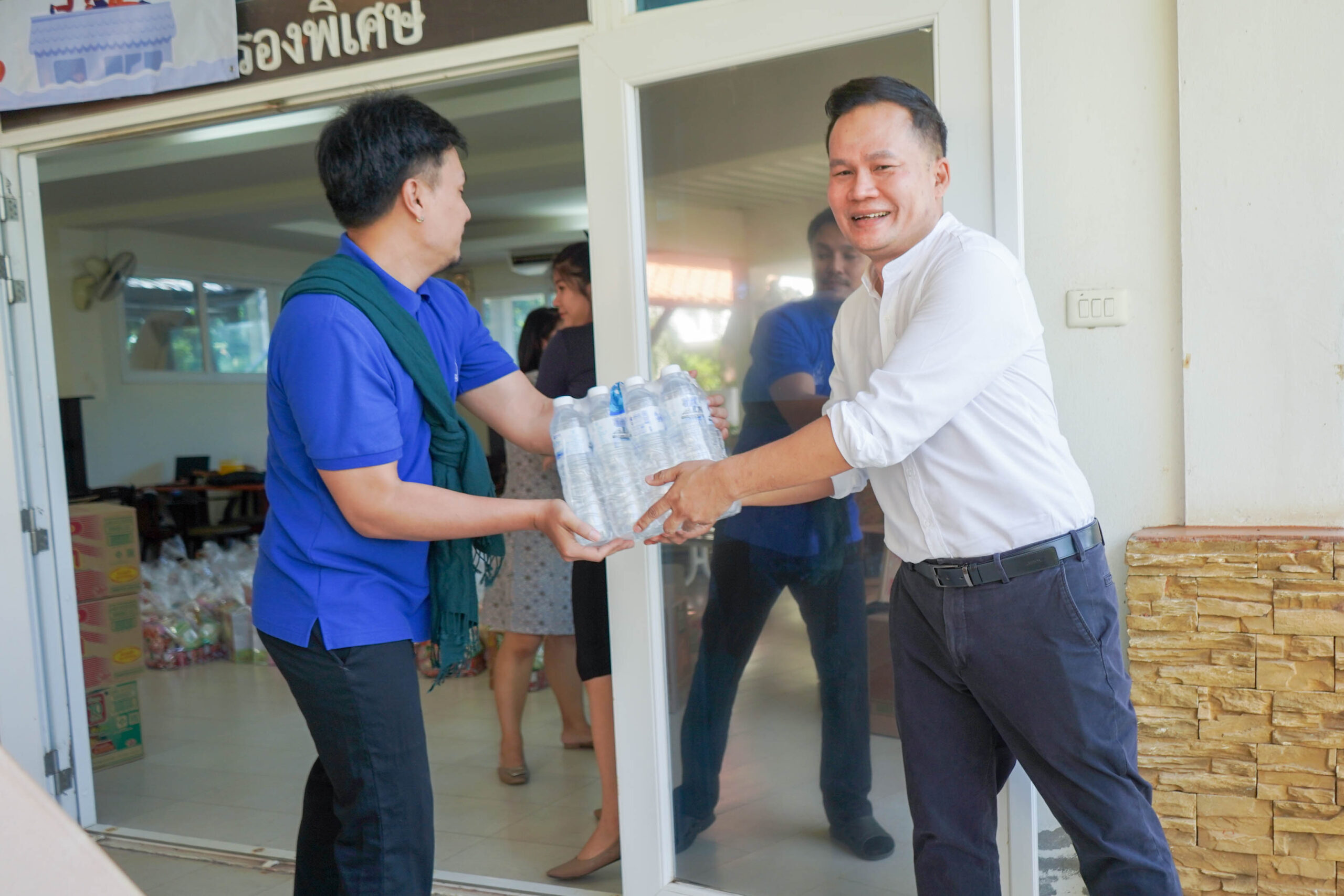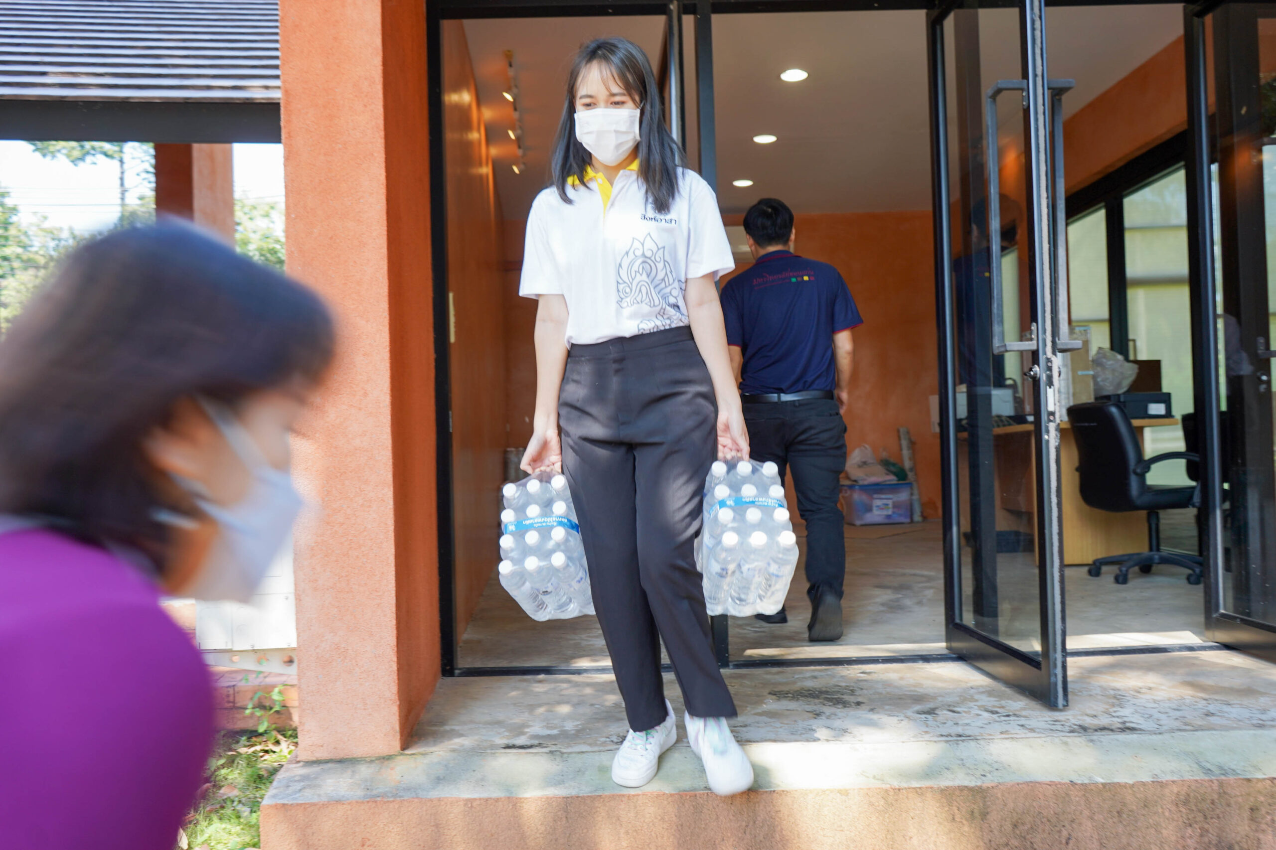 คณะเกษตรศาสตร์ มข.ร่วมกับสิงห์อาสา บริจาคน้ำดื่มสิงห์ 155 แพ็ค ในโครงการ มข.ร่วมใจ ช่วยเหลือผู้ประสบภัยน้ำท่วม