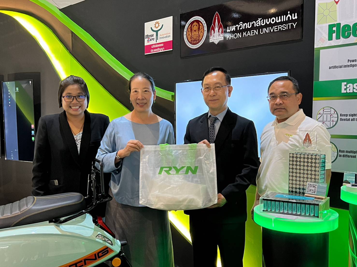“บริษัท ยิบอินซอย จำกัด จะนำแบตเตอรี่ ลิเธียม อิออน ไปใช้กับ รถจักรยานยนต์ไฟฟ้า ของบริษัท ยี่ห้อ Ryn โดยในปีนี้ มหาวิทยาลัยขอนแก่น จะส่งมอบ 500 คัน ปีหน้า 6,000 คัน นอกจากนี้ มหาวิทยาลัยขอนแก่น จะพัฒนาและส่งมอบแบตเตอรี่ โซเดียม อิออน จำนวน 5 kw hr ให้กับยิบ อิน ซอย เพื่อนำไปใช้ในระบบ กักเก็บพลังงาน ในโครงการ Smart Farming ของบริษัท อีกด้วย ”