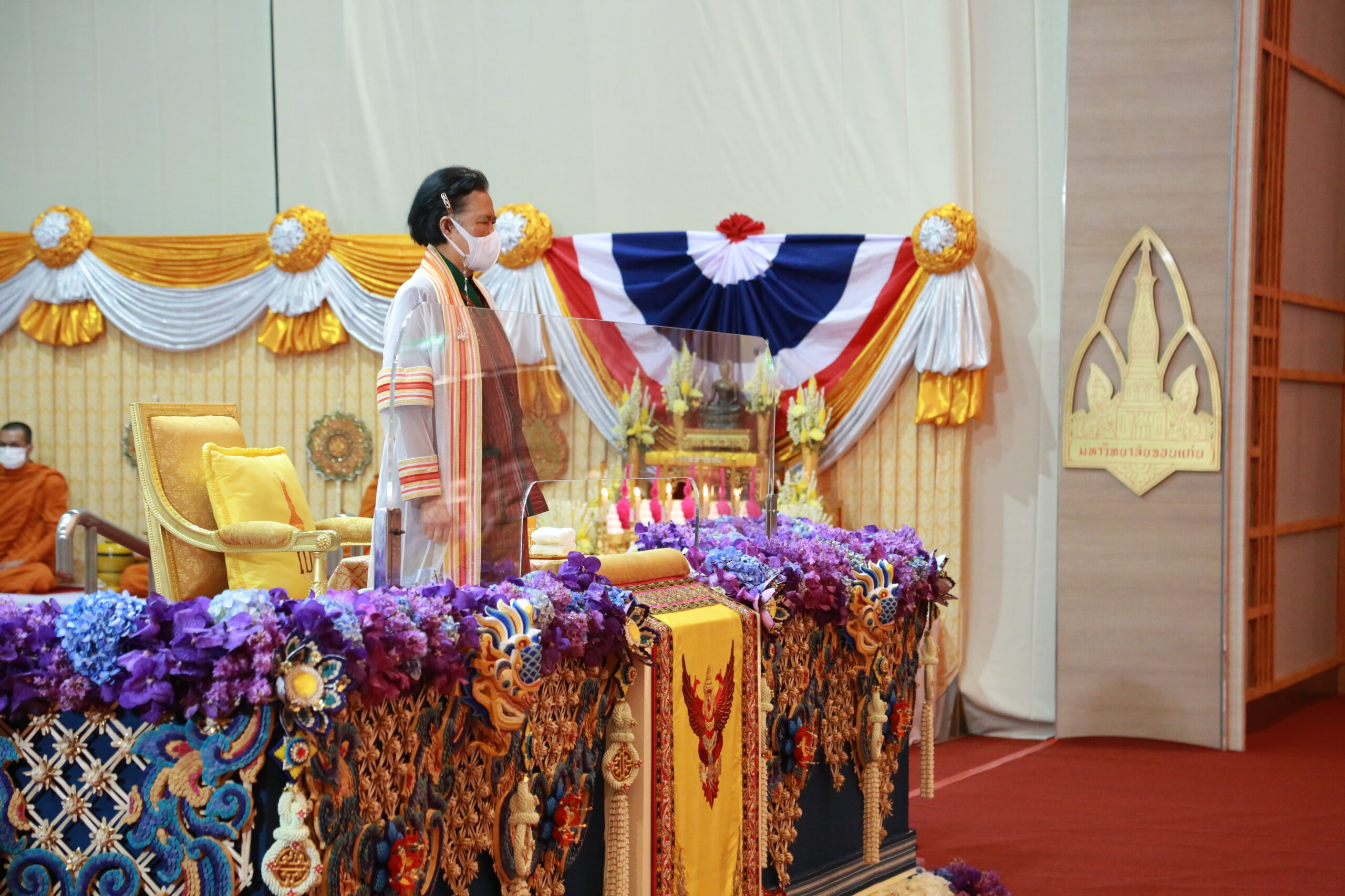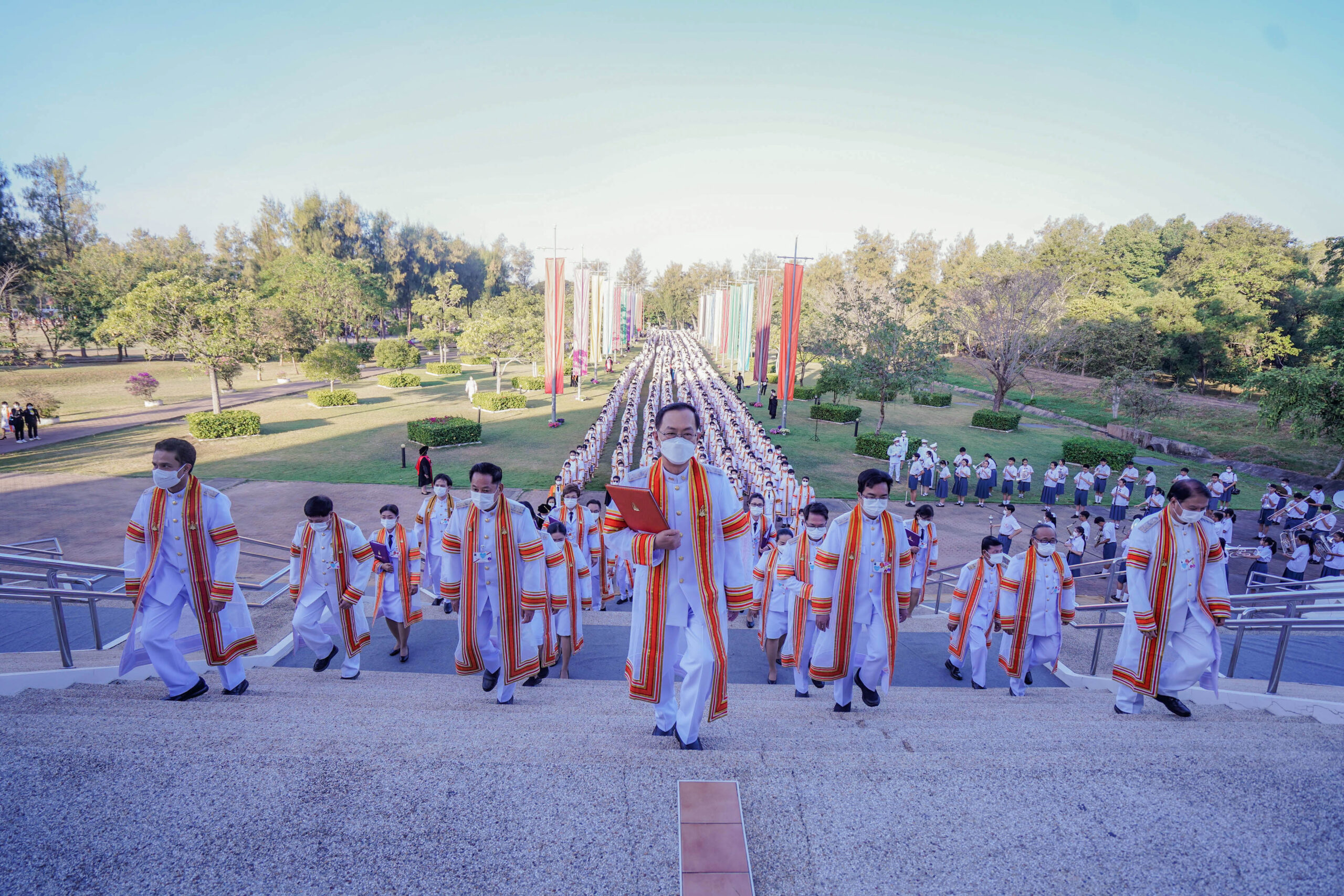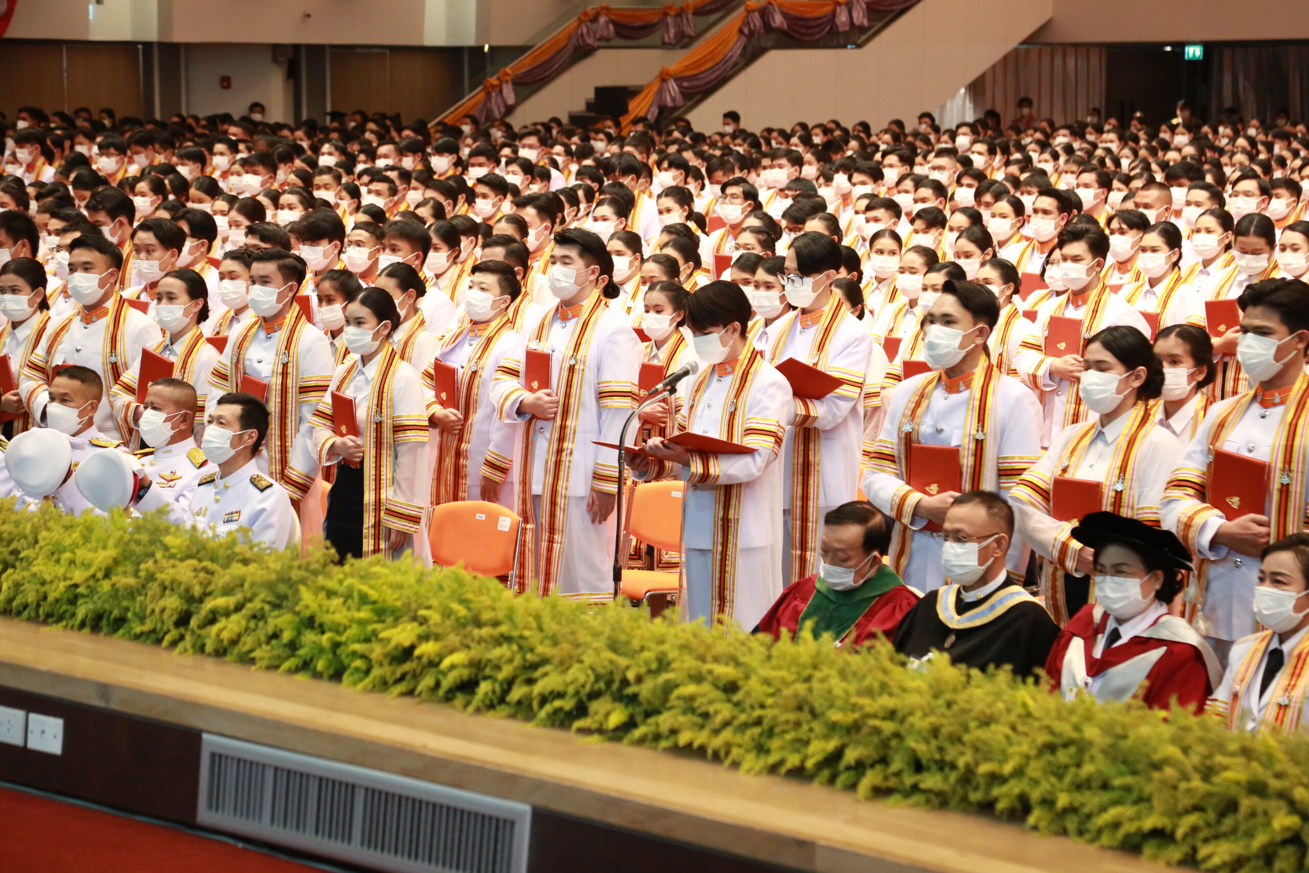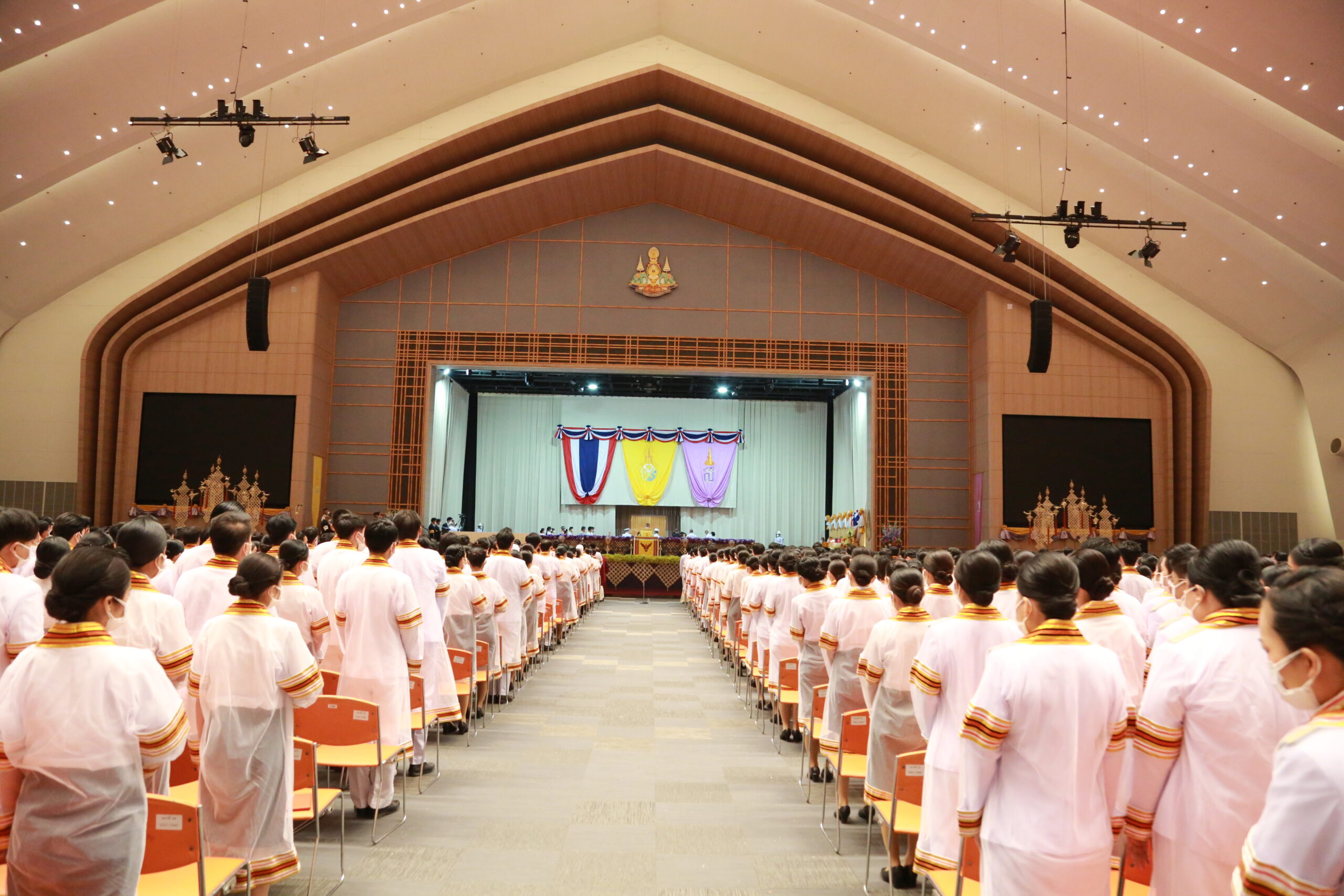 ในพระปรมาภิไธยพระบาทสมเด็จพระเจ้าอยู่หัวขออวยพรให้บัณฑิตใหม่ทุกคน และผู้มาร่วมในพิธีนี้ทุกท่าน มีความสุขสวัสดีโดยทั่วกัน.”