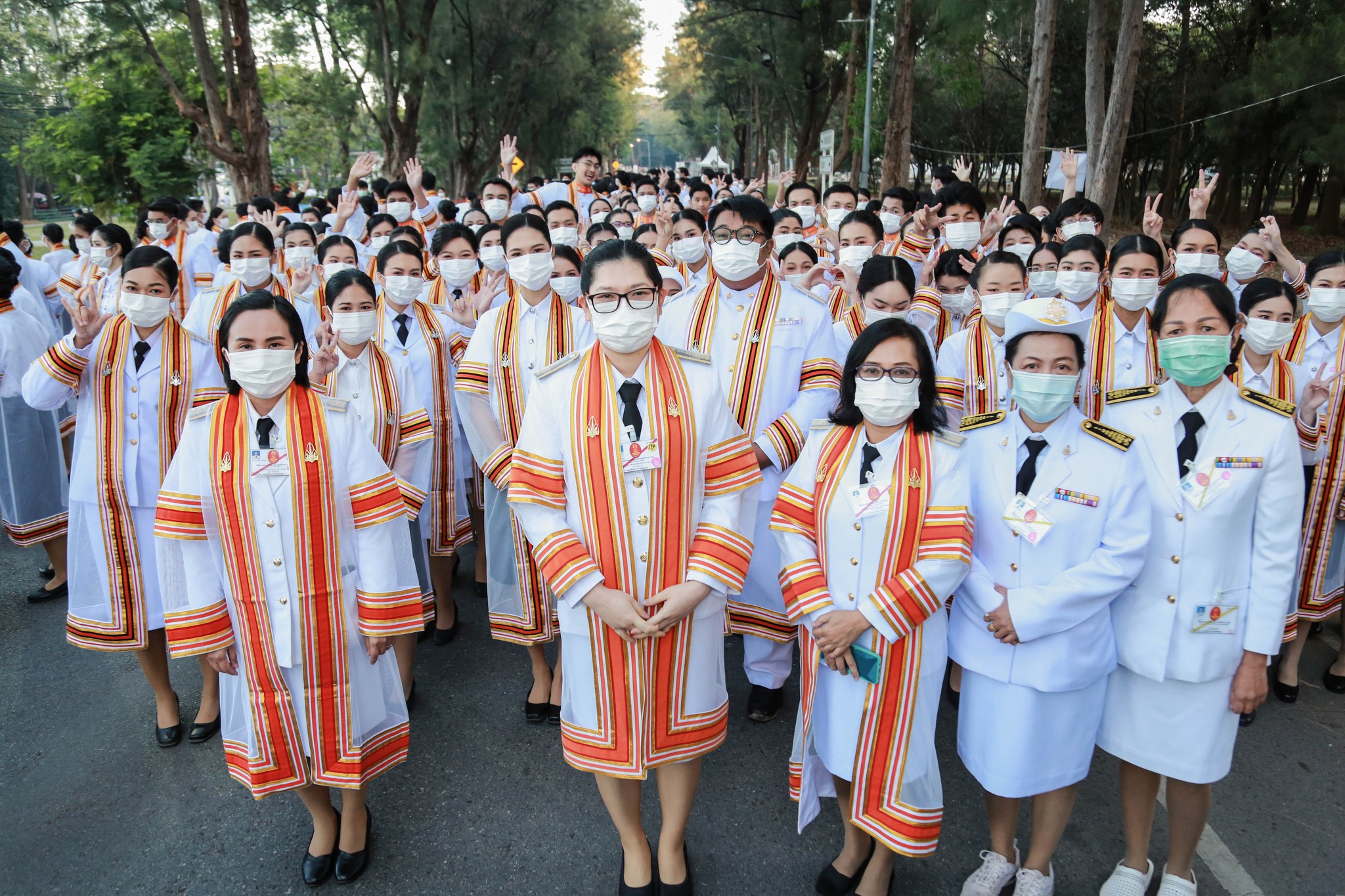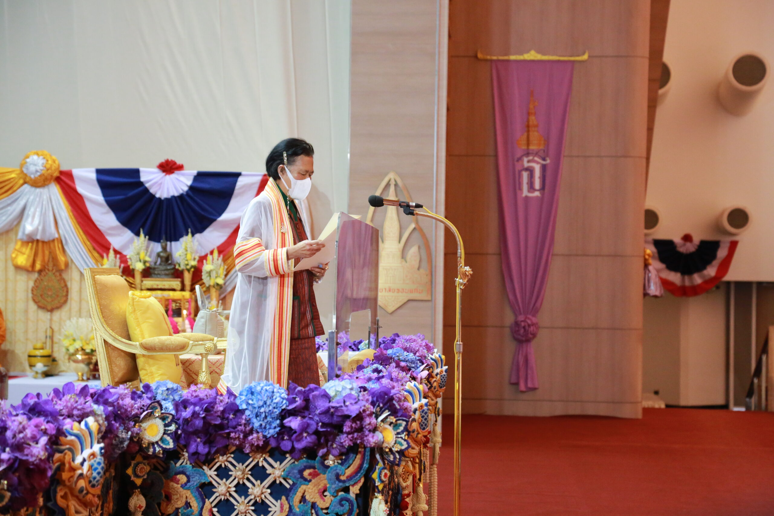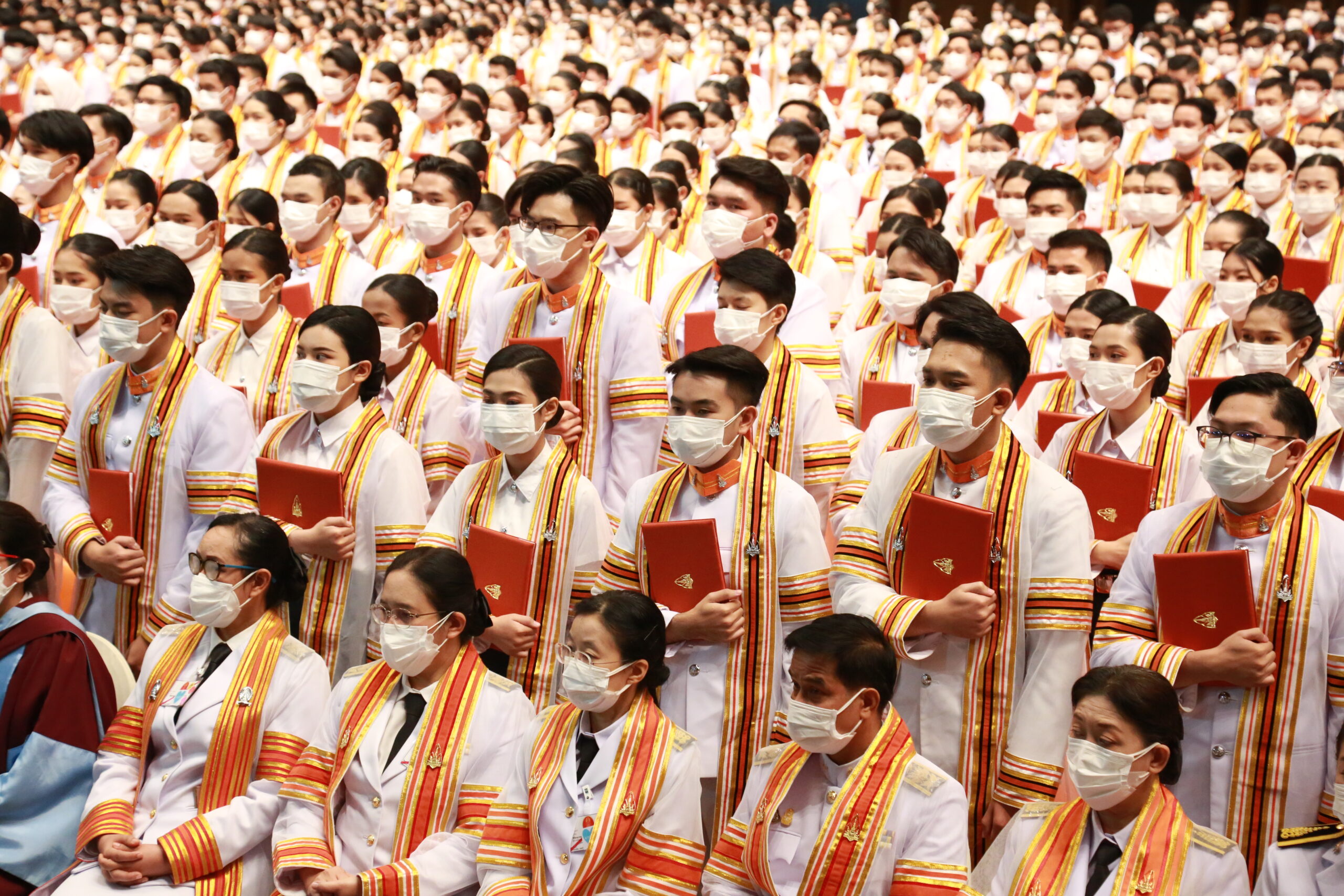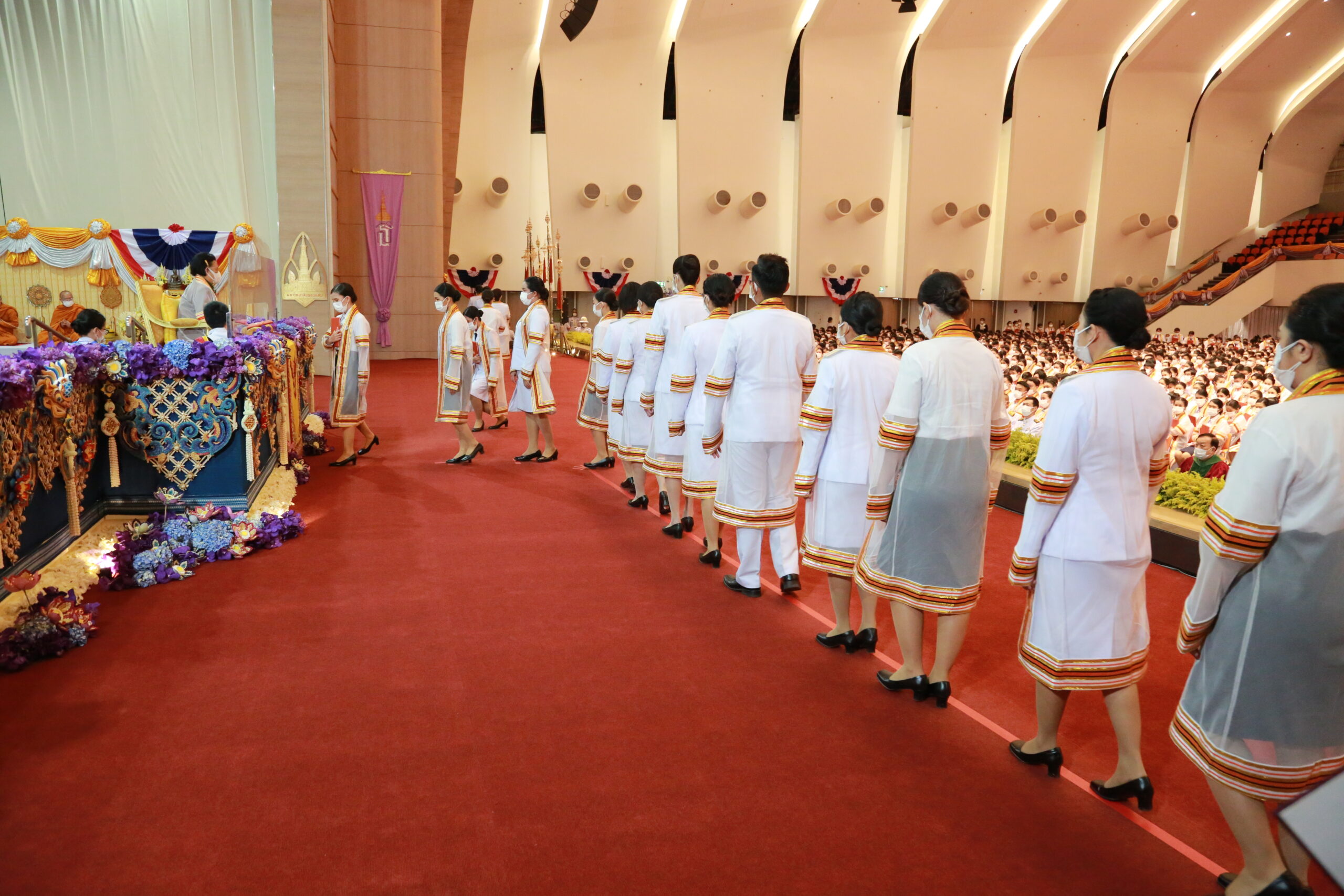 ในพระปรมาภิไธยพระบาทสมเด็จพระเจ้าอยู่หัวขออวยพรให้บัณฑิตใหม่ทุกคน และผู้มาร่วมในพิธีนี้ทุกท่าน มีความสุขสวัสดีโดยทั่วกัน.”