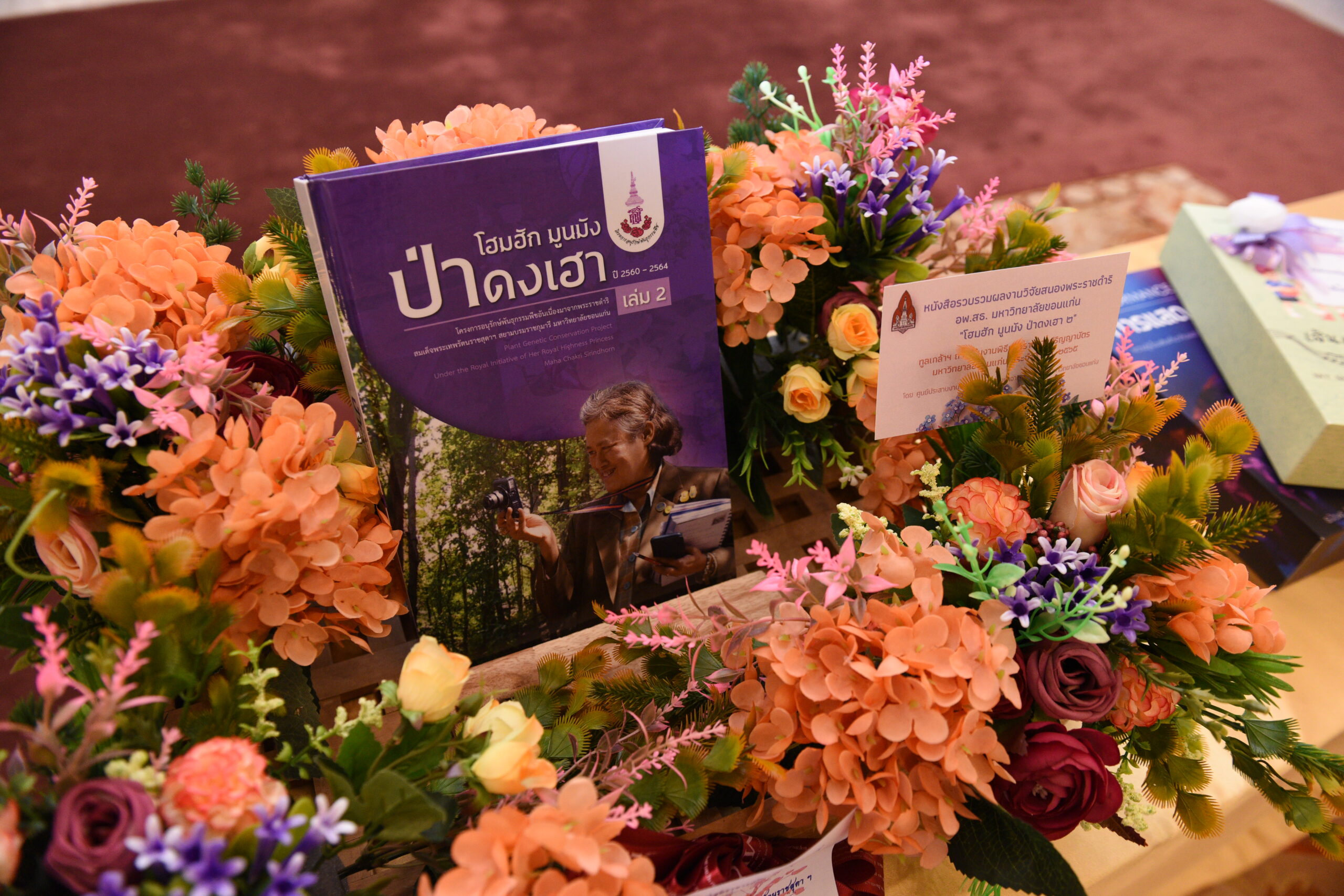 ศ.ธิดารัตน์ บุญมาศ รองอธิการบดีฝ่ายนวัตกรรมและวิสาหกิจ ทูลเกล้า ฯ ถวาย หนังสือ เรื่อง “โฮมฮัก มูนมัง ป่าดงเฮา” เล่ม 2 จากศูนย์ประสานงานโครงการอันเนื่องมาจากพระราชดำริ