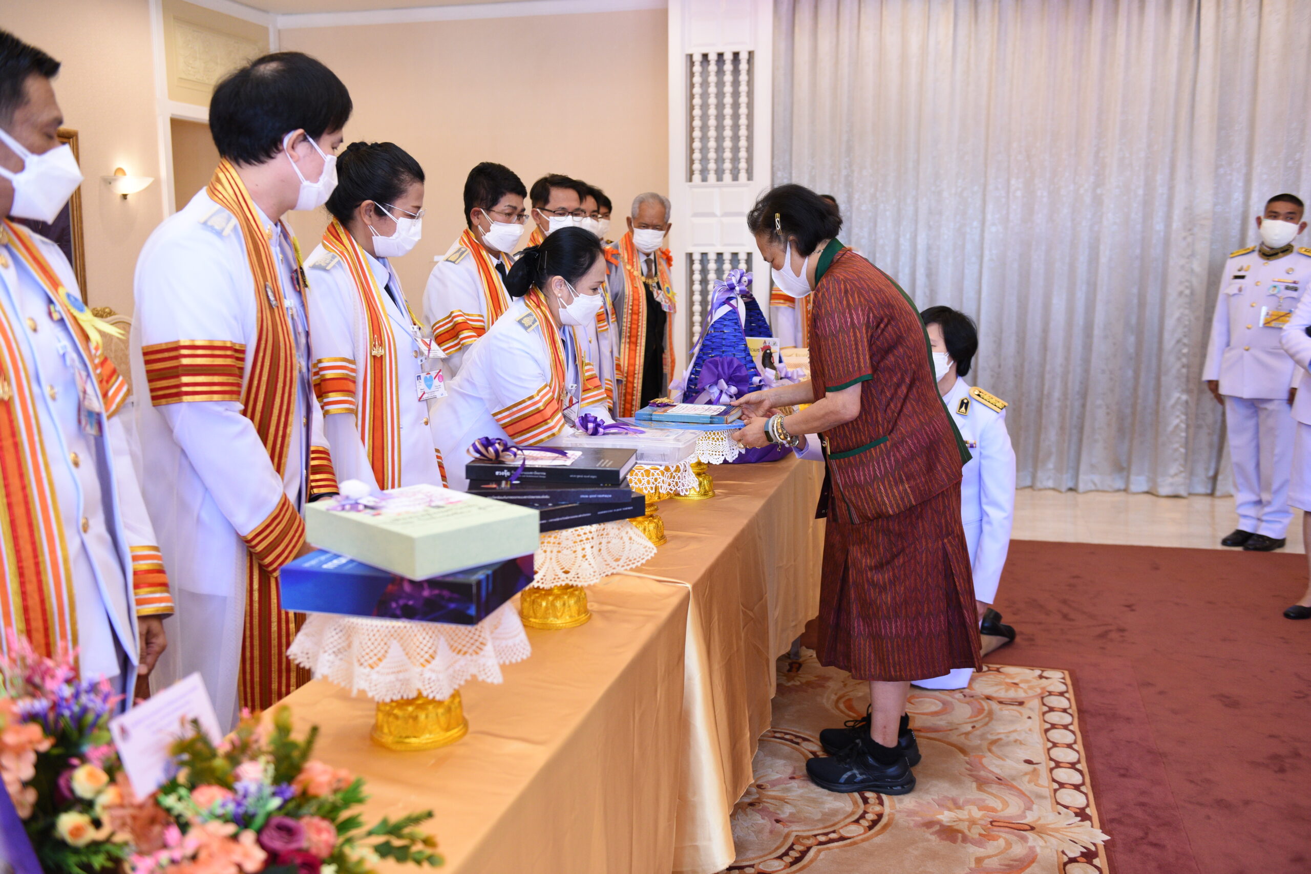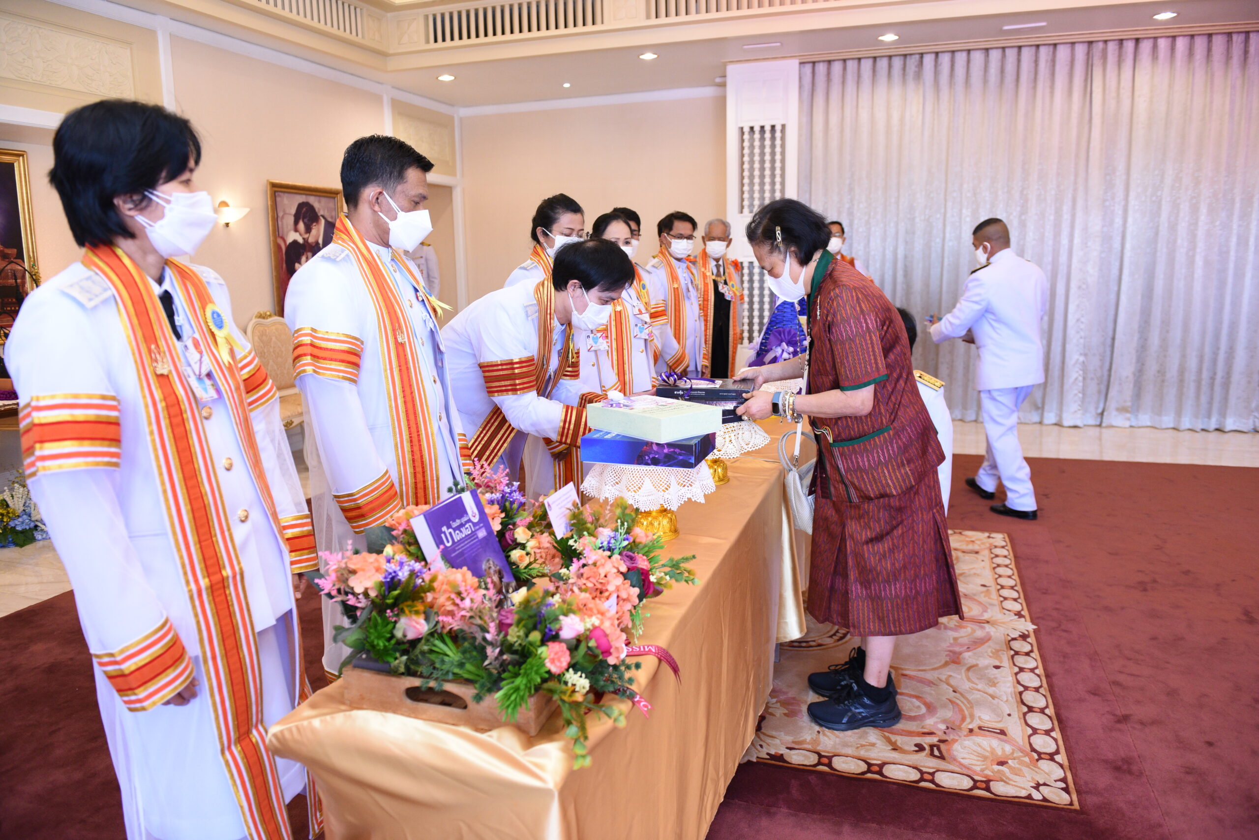 รศ.ดร.อรทัย เพียยุระ คณบดีมนุษยศาสตร์และสังคมศาสตร์ ทูลเกล้า ฯ ถวาย หนังสือเรื่อง ภาษาไทยสำหรับชาวต่างชาติ (THAI for FOREIGNERS) จำนวน 10 เล่ม และ หนังสือ THAI FOR BEGINNERS BASIC I) จำนวน 10 เล่ม