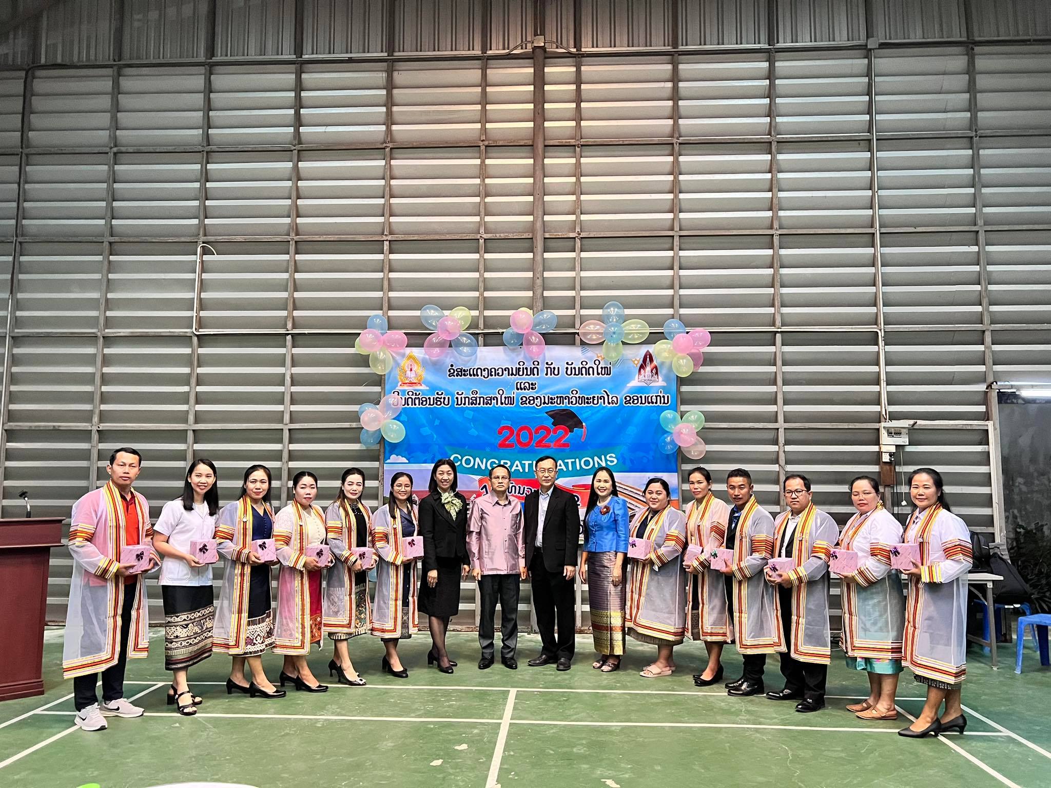 เมื่อวันที่ 16 ธันวาคม 2656 เวลา 18.00 น. ณ สถานกงสุลลาว ประจำจังหวัดขอนแก่น มหาวิทยาลัยขอนแก่น นำโดย รศ.นพ.ชาญชัย พานทองวิริยะกุล อธิการบดี มหาวิทยาลัยขอนแก่น รศ.ดร.อรทัย เพียยุระ คณบดีคณะมนุษยศาสตร์และสังคมศาตร์ พร้อมด้วย นางวิลาวัณย์ อังสุนันทวิวัฒน์ รักษาการแทนผู้อำนวยการกองการต่างประเทศ และนายอิศรา สุริยกุล ณ อยุธยา หัวหน้างานการต่างประเทศ ร่วมแสดงความยินดี แก่บัณฑิตสาธารณรัฐประชาธิปไตยประชาชนลาว (สปป. ลาว) ผู้สำเร็จการศึกษาจากมหาวิทยาลัยขอนแก่น ในงานนี้ รศ.นพ.ชาญชัย พานทองวิริยะกุล อธิการบดี มหาวิทยาลัยขอนแก่น ให้เกียรติกล่าว แสดงความยินดีแก่นักศึกษา สปป. ลาว และร่วมชื่นชมยินดีแก่ความสำเร็จ ทั้งนี้ บรรยากาศภายในงานเปี่ยมไปด้วยความภาคภูมิ และแสดงถึงความสัมพันธ์อันดีด้านการศึกษาระหว่าง 2 ประเทศ