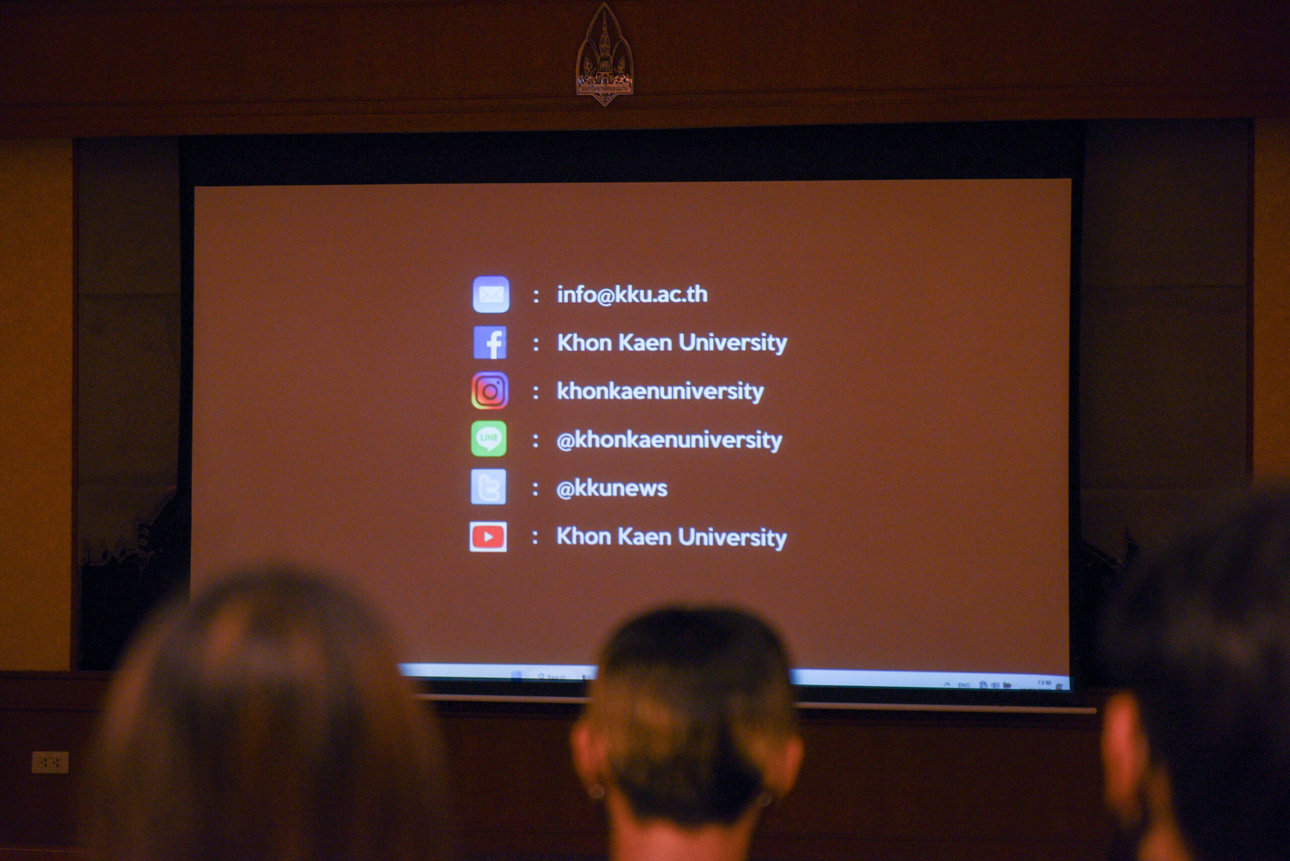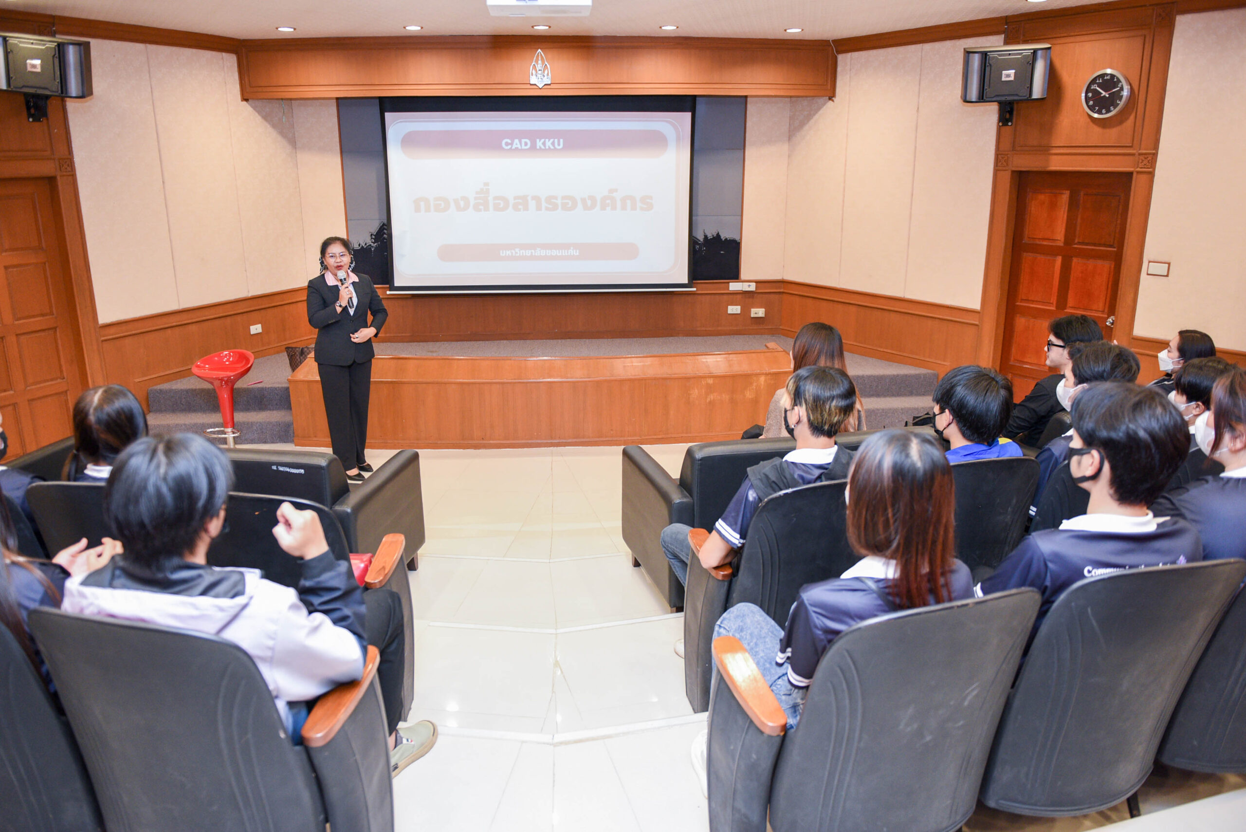 ภายในการศึกษาดูงานครังนี้ ได้มีการรับชมวิดีทัศน์แนะนำมหาวิทยาลัยขอนแก่น ต่อด้วย นางเบญจมาภรณ์ มามุข หัวหน้างานผลิตสื่อ รักษาการแทนผู้อำนวยการกองสื่อสารองค์กร กล่าวต้อนรับคณะศึกษาดูงาน พร้อมนำเสนอภารกิจต่างๆ ของงานผลิตสื่อ จากนั้น นางสาววัลยา ภูงาม หัวหน้างานกิจกรรมสัมพันธ์ นำเสนอภารกิจต่างๆ ของงานกิจกรรมสัมพันธ์ พร้อมแลกเปลี่ยนเรียนรู้ และตอบข้อซักถาม