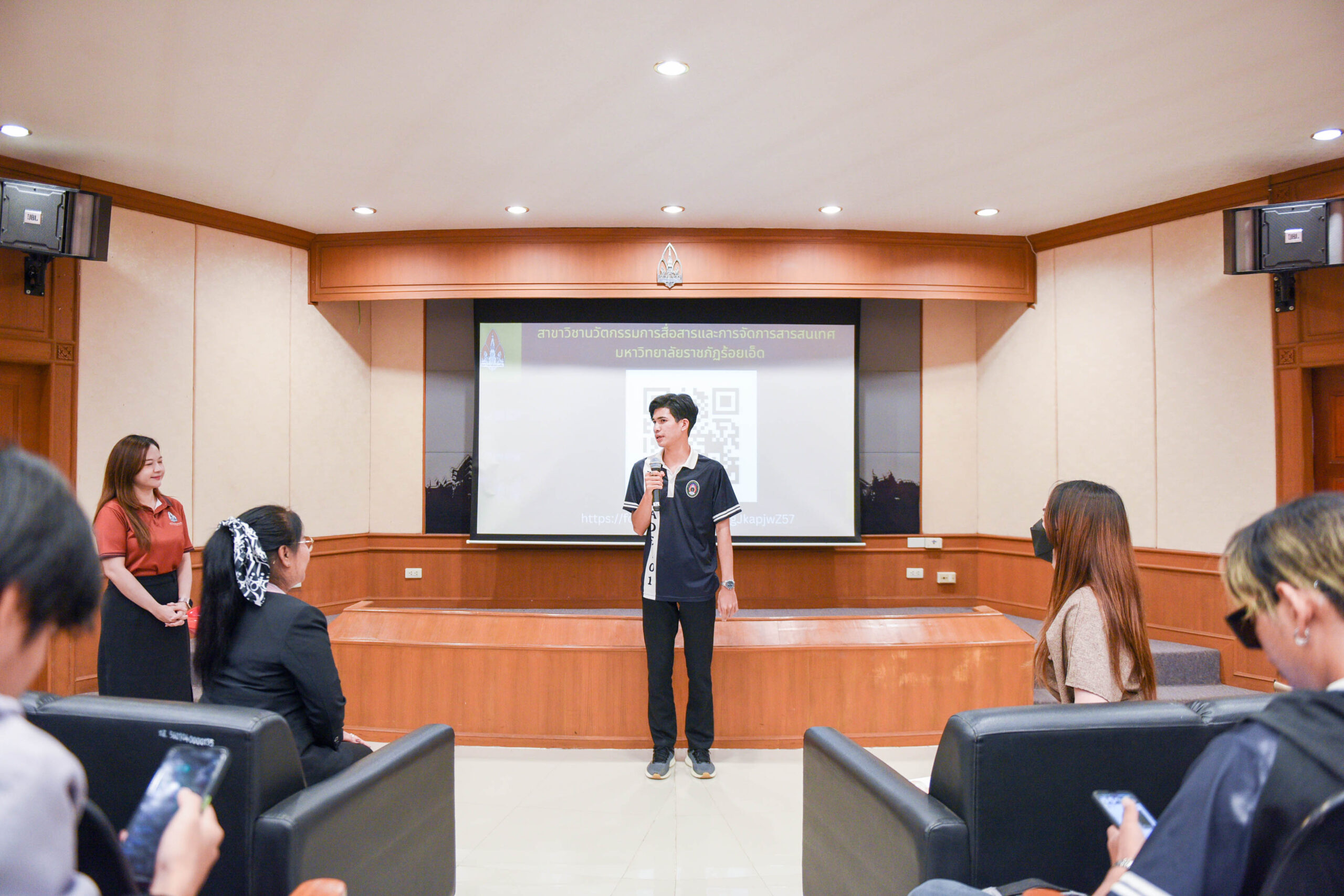 วันที่ 20 มีนาคม 2566 มหาวิทยาลัยขอนแก่น โดย นางเบญจมาภรณ์ มามุข หัวหน้างานผลิตสื่อ และ นางสาววัลยา ภูงาม หัวหน้างานกิจกรรมสัมพันธ์ พร้อมด้วยบุคลากรกองสื่อสารองค์กร ให้การต้อนรับอาจารย์ และนักศึกษา สาขาวิชานวัตกรรมการสื่อสารและการจัดการสารสนเทศ ภาควิชามนุษยศาสตร์ และสังคมศาสตร์ คณะศิลปศาสตร์และวิทยาศาสตร์ มหาวิทยาลัยราชภัฏร้อยเอ็ด ซึ่งนำโดย อาจารย์อรัญ อรัญมาตย์ อาจารย์ประจำหลักสูตรสาขาวิชานวัตกรรมการสื่อสารและการจัดการสารสนเทศ พร้อมด้วย อาจารย์และนักศึกษา กว่า 30 คน ณ ห้องประชุมกองสื่อสารฯ และ ห้องสตูดิโอ KKU Channel ชั้น 1 อาคารสิริคุณากร มหาวิทยาลัยขอนแก่น