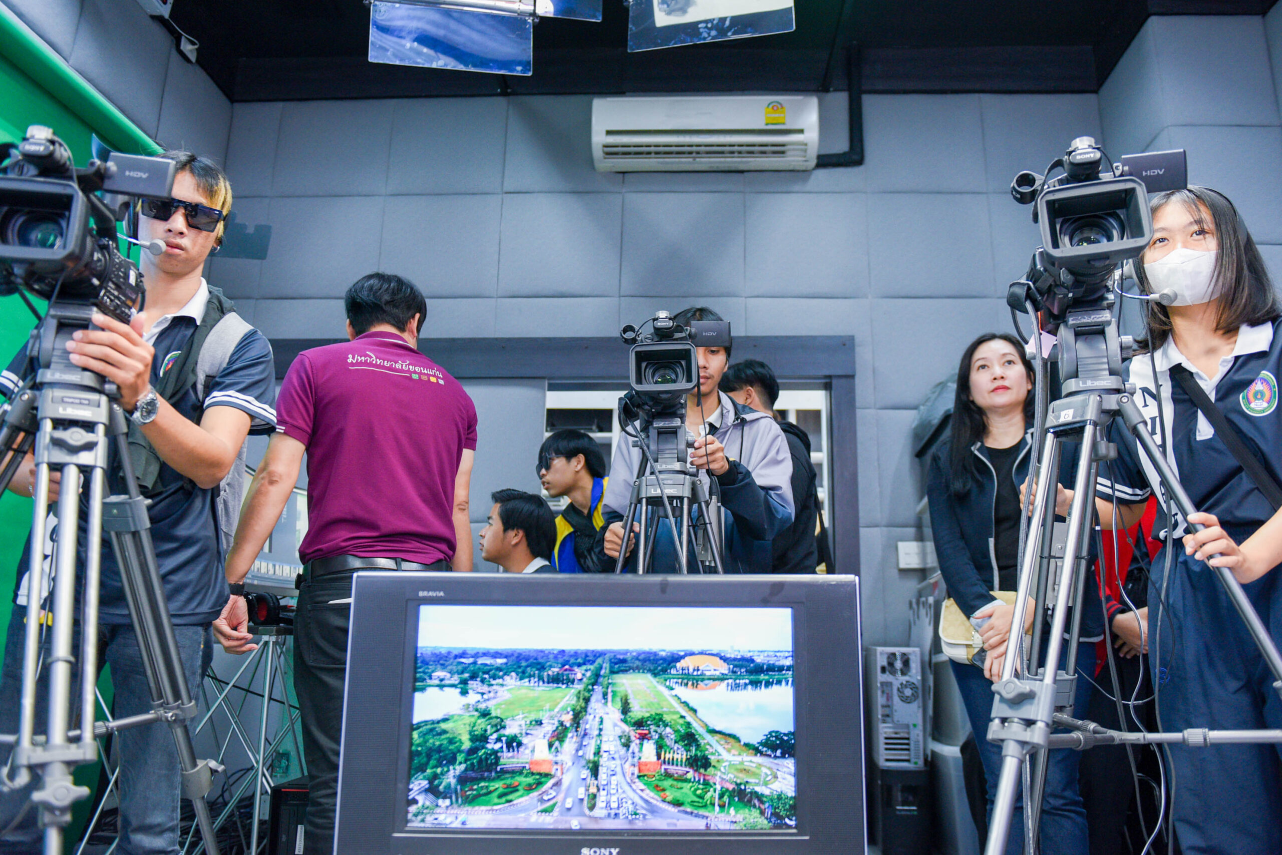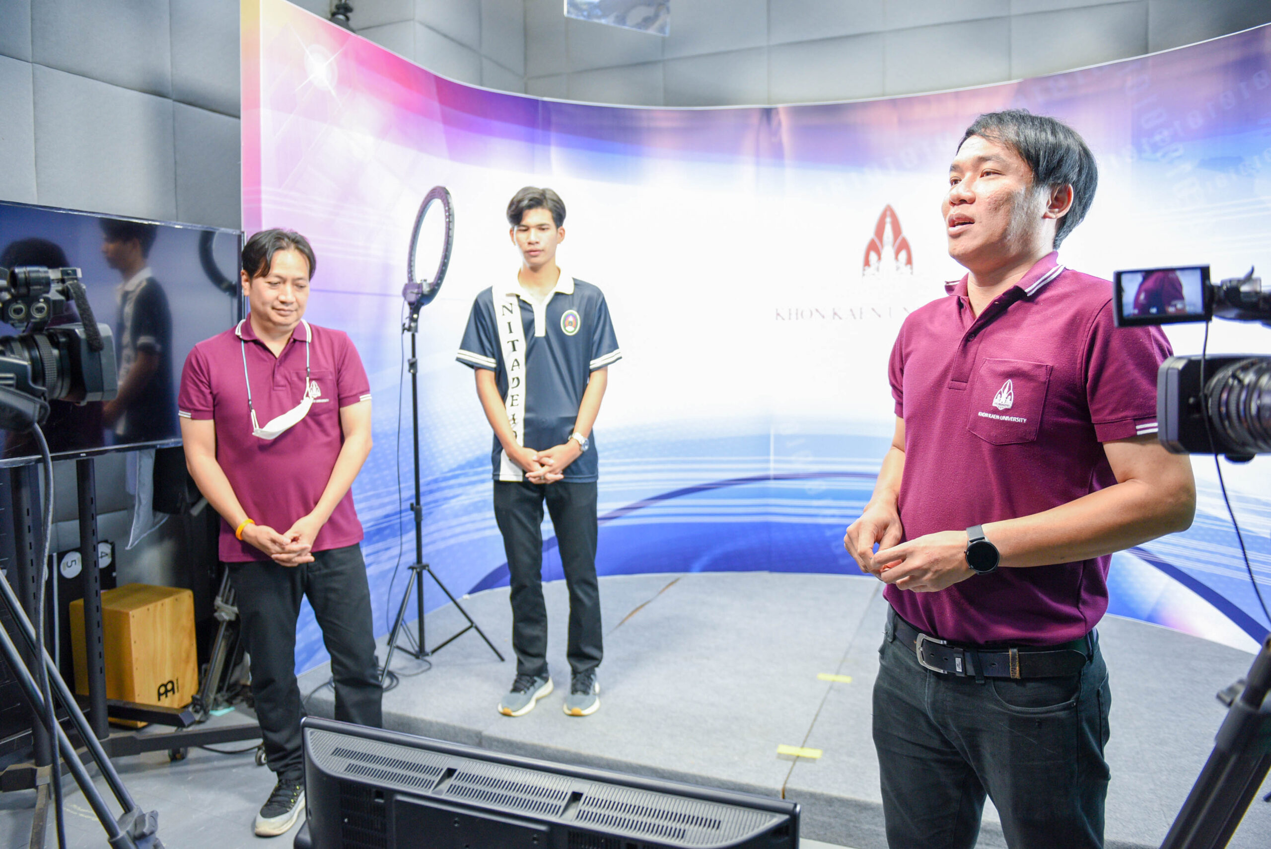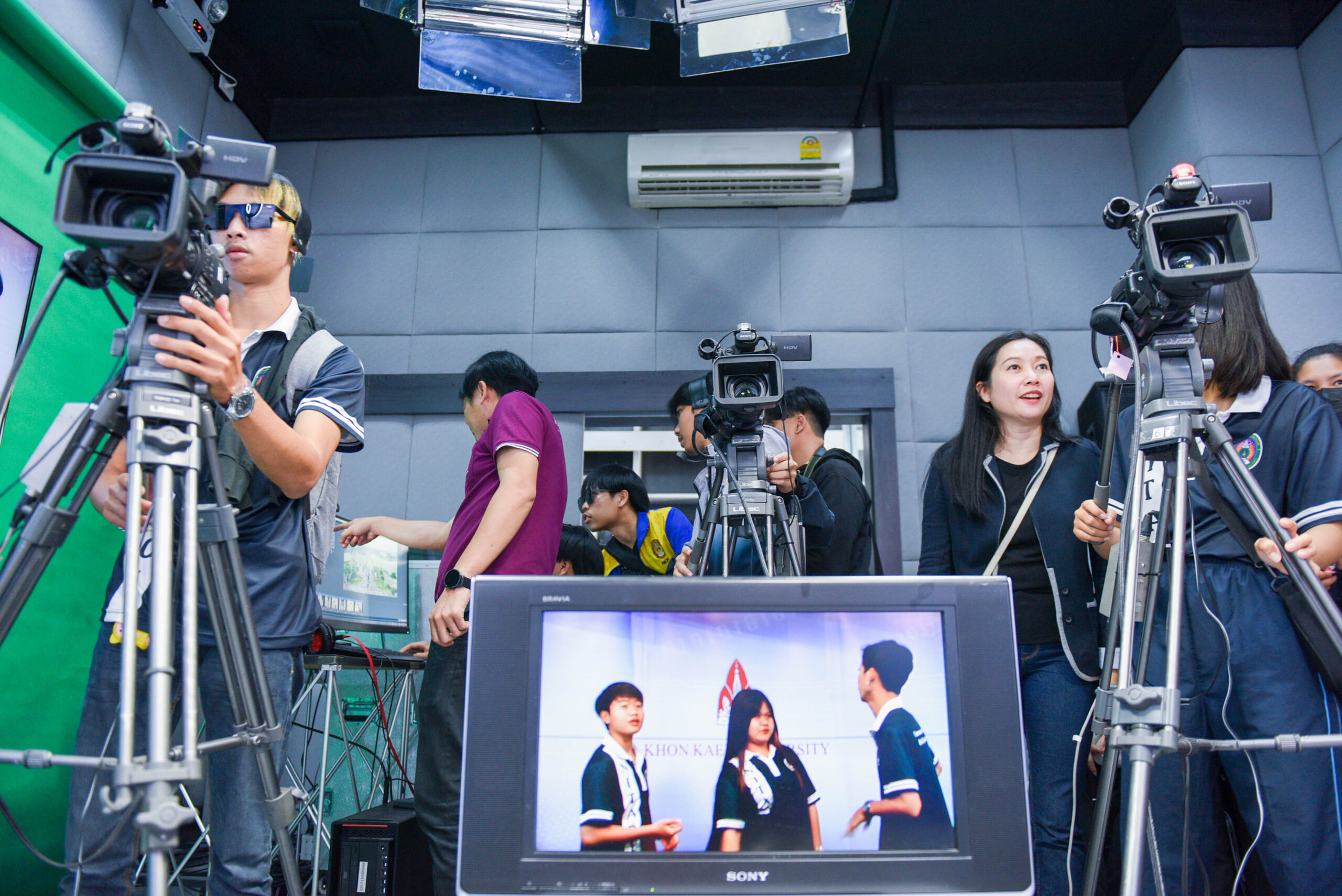 จากนั้น เป็นการเยี่ยมชมสตูดิโอ KKU Channel ชั้น 1 อาคารสิริคุณากร สำนักงานอธิการบดี พร้อมทั้งเรียนรู้การใช้งานอุปกรณ์ต่าง ๆ โดย นายณัฐพงษ์ ชำนาญเอื้อ นักวิชาการโสตทัศนศึกษา ชำนาญการ และนายชายชาญ หล้าดา  นักวิชาการโสตทัศนศึกษา ได้แนะนำเทคนิคกล้อง การถ่ายภาพวีดิทัศน์ ด้วยกล้องดิจิทัล  พร้อมแนะนำเทคนิคการใช้งานสวิทชิ่ง ในการสลับภาพ การถ่ายทำ รายการโทรทัศน์โดยใช้โลเคชั่นในสตูดิโอ