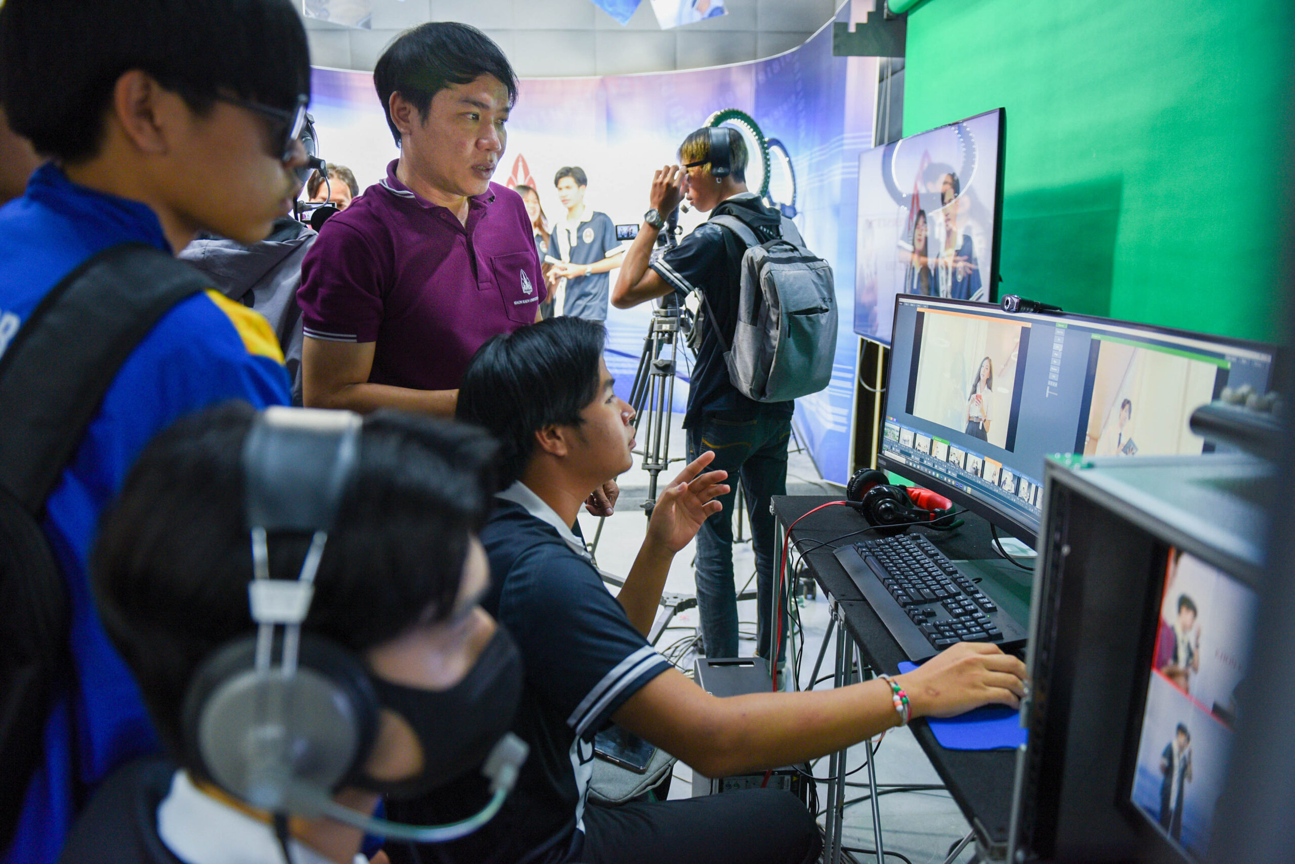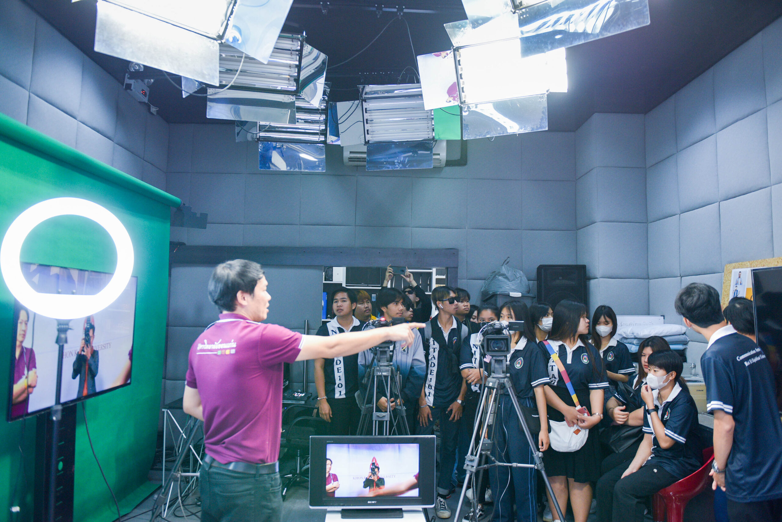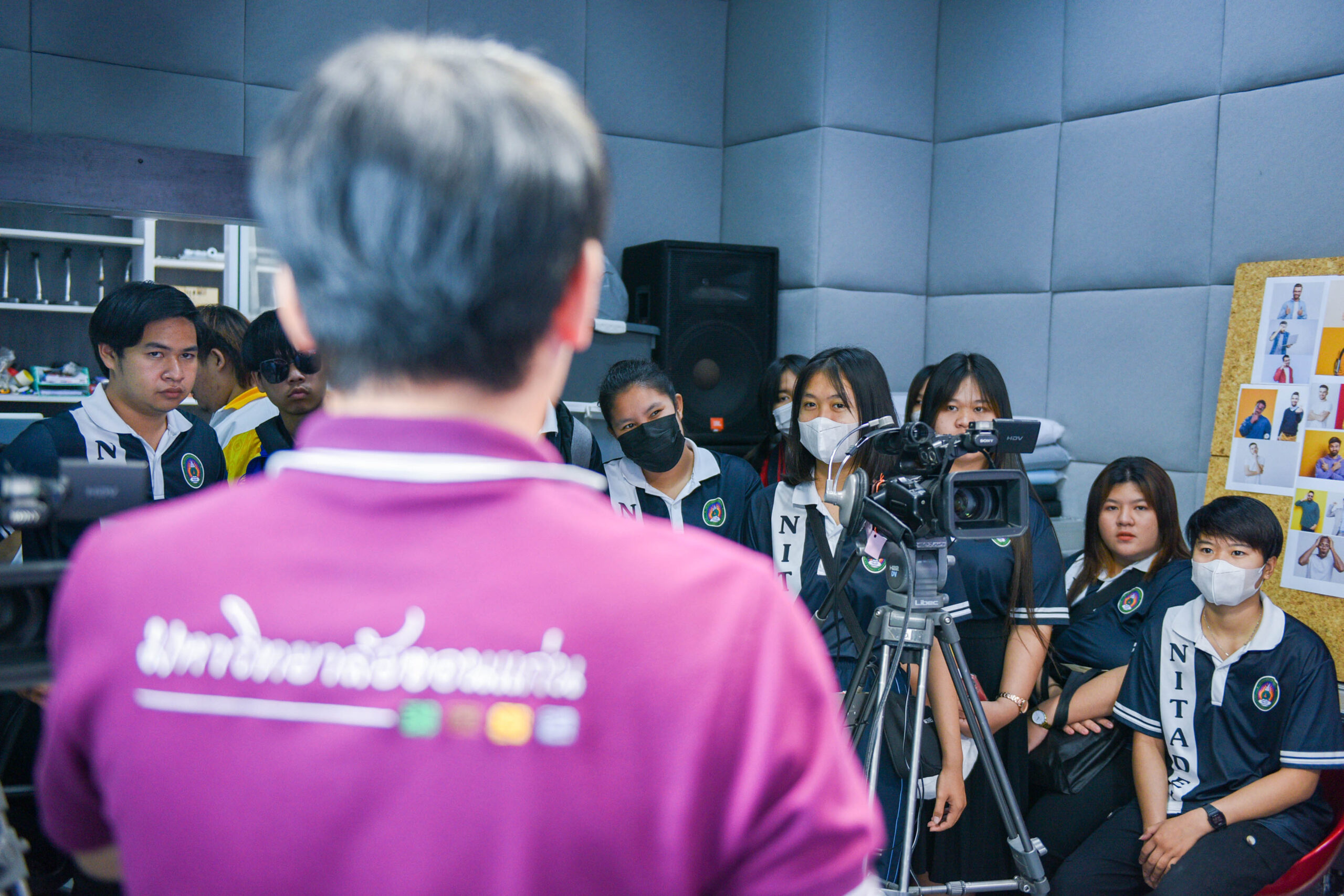 จากนั้น เป็นการเยี่ยมชมสตูดิโอ KKU Channel ชั้น 1 อาคารสิริคุณากร สำนักงานอธิการบดี พร้อมทั้งเรียนรู้การใช้งานอุปกรณ์ต่าง ๆ โดย นายณัฐพงษ์ ชำนาญเอื้อ นักวิชาการโสตทัศนศึกษา ชำนาญการ และนายชายชาญ หล้าดา  นักวิชาการโสตทัศนศึกษา ได้แนะนำเทคนิคกล้อง การถ่ายภาพวีดิทัศน์ ด้วยกล้องดิจิทัล  พร้อมแนะนำเทคนิคการใช้งานสวิทชิ่ง ในการสลับภาพ การถ่ายทำ รายการโทรทัศน์โดยใช้โลเคชั่นในสตูดิโอ