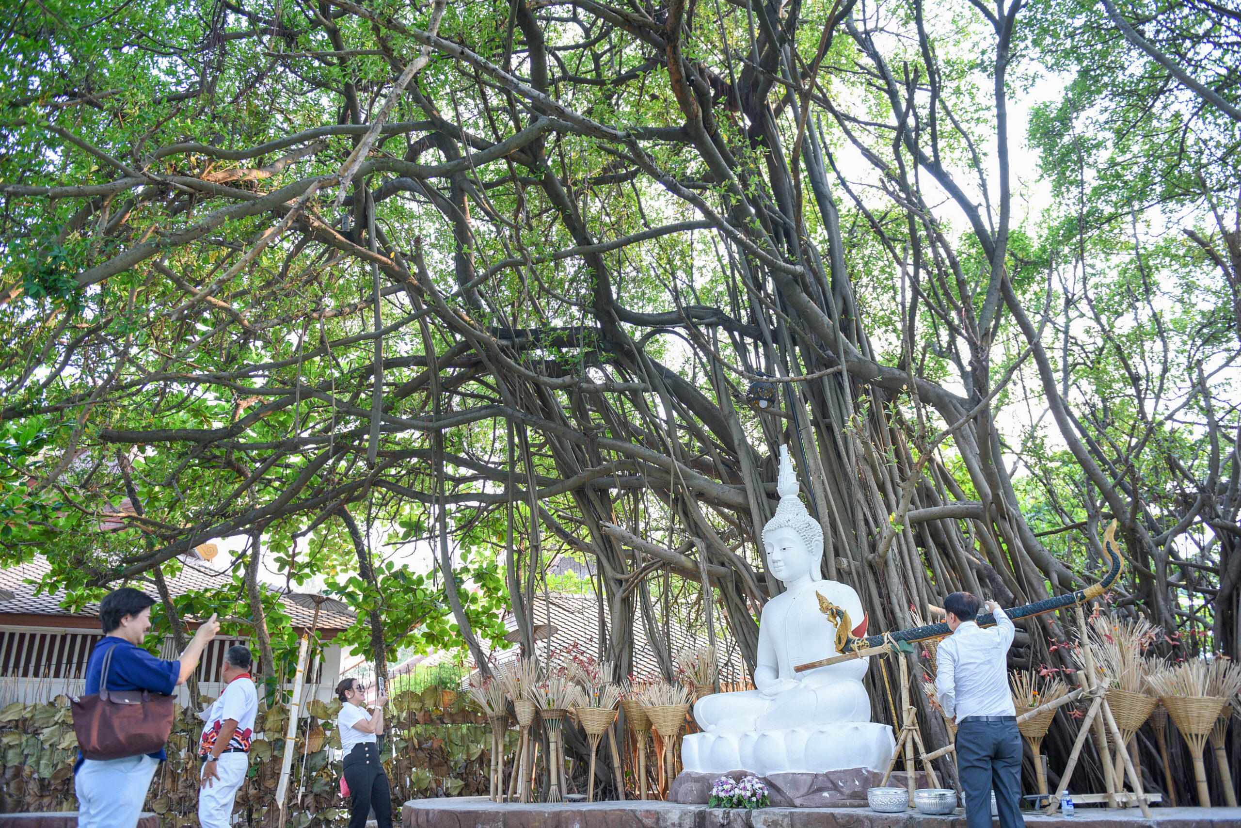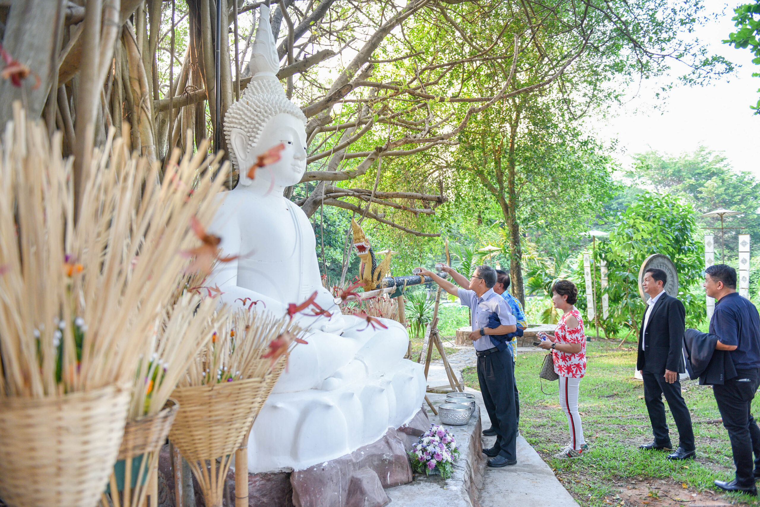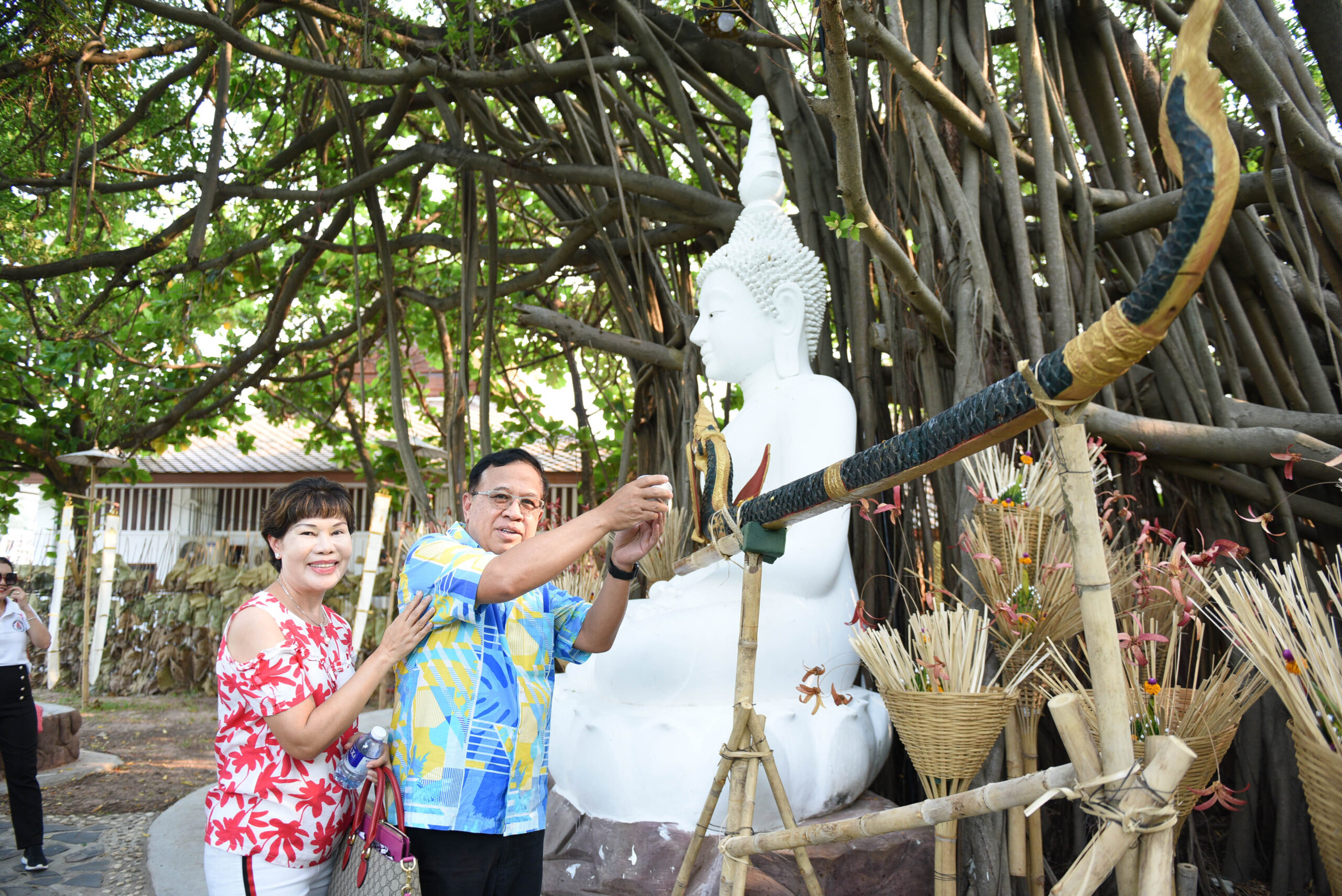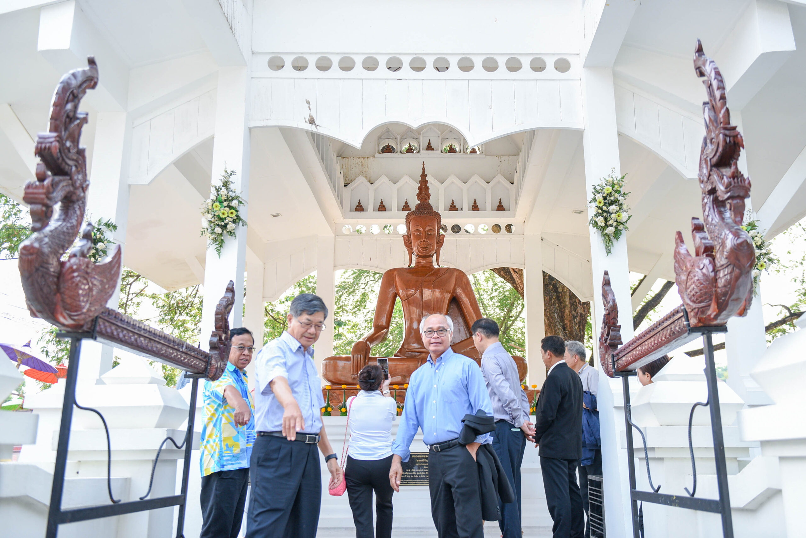 วันที่ 7 เมษายน 2566 คณะกรรมการส่งเสริมกิจการมหาวิทยาลัยขอนแก่น นำโดย นายสุกิจ ศิรินรกุล ประธานคณะกรรมการ เยี่ยมชมการบริหารจัดการพื้นที่มหาวิทยาลัย  Campus Tour ออกเดินทางโดย Shuttle Bus จำนวน 2 คัน เดินทางไปกราบสักการะหลวงพ่อพระศรี (พระไม้ที่ใหญ่ที่สุดในภาคตะวันออกเฉียงเหนือ) แหล่งเรียนรู้พิพิธภัณฑ์พุทธศิลป์ แหล่งรวบรวมพระไม้โบราณอีสาน โดยได้รับเกียรติจาก รศ.ดร.นิยม  วงศ์พงษ์คำ รองอธิการบดีฝ่ายศิลปวัฒนธรรมและเศรษฐกิจสร้างสรรค์ มหาวิทยาลัยขอนแก่น เป็นผู้บรรยายให้ความรู้ เกี่ยวกับพระไม้โบราณอีสาน ต่อด้วยการ “ฮดสรง” ขอพร หลวงพ่อไทรขาว ประดิษฐานบริเวณสวนไทร พุทธศิลป์สถาน (ริมบึงสีฐาน) ศูนย์ศิลปวัฒนธรรม มหาวิทยาลัยขอนแก่น