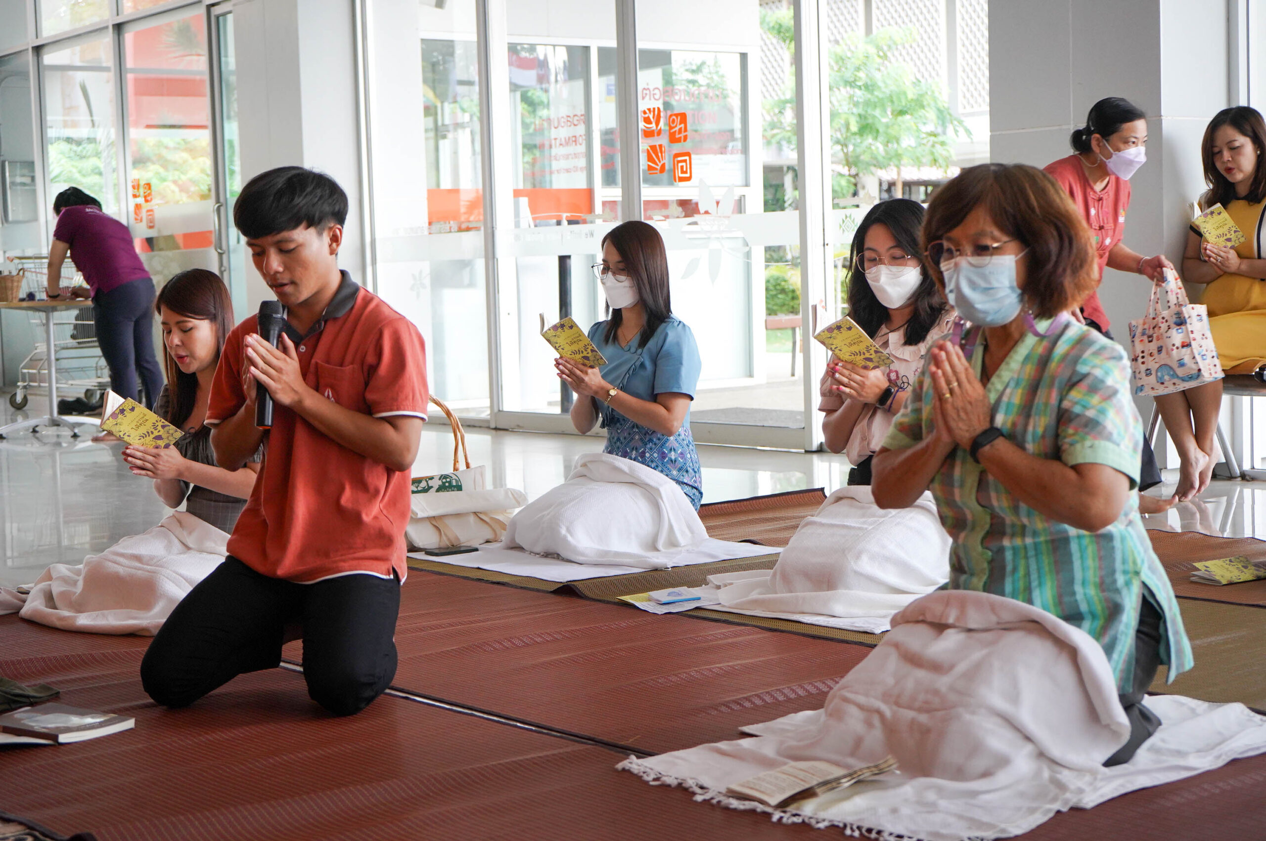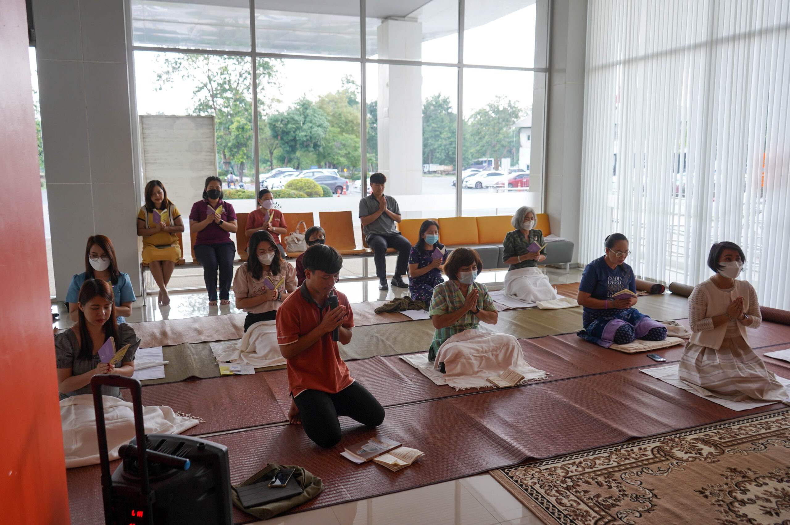 เมื่อวันที่ 3 พฤษภาคม 2566 ณ บริเวณห้องโถง ชั้น 1 อาคารสิริคุณากร สำนักงานอธิการบดี มหาวิทยาลัยขอนแก่น ฝ่ายกิจการพิเศษ ร่วมกับกองสื่อสารองค์กร มหาวิทยาลัยขอนแก่น จัดกิจกรรมสวดมนต์ทำวัตรเย็น นั่งสมาธิ ในโครงการส่งเสริมคุณธรรม จริยธรรม สำนักงานอธิการบดี มหาวิทยาลัยขอนแก่น ซึ่งได้รับเกียรติจาก อาจารย์ณัฐสมล ธนกุลรังสฤษดิ์ ผู้ช่วยอธิการบดีฝ่ายกิจการพิเศษ เป็นประธานสวดมนต์ทำวัตรเย็น โดยมี ดร. วิยะดา ปัญจรัก รองผู้อำนวยการคลังเลือดกลาง คณะแพทยศาสตร์ มหาวิทยาลัยขอนแก่น และบุคลากรภายใน มข.และประชาชนทั่วไป เข้าร่วมกิจกรรม ซึ่งภายหลังจากสวดมนต์ทำวัตรเย็น นั่งสมาธิ เสร็จสิ้นลง ได้มีการมอบ เหรียญพระ แก่ผู้โชคดี เพื่อนำไปบูชาเป็นสิริมงคล อีกด้วย