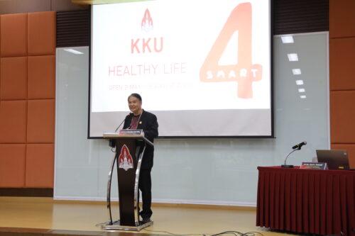 __________รศ.ดร.เกรียงไกร กิจเจริญ กล่าวในพิธีเปิดว่า “มหาวิทยาลัยขอนแก่น ได้ให้ความสำคัญในเรื่องสุขภาพของบุคลากรทุกระดับ เพื่อเป็นการกระตุ้นและส่งเสริมให้บุคลากรมีการออกกำลังกายเพื่อทำให้มีสุขภาพที่ดี จึงได้กำหนดให้จัดโครงการส่งเสริมการออกกำลังกายที่หลากหลายของบุคลากร (KKU healthy life 4) ซึ่งได้ดำเนินการมาอย่างต่อเนื่องตั้งแต่ปี 2563-ปัจจุบัน ซึ่งมีกิจกรรมการออกกำลังกายที่มีความหลากหลายของประเภทกีฬา สามารถออกกำลังกายได้เองที่บ้านหรือตามสถานที่ออกกำลังกายต่างๆ ถือว่าเป็นกิจกรรมที่ดีในการส่งเสริมให้บุคลากรได้หันมาใส่ใจดูแลสุขภาพของตนเองและยังสามารถสร้างสัมพันธ์ที่ดีให้บุคลากรได้ทำกิจกรรมร่วมกัน ขอบคุณ คณะแพทยศาสตร์ และกองการกีฬา ที่ได้เข้ามาเป็นส่วนร่วมสนับสนุนกิจกรรมต่างๆ ในวันนี้ ทั้งบูธด้านสุขภาพ โภชนาการ และการวัดสมรรถนะร่างกาย ตลอดจนการให้ความรู้ด้านสุขภาพให้กับผู้เข้าร่วมโครงการ”
