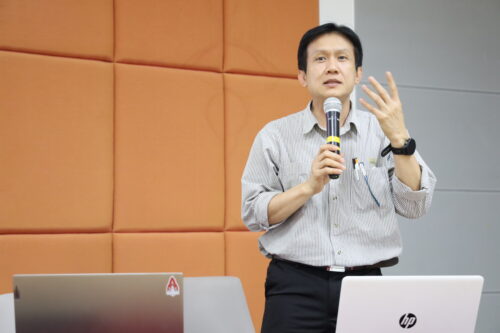 __________จากนั้น รศ.นพ. อำนาจ กิจควรดี อาจารย์แพทย์สาขาวิชาศัลยศาสตร์ คณะแพทยศาสตร์ มหาวิทยาลัยขอนแก่น ได้เป็นวิทยากร บรรยายในหัวข้อ “ความสุขอยู่ที่เราคิด สุขภาพฟิตๆ อยู่ที่เราสร้าง” โดยได้ให้คำแนะนำเกี่ยวกับการดูแลสุขภาพว่า การดูแลสุขภาพไม่ใช่แค่การออกกำลังกายเพียงอย่างเดียว แต่ควรที่จะดูแลในเรื่องของอาหารการกินและการพักผ่อนที่เพียงพอควบคู่กันไปด้วย ซึ่งส่วนนี้จะสามารถช่วยส่งเสริมให้ร่างกายของเรามีสุขภาพที่ดีได้ ต่อด้วยการบรรยาย ด้านการออกกำลังกาย เรื่อง “weight training” และวิธีการออกกำลังกายที่ถูกต้อง โดยทีมวิทยากร จากกองการกีฬา มหาวิทยาลัยขอนแก่น ประกอบด้วย นายทินรัตน์ สิงหเสนี และนายปิยะณัฐ เพชรก้อน นักพัฒนากีฬา สำหรับบูธด้านสุขภาพ และบูธด้านการโภชนาการ มีบุคลากรทางการแพทย์ คณะแพทยศาสตร์ ได้นำเครื่องมือสำหรรับตรวจประเมินภาวะสุขภาพของผู้เข้าร่วมโครงการพร้อมให้คำแนะนำการปฏิบัติตัวเพื่อลดความเสี่ยงและป้องกันการเกิดโรคเส้นเลือดหัวใจและหลอดเลือด การควบคุมความดันโลหิตให้อยู่ในเกณฑ์ปกติ รวมทั้งการออกกำลังกายที่ส่งผลต่อสุขภาพร่างกาย