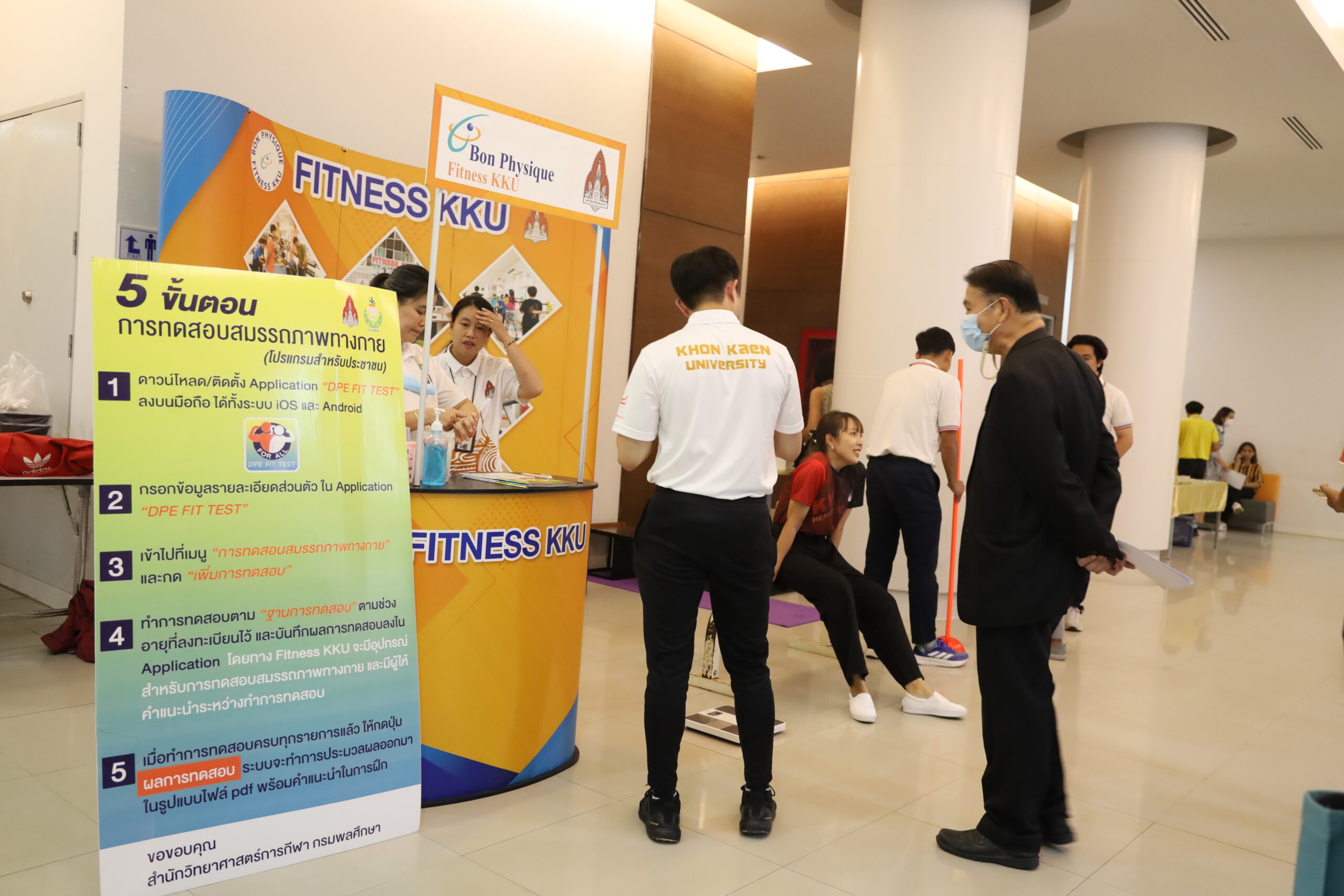 __________จากนั้น รศ.นพ. อำนาจ กิจควรดี อาจารย์แพทย์สาขาวิชาศัลยศาสตร์ คณะแพทยศาสตร์ มหาวิทยาลัยขอนแก่น ได้เป็นวิทยากร บรรยายในหัวข้อ “ความสุขอยู่ที่เราคิด สุขภาพฟิตๆ อยู่ที่เราสร้าง” โดยได้ให้คำแนะนำเกี่ยวกับการดูแลสุขภาพว่า การดูแลสุขภาพไม่ใช่แค่การออกกำลังกายเพียงอย่างเดียว แต่ควรที่จะดูแลในเรื่องของอาหารการกินและการพักผ่อนที่เพียงพอควบคู่กันไปด้วย ซึ่งส่วนนี้จะสามารถช่วยส่งเสริมให้ร่างกายของเรามีสุขภาพที่ดีได้ ต่อด้วยการบรรยาย ด้านการออกกำลังกาย เรื่อง “weight training” และวิธีการออกกำลังกายที่ถูกต้อง โดยทีมวิทยากร จากกองการกีฬา มหาวิทยาลัยขอนแก่น ประกอบด้วย นายทินรัตน์ สิงหเสนี และนายปิยะณัฐ เพชรก้อน นักพัฒนากีฬา สำหรับบูธด้านสุขภาพ และบูธด้านการโภชนาการ มีบุคลากรทางการแพทย์ คณะแพทยศาสตร์ ได้นำเครื่องมือสำหรรับตรวจประเมินภาวะสุขภาพของผู้เข้าร่วมโครงการพร้อมให้คำแนะนำการปฏิบัติตัวเพื่อลดความเสี่ยงและป้องกันการเกิดโรคเส้นเลือดหัวใจและหลอดเลือด การควบคุมความดันโลหิตให้อยู่ในเกณฑ์ปกติ รวมทั้งการออกกำลังกายที่ส่งผลต่อสุขภาพร่างกาย