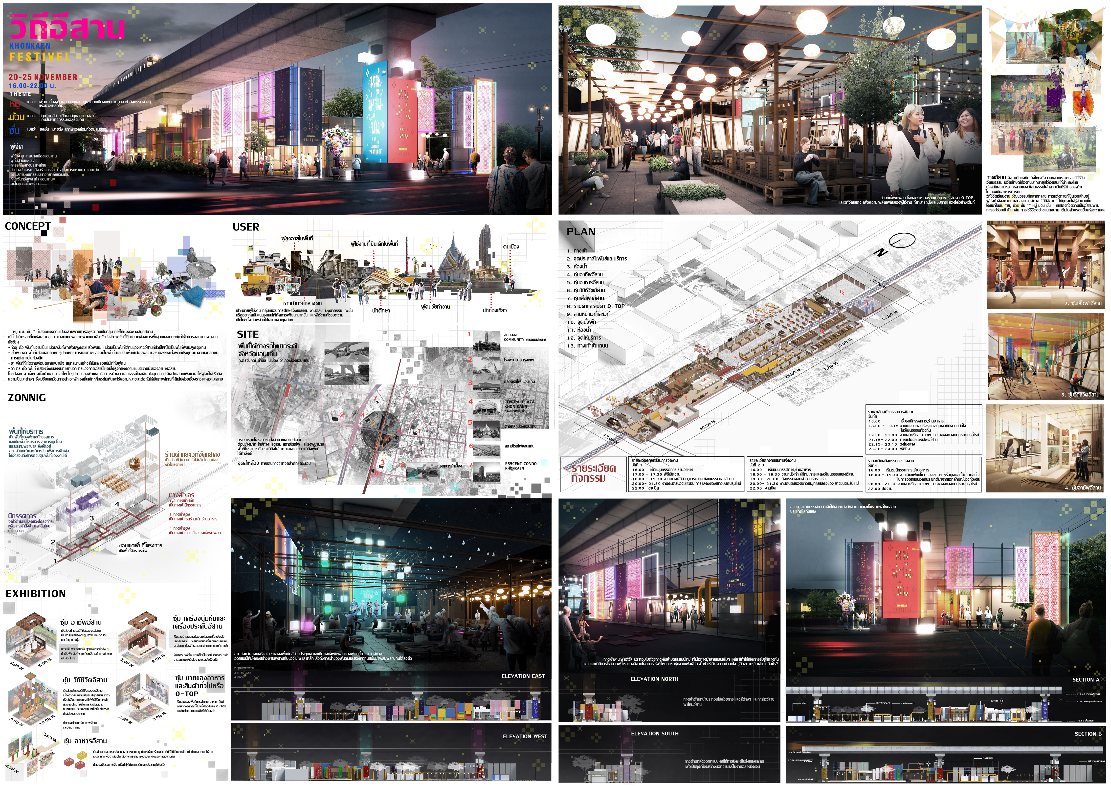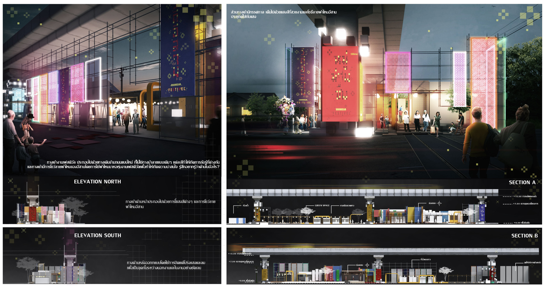 นายชญานนท์ ชิณวงค์ ตัวแทนกลุ่มผู้เข้าประกวดได้ให้สัมภาษณ์ว่า จากโจทย์ของงานประกวดที่กำหนดมาตนและเพื่อนๆ ได้นึกถึงงานเทศกาลต่าง ๆ ที่มีประจำทุกปี เช่น เทศกาลสงกรานต์ เทศกาลลอยกระทง หรือแม้กระทั้งเทศกาลของแต่ละภูมิภาค เราจึงมีความสนใจที่อยากสร้างสรรค์งานเทศกาลที่เป็นเอกลักษณ์ของแต่ละพื้นที่นั้น ๆ เพื่อเป็นตัวเล่าเรื่องราว เปิดมุมมองให้เป็นที่ประจักษ์แก่ผู้คนมากขึ้น โดยเลือกพื้นที่ชุมชนที่มีรายได้ต่ำใกล้ย่านเศรษฐกิจของเมือง จากความไม่สัมพันธ์กับเมืองที่พัฒนาขึ้นทุกวัน เราจึงเลือกพื้นที่รกร้างใต้ทางรถไฟยกระดับติดกับชุมชนที่มีรายได้น้อยเพื่อที่จะได้พัฒนาคุณภาพชีวิตความเป็นอยู่ให้ดีขึ้น โดยนำผู้คนเข้ามามีส่วนร่วมในการจัดงานเทศกาลเพื่อเป็นพื้นที่แสดงศักยภาพของคนในชุมชน