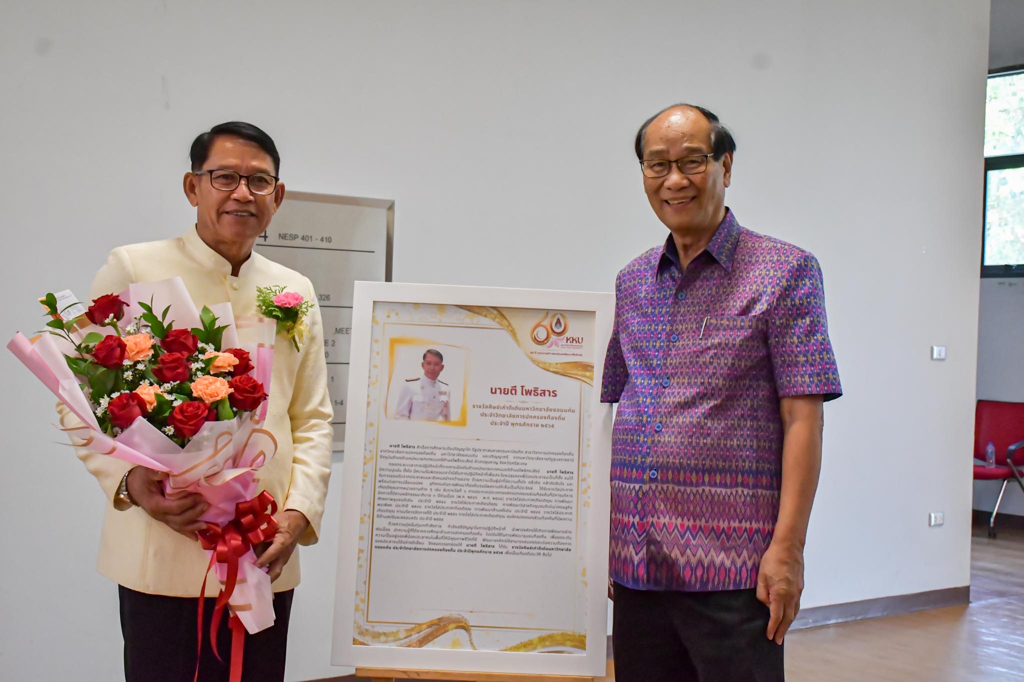 วิทยาลัยการปกครองท้องถิ่น ร่วมชื่นชมและยินดีกับศิษย์เก่า COLA KKU นายตี โพธิสาร ศิษย์เก่าวิทยาลัยการปกครองท้องถิ่น ปัจจุบันดำรงตำแหน่ง นายกเทศมนตรีตำบลโพธิ์กระสังข์ เทศบาลตำบลโพธิ์กระสังข์ อ.ขุนหาญ จ.ศรีสะเกษ ในโอกาสได้รับรางวัล “ศิษย์เก่าดีเด่น มหาวิทยาลัยขอนแก่น ประจำคณะ/วิทยาลัย ประจำปี พ.ศ. 2565”