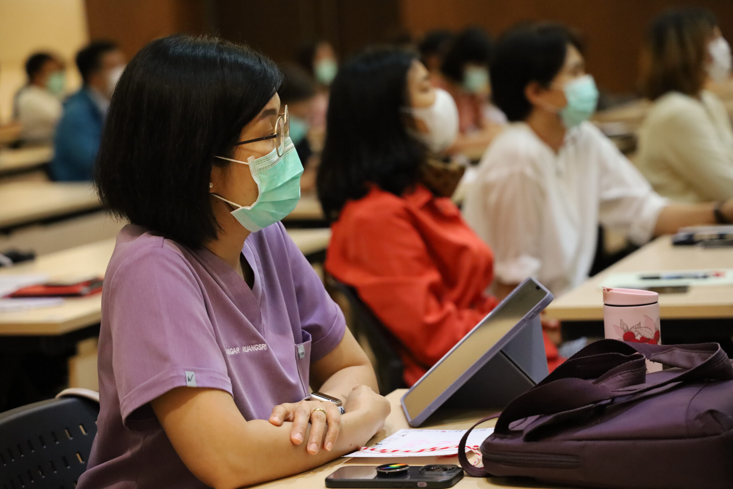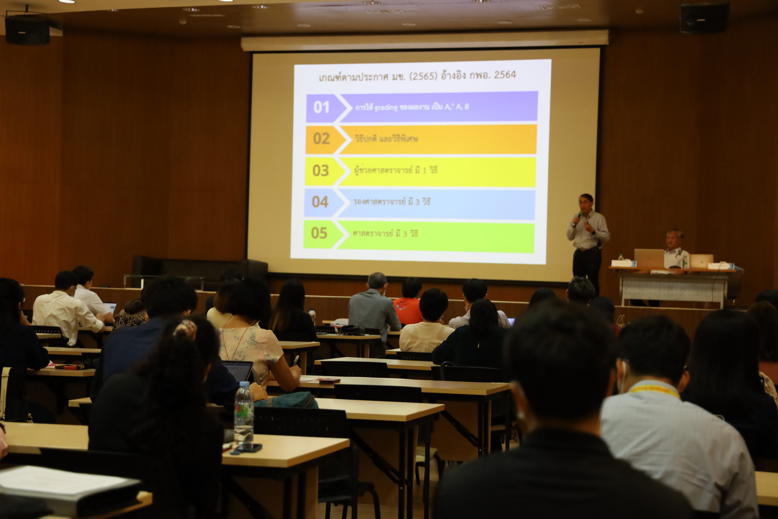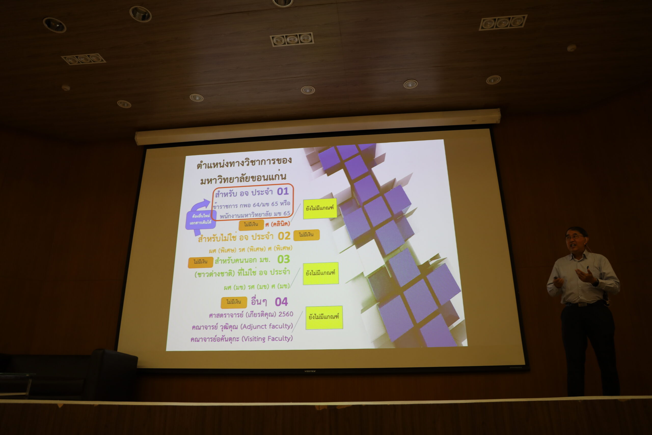สำหรับปีนี้ โครงการพัฒนาบุคลากรสายวิชาการเพื่อเข้าสู่ตําแหน่งทางวิชาการ ได้จัดกิจกรรมเป็น 2 ส่วน ส่วนที่ 1 เป็นการให้ความรู้ เกณฑ์การยื่นขอตำแหน่งทางวิชาการ และการสร้างแรงบันดาลใจ ซึ่งจัดขึ้นในวันนี้ ในรูปแบบ Onsite และ Online (Live สด ผ่านทาง Facebook กลุ่มค่ายวิชาการฯ ผศ.รศ.-มข.) ประกอบด้วยการแนะนำข้อมูลเจาะลึกเกณฑ์การประเมินผลการสอน เกณฑ์การยื่นขอตำแหน่งทางวิชาการ และเกณฑ์การยื่นขอตาแหน่งทางวิชาการ โดยวิทยากรผู้เชี่ยวชาญ ซึ่งมีคณาจารย์เข้าร่วมโครงการถึง 120 คน