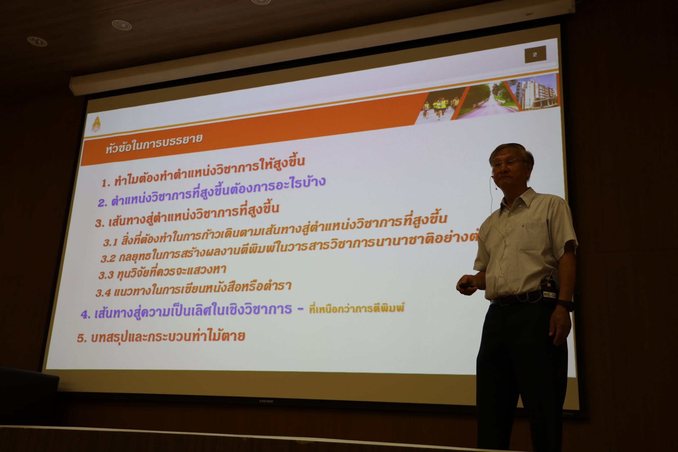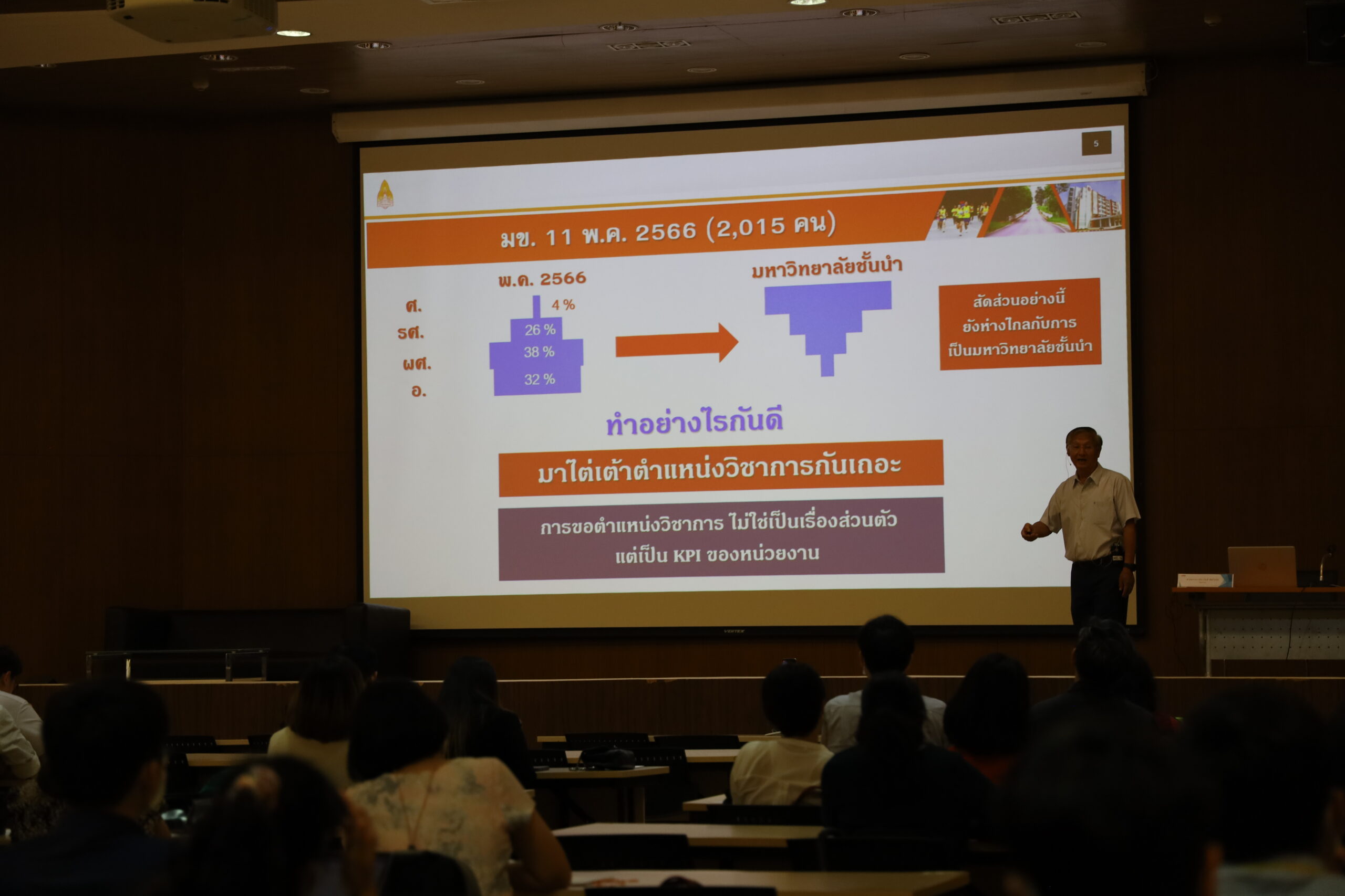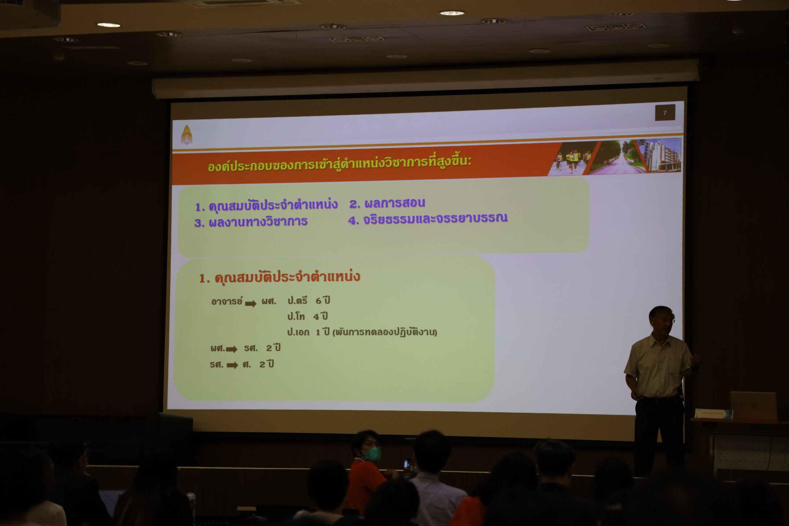 “โครงการพัฒนาบุคลากรสายวิชาการเพื่อเข้าสู่ตำแหน่งทางวิชาการ จัดขึ้นเพื่อสร้างแรงบันดาลใจ และให้ข้อมูลเกี่ยวกับประกาศ หลักเกณฑ์ต่าง ๆ ที่เป็นปัจจุบัน รวมถึงการส่งเสริมความรู้ด้านการขอรับพิจารณาจริยธรรมการวิจัยในมนุษย์กับการขอตําแหน่งทางวิชาการ เพื่อเตรียมความพร้อมในการวางแผนเสนอขอกําหนดตําแหน่งทางวิชาการ”