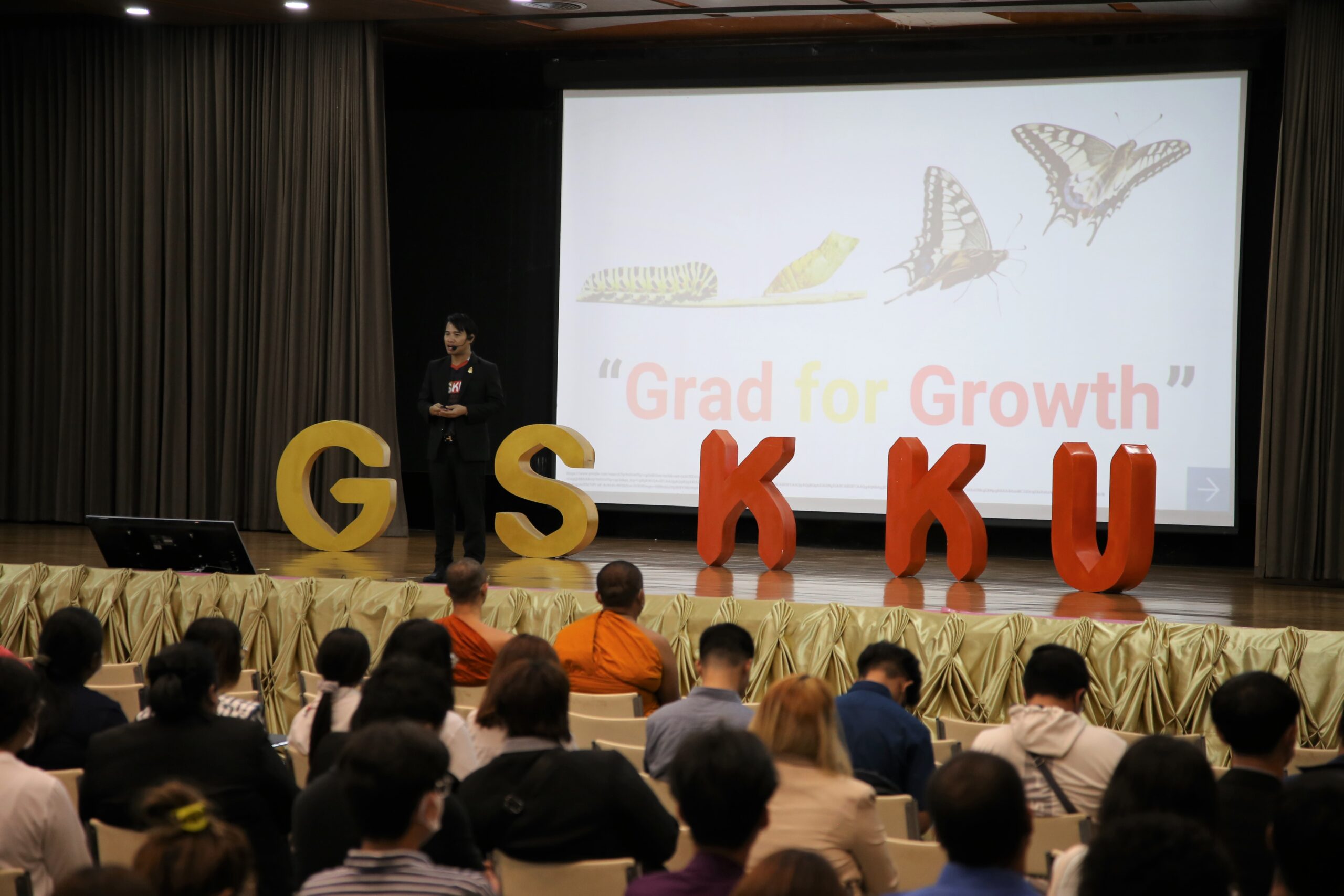 ยินดีต้อนรับนักศึกษาใหม่ระดับบัณฑิตศึกษา บัณฑิตวิทยาลัย มหาวิทยาลัยขอนแก่น จัดงานปฐมนิเทศนักศึกษาใหม่ ระดับบัณฑิตศึกษา ประจำภาคต้น ปีการศึกษา 2566 วันจันทร์ที่ 12 มิถุนายน 2566 เวลา 09.30-11.00 น. ณ ห้องประชุมสายสุรี จุติกุล คณะศึกษาศาสตร์ มหาวิทยาลัยขอนแก่น เพื่อให้นักศึกษาทราบข้อมูลเบื้องต้นเกี่ยวกับการศึกษาในระดับบัณฑิตศึกษา และทราบแนวทางปฏิบัติของบัณฑิตวิทยาลัย โดย รศ.ดร.เกียรติไชย ฟักศรี คณบดีบัณฑิตวิทยาลัย กล่าวต้อนรับนักศึกษาใหม่ และรศ.ดร.ไมตรี อินทร์ประสิทธิ์ รองอธิการบดีฝ่ายการศึกษาและบริการวิชาการ ตัวแทนอธิการบดีมหาวิทยาลัยขอนแก่น ให้เกียรติเป็นประธานกล่าวต้อนรับและเปิดการปฐมนิเทศนักศึกษาใหม่ จากนั้นเป็น GS Talk: โดย ดร.ชวลิต กงเพชร ศิษย์เก่าปริญญาเอก การพัฒนาสุขภาพชุมชน คณะแพทยศาสตร์ มหาวิทยาลัยขอนแก่น ดร.นันทิตา รักษาชาติ ศิษย์เก่าดีเด่นระดับบัณฑิตศึกษา ประจำปี 2566 ด้านอุทิศเพื่อสังคม ศิษย์เก่าปริญญาเอก สาขาสหวิทยาการสัตวแพทย์ คณะสัตวแพทยศาสตร์ ดำเนินรายการโดย คุณฐิติมา ด่านวิบูลย์ ศิษย์เก่าปริญญาโท หลักสูตรวิทยาศาสตร์ความงามและสุขภาพ คณะเภสัชศาสตร์ ในภาคต้น ปีการศึกษา 2566 นี้ มีผู้สมัครเข้ามาศึกษาต่อระดับบัณฑิตศึกษา จำนวน 1,345 คน และมีนักศึกษาที่ผ่านการคัดเลือกเข้าศึกษาหลักสูตรระดับบัณฑิตศึกษา จำนวนรวม 958 คน เป็นนักศึกษาระดับปริญญาเอก จำนวน 120 คน นักศึกษาระดับประกาศนียบัตรบัณฑิตชั้นสูง จำนวน 12 คน นักศึกษาระดับปริญญาโท จำนวน 826 คน โดยในจำนวนนี้ มีนักศึกษาต่างชาติ จำนวน 136 คน จากสาธารณรัฐแห่งสหภาพเมียนมา สาธารณรัฐสังคมนิยมเวียดนาม สาธารณรัฐอินโดนีเซีย ราชอาณาจักรกัมพูชา สาธารณรัฐประชาชนจีน สาธารณรัฐฟิลิปปินส์ สาธารณรัฐประชาธิปไตยประชาชนลาว ออสเตรเลีย สาธารณรัฐอิสลามปากีสถาน สาธารณรัฐประชาชนบังกลาเทศ สหพันธ์สาธารณรัฐไนจีเรีย สาธารณรัฐอินเดีย สหรัฐอเมริกา สาธารณรัฐฝรั่งเศส สาธารณรัฐอาหรับซีเรีย ราชอาณาจักรภูฏาน