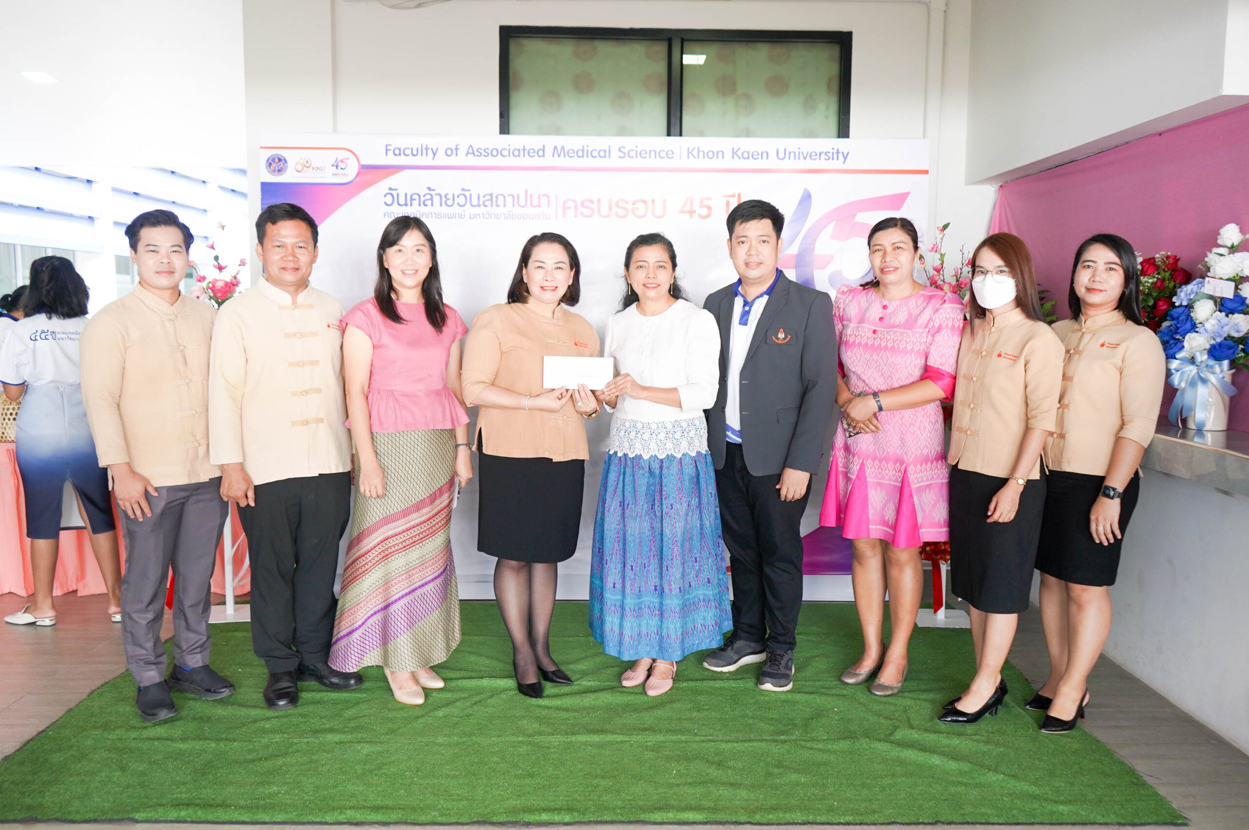 วันที่ 14 กรกฎาคม 2566 เวลา 09.30 น. รศ.นพ.ชาญชัย พานทองวิริยะกุล อธิการบดีมหาวิทยาลัยขอนแก่น อาจารย์ณัฐสมล ธนกุลรังสฤษดิ์ ผู้ช่วยอธิการบดีฝ่ายกิจการพิเศษ ผศ.ดร.อัจฉราวรรณ โตภาคงาม ผู้ช่วยอธิการบดีฝ่ายการต่างประเทศ นายชุมพร พารา ผู้อำนวยการกองสื่อสารองค์กร และบุคลากรสำนักงานอธิการบดี มหาวิทยาลัยขอนแก่น ร่วมกิจกรรม วาระครบรอบ 45 ปี วันคล้ายวันสถาปนา คณะเทคนิคการแพทย์ มหาวิทยาลัยขอนแก่น โดยมี รศ.ดร.จุรีรัตน์ ดาดวง คณบดีคณะเทคนิคการแพทย์ ให้การต้อนรับ ณ บริเวณอาคารสถานบริการสุขภาพเทคนิคการแพทย์ และกายภาพบำบัด อาคาร 1 คณะเทคนิคการแพทย์