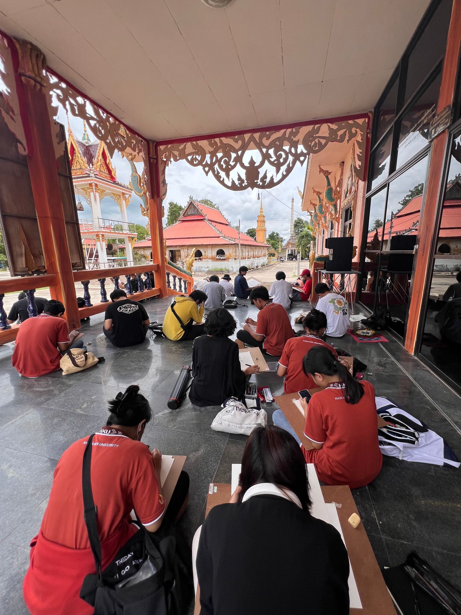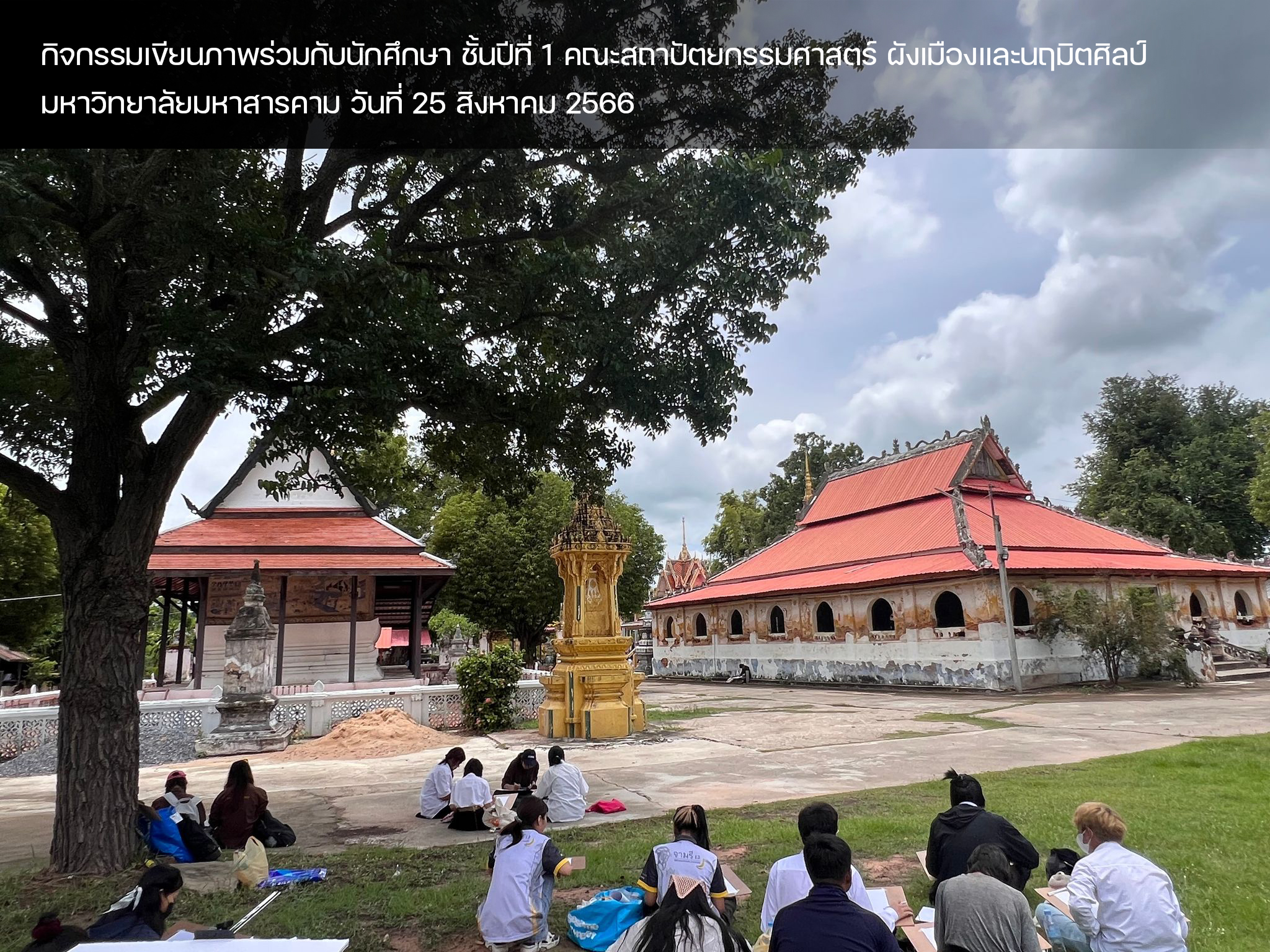 วันศุกร์ที่ 25 สิงหาคม 2566 เป็นกิจกรรมเขียนภาพร่วมกับนักศึกษา ชั้นปีที่ 1 คณะสถาปัตยกรรมศาสตร์ ผังเมืองและนฤมิตศิลป์ มหาวิทยาลัยมหาสารคาม จำนวน 195 คน โดยมี อ.ธเนศ ฉัตรจุฑามณี ดูแล โดยมีกิจกรรม ชมและเขียนลายเส้นดินสอวัดป่าเลไลย์และ เขียนลายเส้นปากกา วัดโพธาราม ตำบลดงบัง และ เขียนสีน้ำพระธาตุนาดูน จ.มหาสารคาม