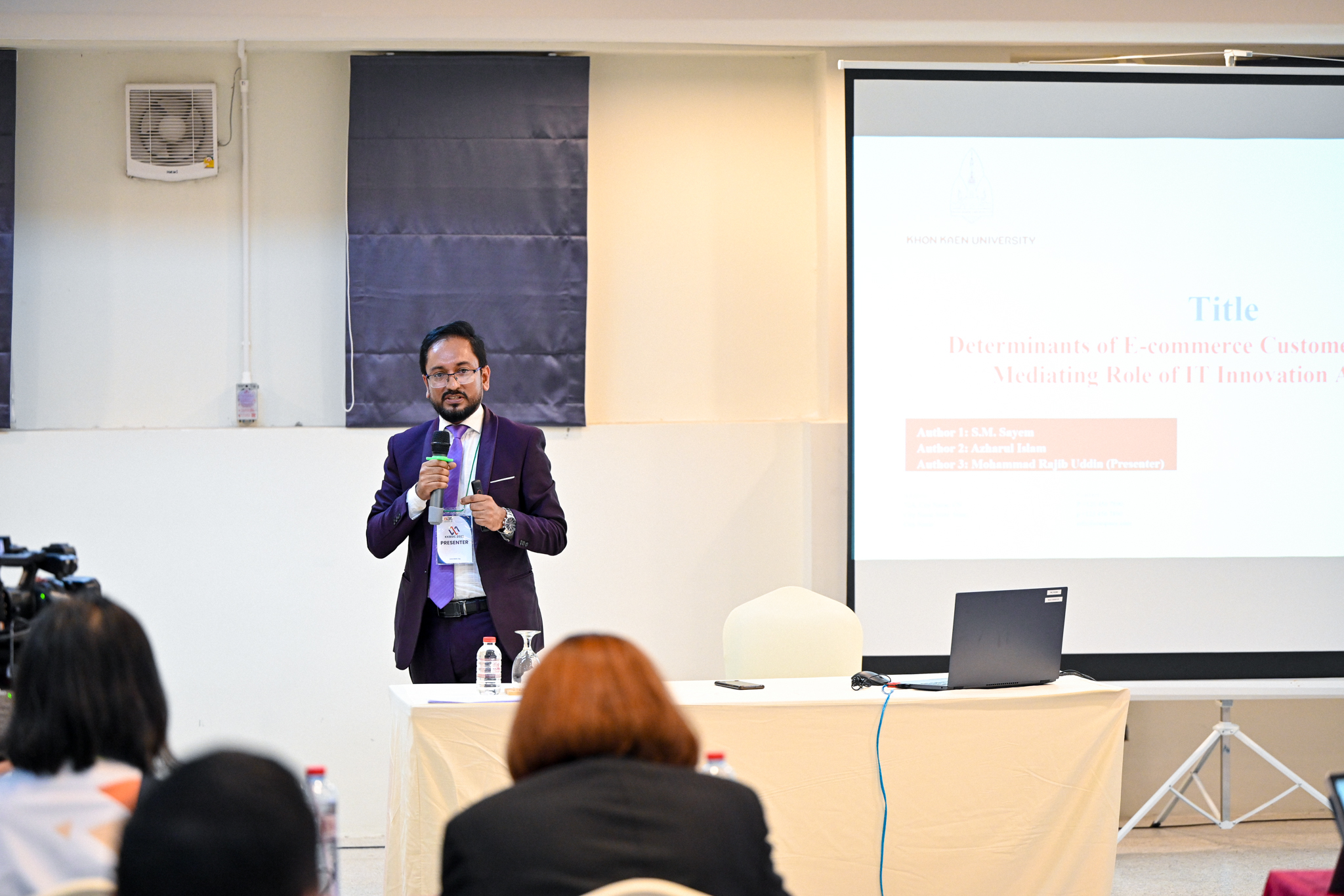 ภายในงานเริ่มต้นด้วย รองศาสตราจารย์ ดร.เพ็ญศรี เจริญวานิช คณบดีคณะบริหารธุรกิจและการบัญชี ประธานในพิธี กล่าวเปิดงานและกล่าวต้อนรับผู้เข้าร่วมการประชุม พร้อมกันนี้การประชุมวิชาการฯครั้งนี้ยังรับเกียรติจาก ดร.ก่อศักดิ์ โตวรรธกวณิชย์ ผู้จัดการส่วนธุรกิจใหม่และนวัตกรรม ศูนย์ธุรกิจต่างประเทศ บริษัท ปตท. โกลบอล เคมิคอล จำกัด (มหาชน) เป็นองค์ปาฐกพิเศษ ภายใต้หัวข้อ “นวัตกรรมทางธุรกิจเพื่อเป้าหมายการพัฒนาที่ยั่งยืน : วิธีสร้างกลยุทธ์ที่ยั่งยืนสำหรับท้องถิ่นและธุรกิจระหว่างประเทศในยุคดิจิทัล Business Innovation for Sustainable Development Goals: How to Create Sustainable Strategies for Local and International Business in the Digital Era. ” และ ศาสตราจารย์ Frank Scrimgeour Head of School of Accounting, Finance and Economics, University of Waikato, ประเทศนิวซีแลนด์ บรรยายภายใต้หัวข้อ “วิธีการพัฒนาโครงการวิจัยที่เกี่ยวข้องกับความยั่งยืนและวิธีการเผยแพร่ในฐานข้อมูล Scopus และ Web of Science (How to Develop the Research Project Involving the Sustainability and How to Publish in Scopusand Web of Science Journals)” โดยบรรยากาศของงานเนืองแน่นไปด้วยนักวิชาการ นักวิจัย บุคลากร และนักศึกษา จากนานาประเทศเข้าร่วมอย่างพร้อมเพรียง ณ โรงแรมบายาสิตาแอทเคเคยู จังหวัดขอนแก่น