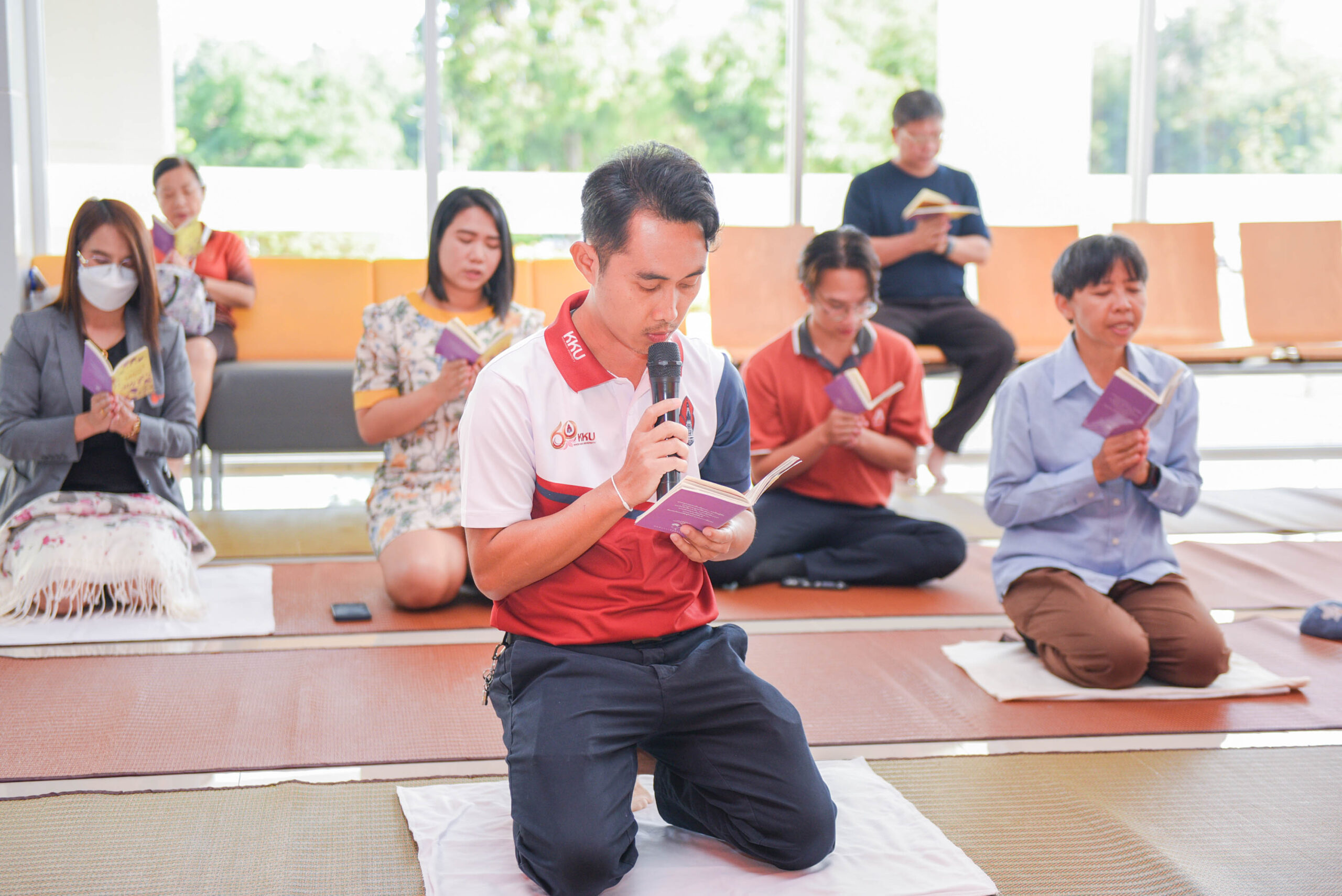 ผู้ที่มีจิตศรัทธาสามารถเข้าร่วมกิจกรรม สวดมนต์ภาวนา นั่งสมาธิ ทุกวันพระใหญ่ ณ บริเวณห้องโถง ขั้น 1 อาคารสิริคุณากร สำนักงานอธิการบดี มหาวิทยาลัยขอนแก่น เวลา 16.00-16.30 น. ครั้งต่อไป สามารถติดตามได้ที่เฟซบุ๊กแฟนเพจ “ส่งเสริมคุณธรรม จริยธรรม สำนักงานอธิการบดี มข.”