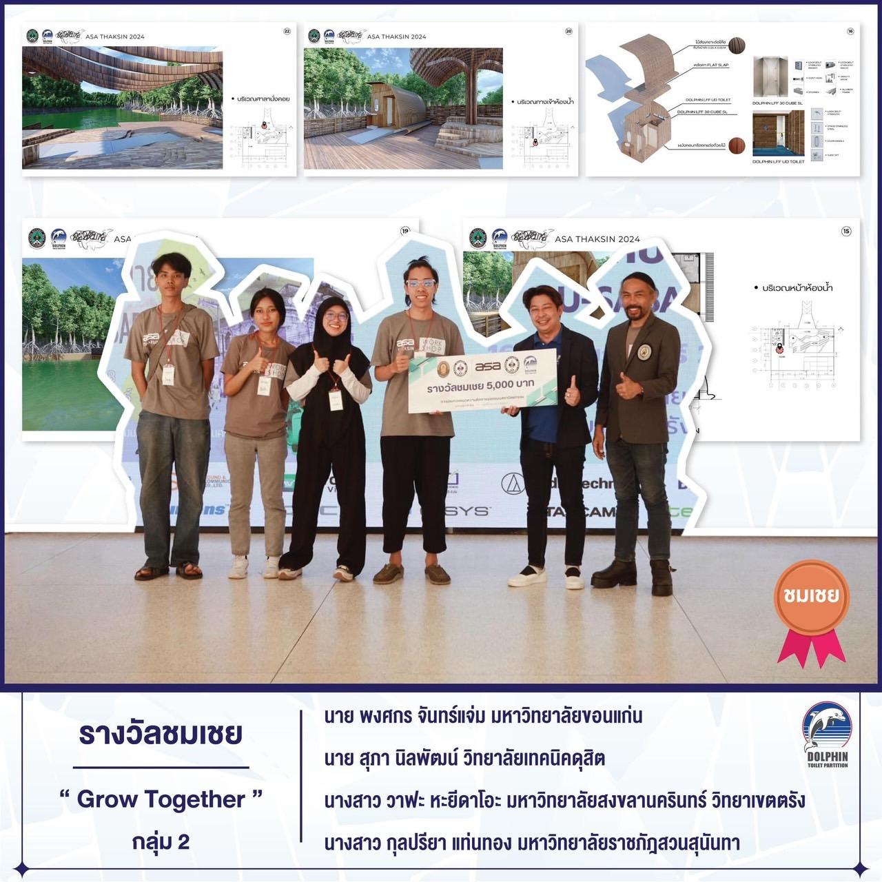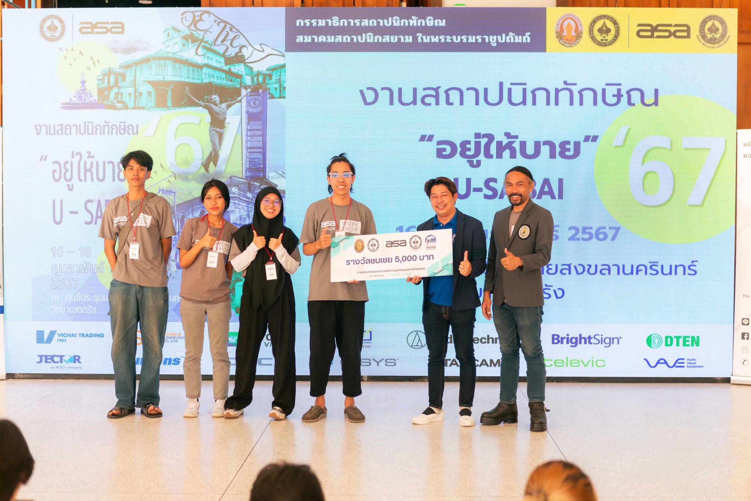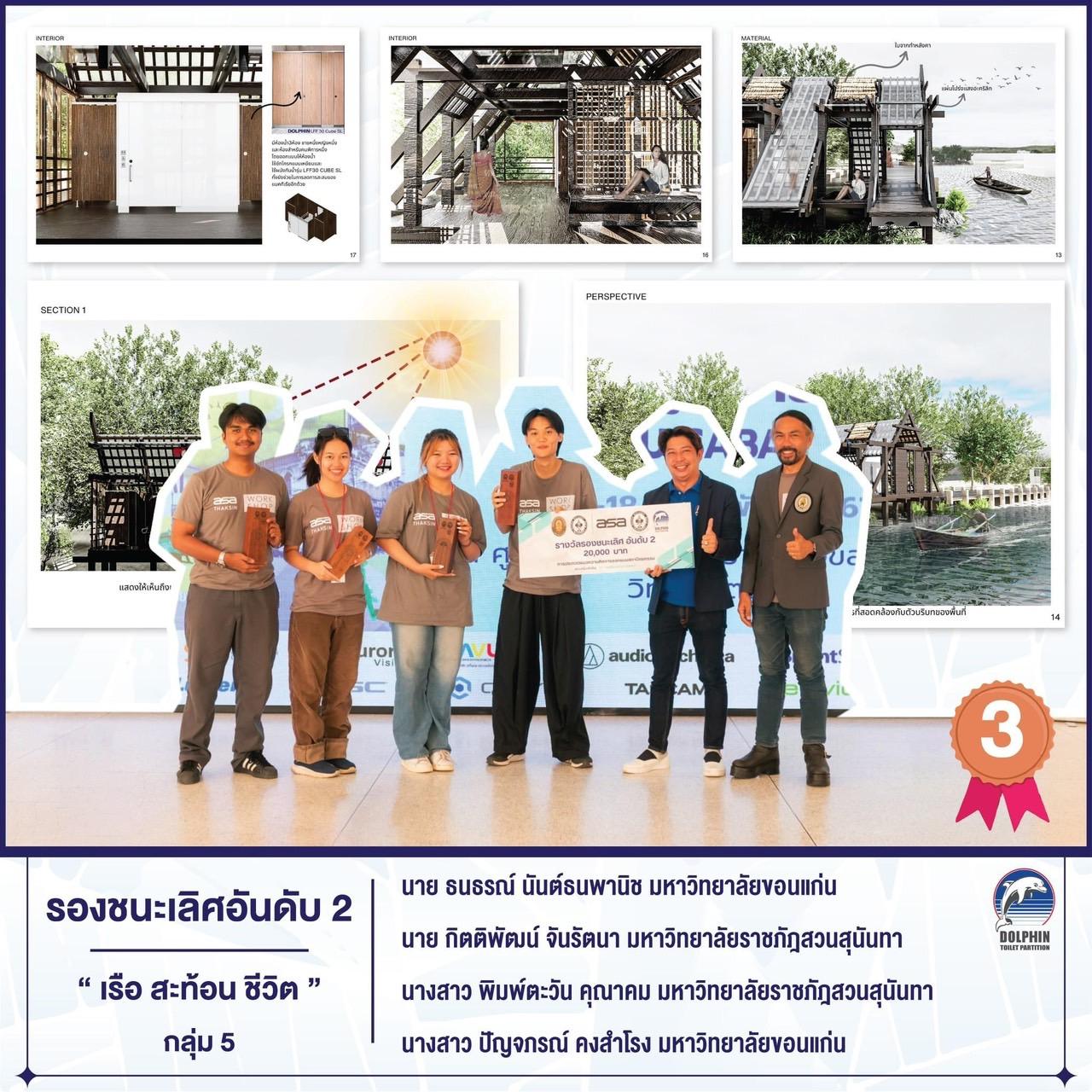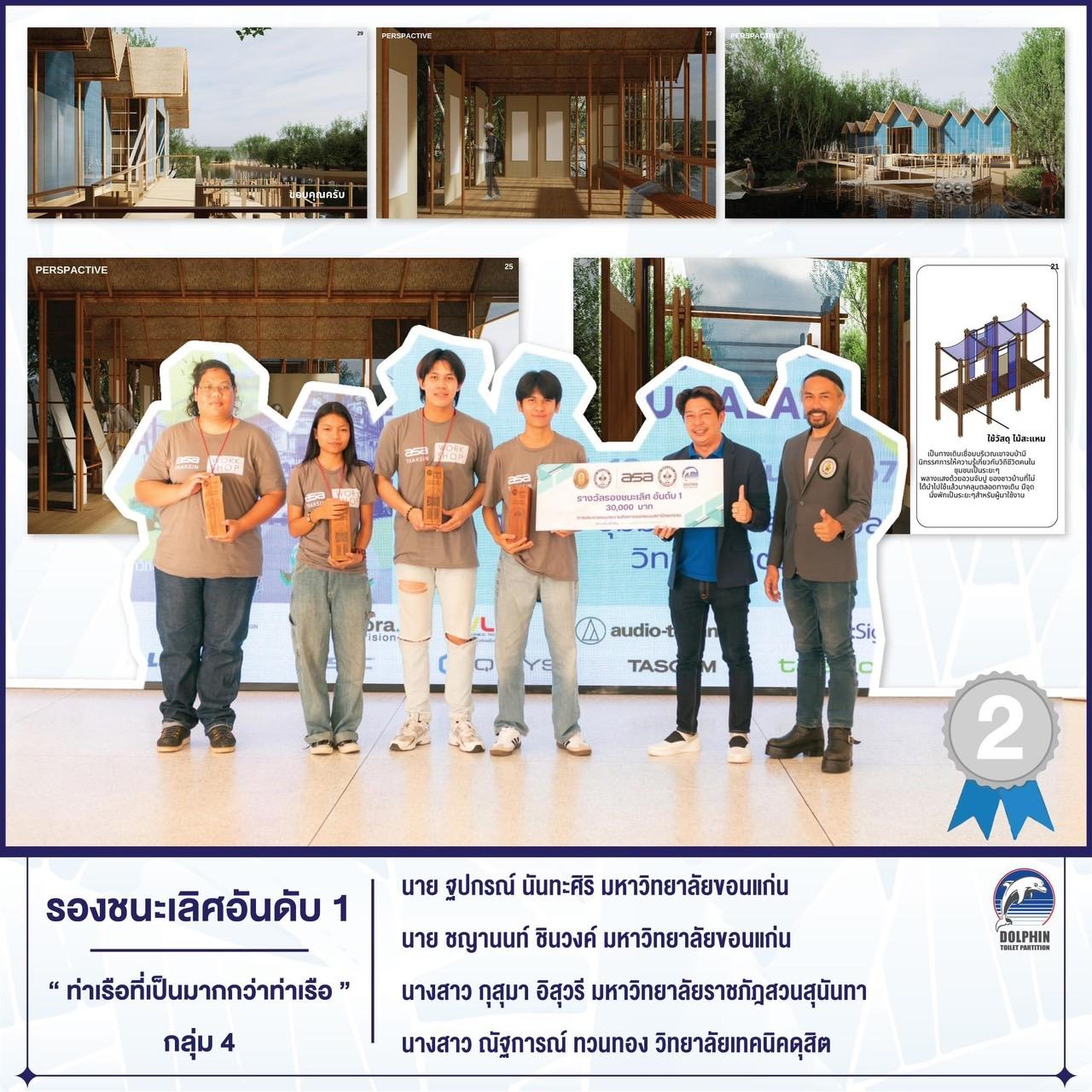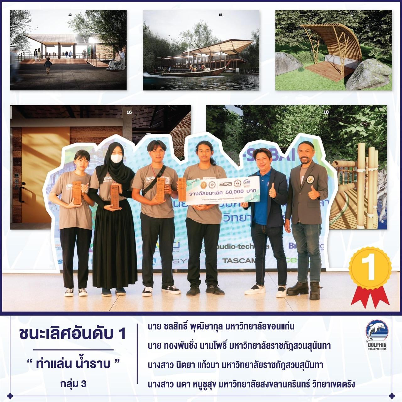คณะสถาปัตยกรรมศาสตร์ มหาวิทยาลัยขอนแก่น ขอแสดงความยินดีกับ นักศึกษาคณะสถาปัตยกรรมศาสตร์ ที่ได้รับทุกรางวัลในการประกวดออกแบบสถาปัตยกรรม “งานสถาปนิกทักษิณ’67” ในธีม “อยู่ ให้ บาย” ในหัวข้อการปรับปรุงสภาพแวดล้อมชุมชนชาวประมงท่าเทียบเรือ และเส้นทางศึกษาธรรมชาติ บ้านน้ำราบ จัดโดยกรรมาธิการสถาปนิกทักษิณ และ บริษัท ดอลฟิน ทอยเล็ต พาร์ทิชั่น จำกัด ระหว่างวันที่ 12 – 14 กุมภาพันธ์ 2567 ณ ตำบลบางสัก อำเภอกันตัง จังหวัดตรัง ซึ่งประกาศผลการแข่งขันและรับรางวัลที่มหาวิทยาลัยสงขลานครินทร์ วิทยาเขตตรัง โดยทีมนักศึกษาได้ทำงานร่วมกับตัวแทนจากสถาบันทั่วประเทศในรอบ 10 ทีมสุดท้ายพัฒนาผลงานและได้รับรางวัลตามลำดับ ดังนี้