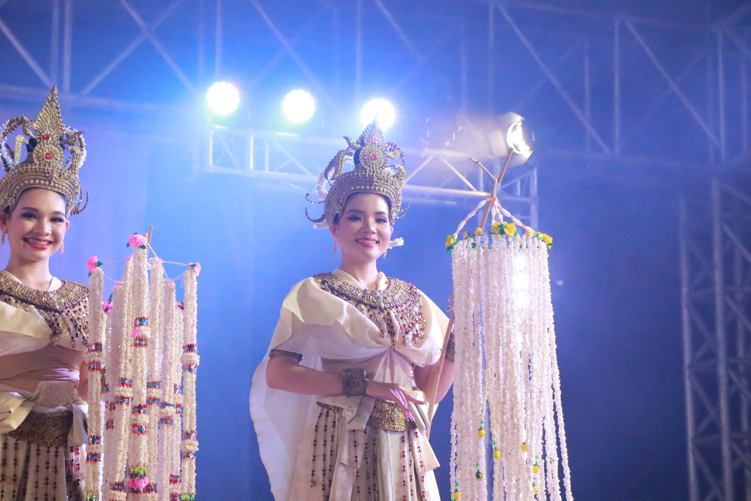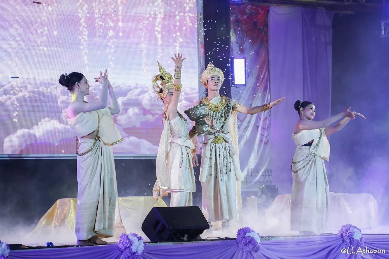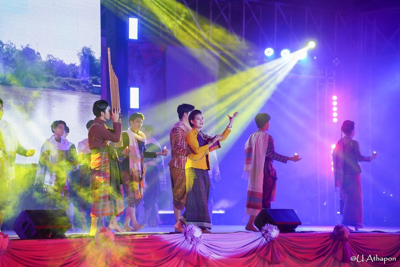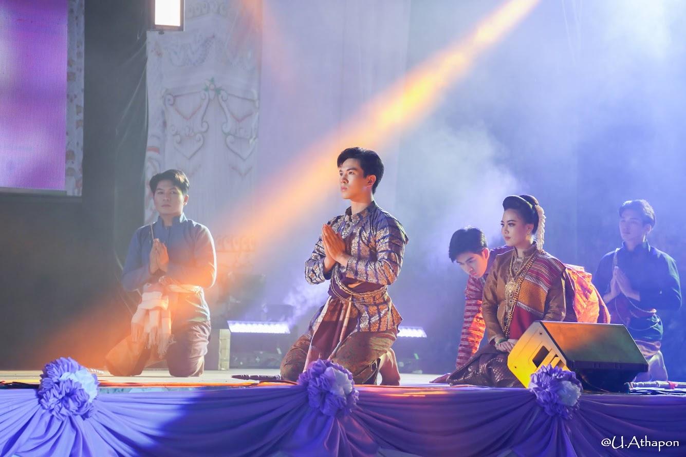 ในครั้งนี้สาขาวิชาการแสดง จัดการแสดง แสง สี เสียง ประเพณีแห่มาลัยข้าวตอก เรื่อง ฟ้าหยาดศรัทธา มาลาข้าวตอก มหาชนะชัย นำเสนอถึงมรดกภูมิปัญญาทางวัฒนธรรม ความเชื่อ ความผูกพันทางเครือญาติ สายตระกูล และธรรมชาติแม่น้ำชี สังคมเกษตรกรรมการปลูกข้าว และข้าวในพิธีกรรมความเชื่อของชาวอำเภอมหาชนะชัย ที่ครั้งนี้มุ่งนำเสนอถึงประเพณีแห่มาลัยข้าวตอก ซึ่งเป็นประเพณีที่ประดิษฐ์ข้าวตอกมาร้อยเป็นมาลัยสายยาว แทน “ดอกมณฑารพ” แห่งสรวงสวรรค์ เพื่อบูชาพระพุทธเจ้า ใน “งานประเพณีแห่มาลัยข้าวตอก” ที่งดงามและเป็นเอกลักษณ์เฉพาะตัว ของชุมชนลุ่มน้ำชี แห่งบ้านฟ้าหยาด ตำบลฟ้าหยาด อำเภอมหาชนะชัย จังหวัดยโสธร ชาวบ้านจะนำข้าวตอกมาร้อยเป็นมาลัยสายยาวแทน “ดอกมณฑารพ” อันเป็นดอกไม้ทิพย์แห่งสรวงสวรรค์ แล้วจัดขบวนแห่ไปถวายเพื่อเป็นพุทธบูชาเนื่องในเทศกาลวันมาฆบูชา ซึ่งเป็นประเพณีดั้งเดิมของชาวอีสานที่สืบทอดต่อเนื่องกันมา เฉพาะที่ชุมชนบ้านฟ้าหยาด ต.ฟ้าหยาด อ.มหาชนะชัย จ.ยโสธร