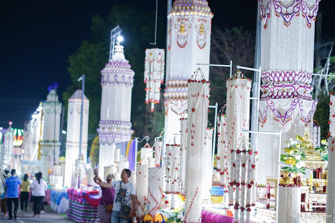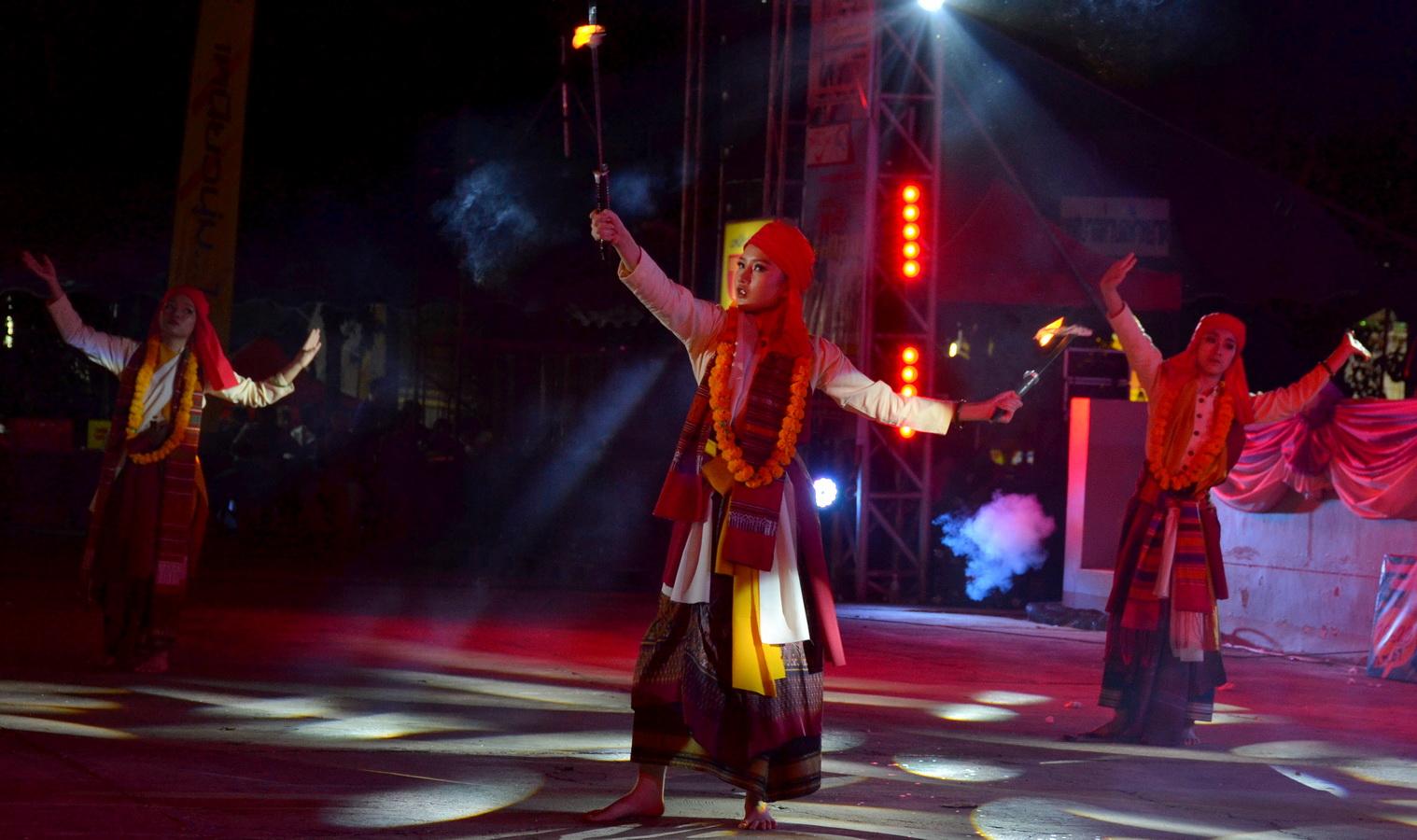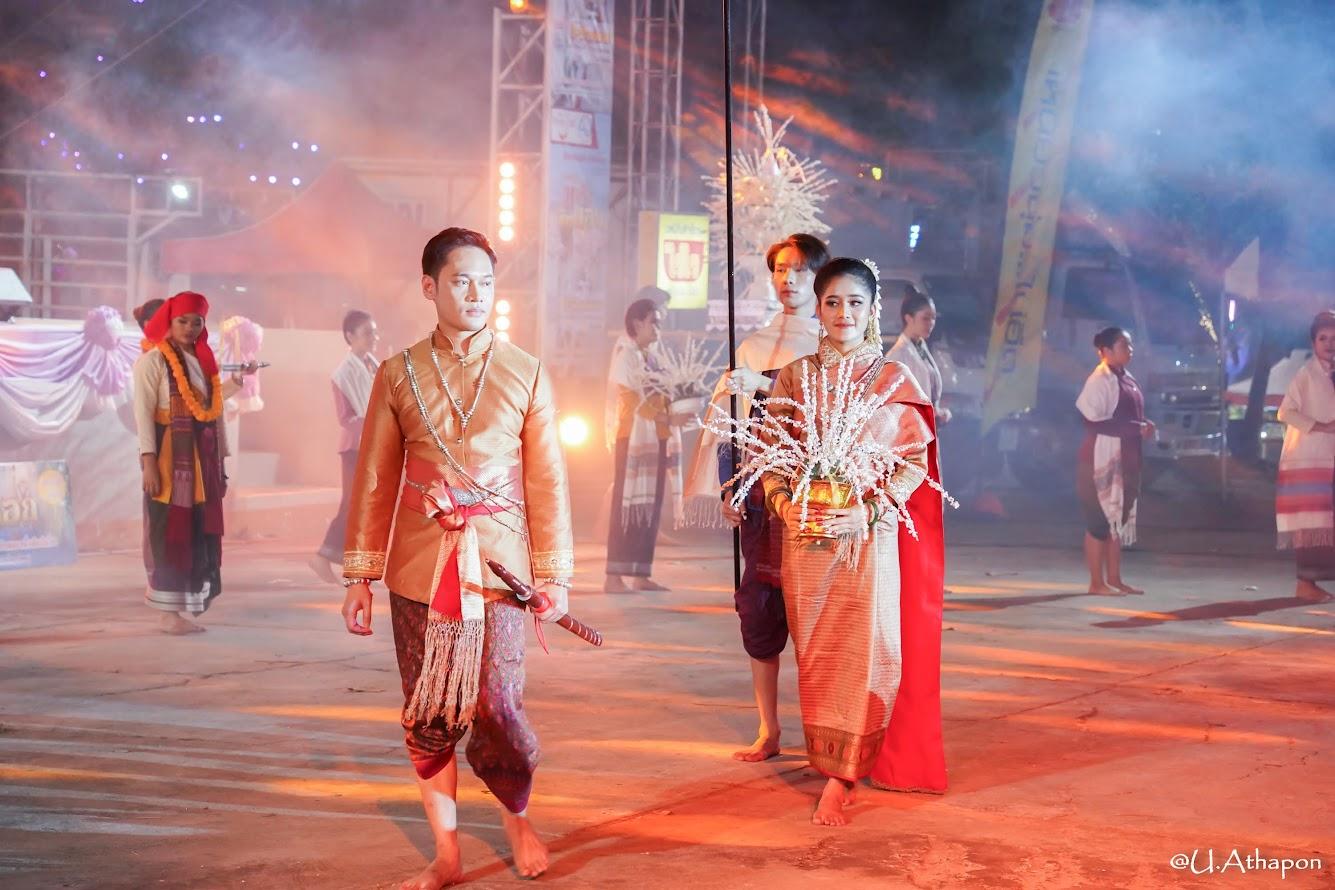 ในครั้งนี้สาขาวิชาการแสดง จัดการแสดง แสง สี เสียง ประเพณีแห่มาลัยข้าวตอก เรื่อง ฟ้าหยาดศรัทธา มาลาข้าวตอก มหาชนะชัย นำเสนอถึงมรดกภูมิปัญญาทางวัฒนธรรม ความเชื่อ ความผูกพันทางเครือญาติ สายตระกูล และธรรมชาติแม่น้ำชี สังคมเกษตรกรรมการปลูกข้าว และข้าวในพิธีกรรมความเชื่อของชาวอำเภอมหาชนะชัย ที่ครั้งนี้มุ่งนำเสนอถึงประเพณีแห่มาลัยข้าวตอก ซึ่งเป็นประเพณีที่ประดิษฐ์ข้าวตอกมาร้อยเป็นมาลัยสายยาว แทน “ดอกมณฑารพ” แห่งสรวงสวรรค์ เพื่อบูชาพระพุทธเจ้า ใน “งานประเพณีแห่มาลัยข้าวตอก” ที่งดงามและเป็นเอกลักษณ์เฉพาะตัว ของชุมชนลุ่มน้ำชี แห่งบ้านฟ้าหยาด ตำบลฟ้าหยาด อำเภอมหาชนะชัย จังหวัดยโสธร ชาวบ้านจะนำข้าวตอกมาร้อยเป็นมาลัยสายยาวแทน “ดอกมณฑารพ” อันเป็นดอกไม้ทิพย์แห่งสรวงสวรรค์ แล้วจัดขบวนแห่ไปถวายเพื่อเป็นพุทธบูชาเนื่องในเทศกาลวันมาฆบูชา ซึ่งเป็นประเพณีดั้งเดิมของชาวอีสานที่สืบทอดต่อเนื่องกันมา เฉพาะที่ชุมชนบ้านฟ้าหยาด ต.ฟ้าหยาด อ.มหาชนะชัย จ.ยโสธร