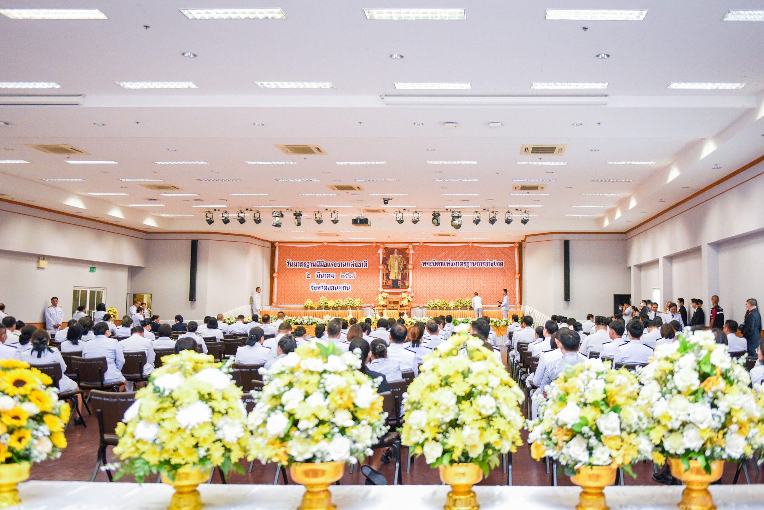 วันที่ 2 มีนาคม 2567 มหาวิทยาลัยขอนแก่น นำโดย นายชุมพร พารา ผู้อำนวยการกองสื่อสารองค์กร ปฏิบัติหน้าที่แทนอธิการบดี พร้อมด้วยบุคลากรมหาวิทยาลัยขอนแก่น เข้าร่วมพิธีวางพานพุ่มถวายราชสักการะ พระบาทสมเด็จพระบรมชนกาธิเบศร มหาภูมิพลอดุลยเดชมหาราช บรมนาถบพิตร “พระบิดาแห่งมาตรฐานการช่างไทย” ประจำปี 2567 ณ ห้องประชุมแก่นเมือง ขั้น 1 ศาลากลางจังหวัดขอนแก่น