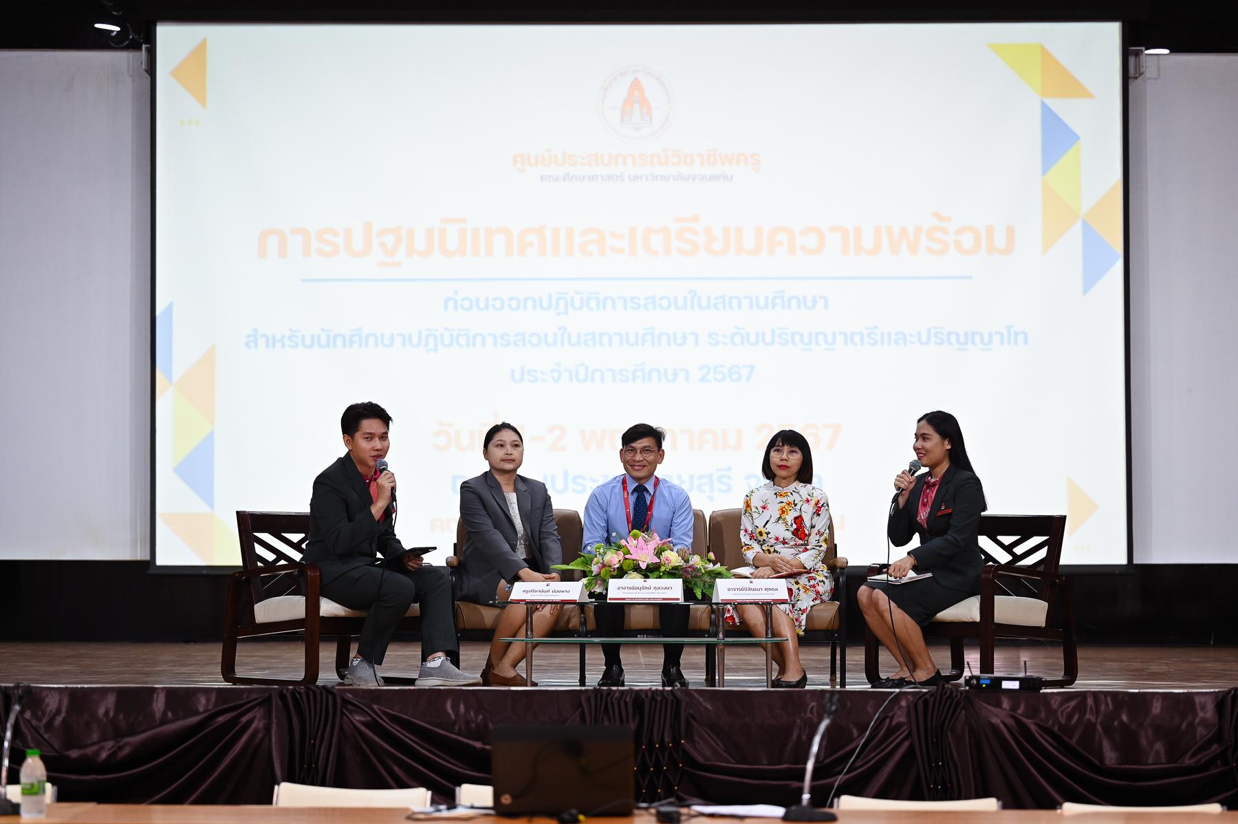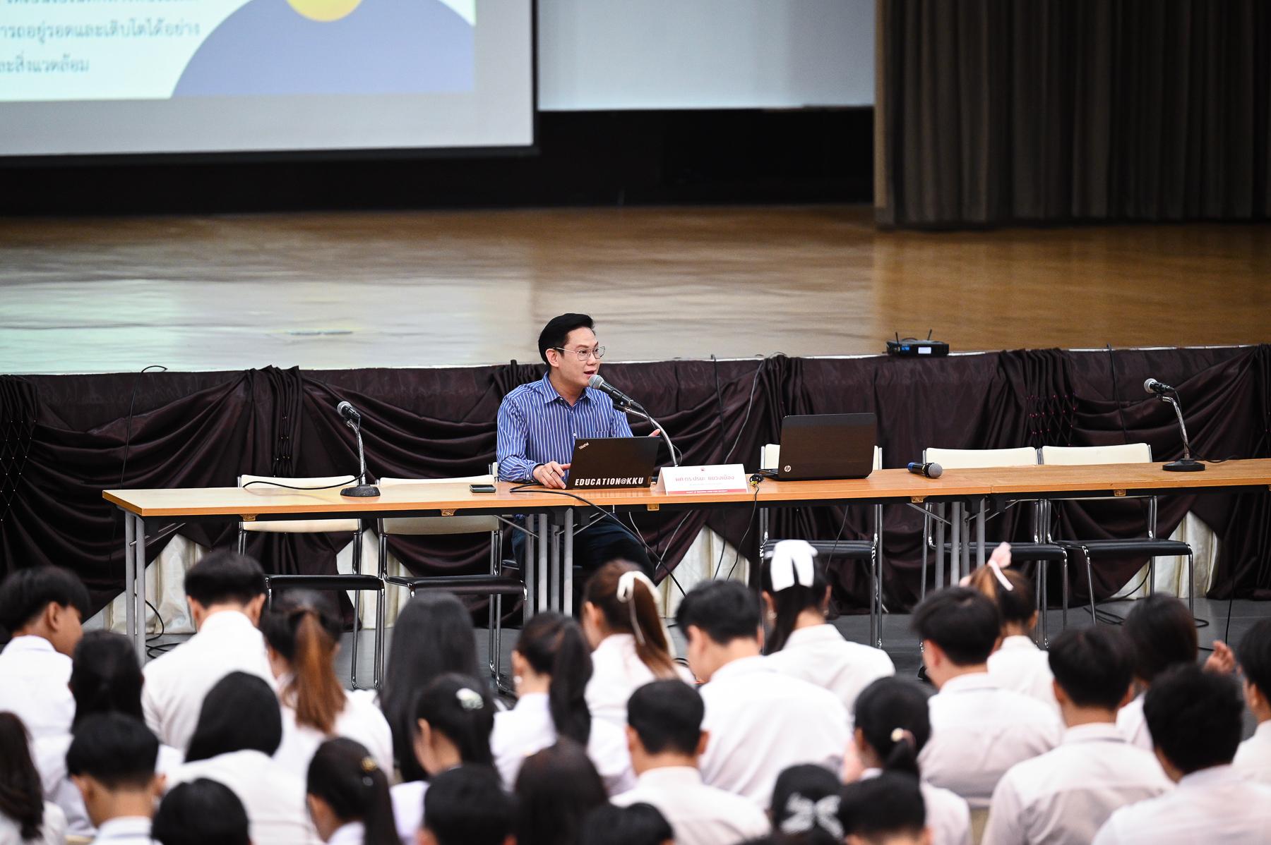 รศ.ดร.อิศรา ก้านจักร คณบดีคณะศึกษาศาสตร์ มหาวิทยาลัยขอนแก่น กล่าวให้โอวาทแก่นักศึกษาฝึกประสบการณ์สอน เน้นย้ำบทบาทหน้าที่อันสำคัญของ “ครู” มากกว่าแค่ผู้สอน แต่คือผู้ทุ่มเทเพื่ออนาคตเด็ก “การฝึกสอน 1 ปี คือโอกาสในการปฏิบัติหน้าที่ “ครูแบบเต็มเวลา” นักศึกษาต้องตระหนักว่าไม่ใช่แค่ไปสอน แต่ต้องดูแลนักเรียนตลอดทั้งวัน ทำงานเหมือนครูจริง เริ่มตั้งแต่ 7 โมงเช้าจนเลิกเรียน ทบทวน เตรียมการสอนอย่างเต็มที่ ซึ่งนักศึกษาต้องนำความรู้ที่เรียนมาทั้ง 3 ปี มาประยุกต์ใช้ในการฝึกสอนอย่างมีประสิทธิภาพ ผมมั่นใจว่านักศึกษาของคณะศึกษาศาสตร์ มหาวิทยาลัยขอนแก่น ซึ่งเป็นอันดับหนึ่งของภูมิภาค จะสามารถเป็นครูที่ดี มีความมุ่งมั่น ทุ่มเท ตั้งใจ ฝึกฝน พัฒนาตนเอง เพื่อเป็นครูที่มีคุณภาพ สร้างอนาคตที่ดีให้กับเด็กไทยและประเทศชาติต่อไป”