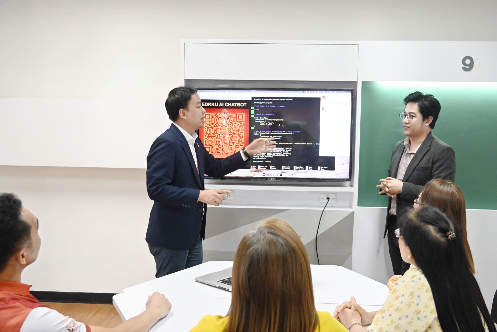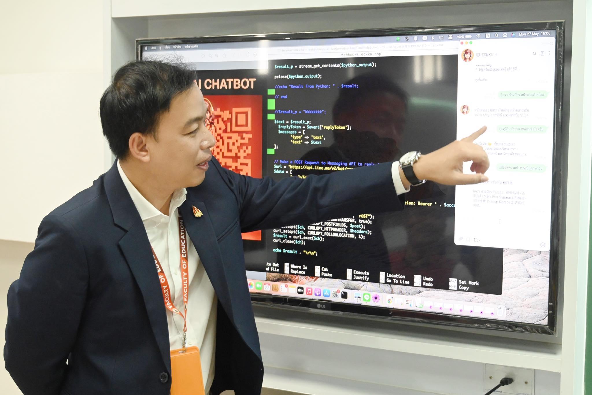 รองศาสตราจารย์ ดร.อิศรา ก้านจักร คณบดี กล่าวว่า คณะฯมีนโยบายสนับสนุนการบูรณาการใช้ AI ร่วมกับงานในแต่ละกระบวนงาน จึงได้นำปัญหาดังกล่าวมาปรึกษาหารือและร่วมมือกันพัฒนา นำทีมโดย อาจารย์ ดร.สามารถ สิงห์มา อาจารย์ประจำสาขาวิชา นวัตกรรมเทคโนโลยีและวิทยาการเรียนรู้ (ITALS) ได้พัฒนาโมเดล AI ที่ถูกฝึกฝนด้วยข้อมูลต่างๆ เกี่ยวกับคณะศึกษาศาสตร์ ครอบคลุมทั้งปฏิทินการศึกษา ข้อมูลเกี่ยวกับรายวิชา ข้อมูลวันเวลาในการเรียนการสอน ข้อมูลอาจารย์ผู้สอน เป็นโมเดลเบื้องต้น หลังจากนั้นมีการอบรมให้บุคลากรทุกฝ่ายงาน สามารถฝึกฝนข้อมูลที่ตนเองรับผิดชอบอยู่ ข้อมูลต่างๆจึงถูกพัฒนาโดยบุคลากรของคณะศึกษาศาสตร์ ทุกส่วนงาน ทำให้มั่นใจได้ว่าข้อมูลมีความถูกต้อง ครบถ้วน และสอดคล้องกับสถานการณ์ปัจจุบัน